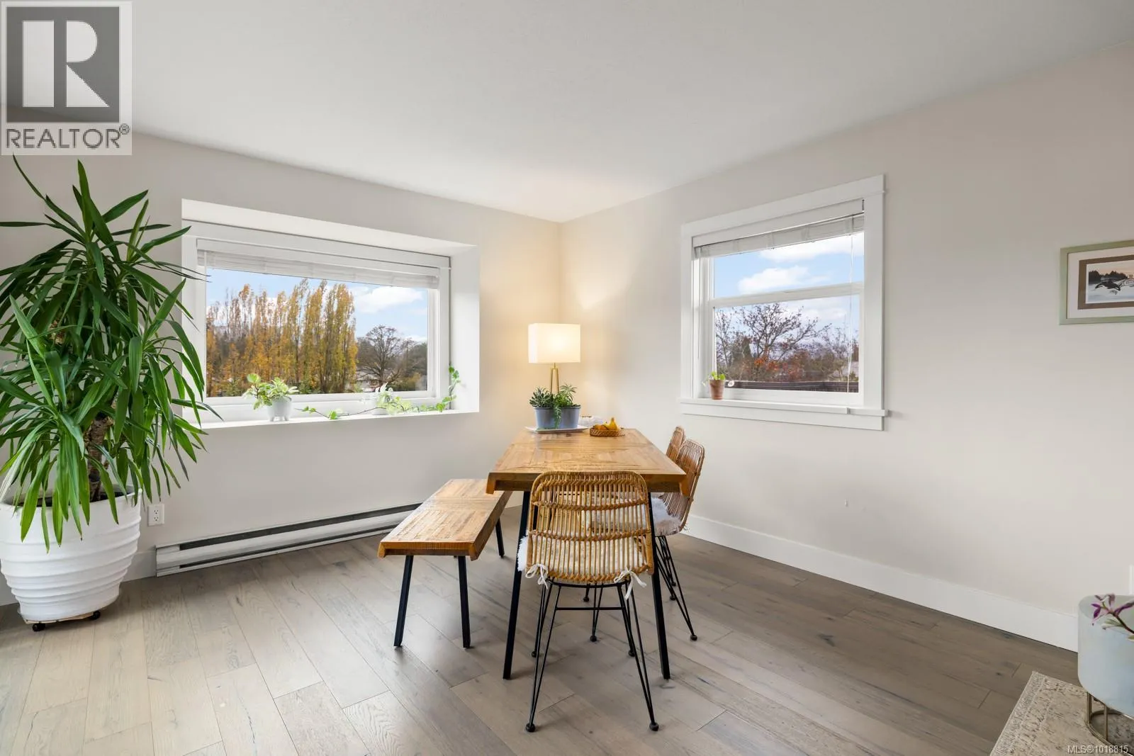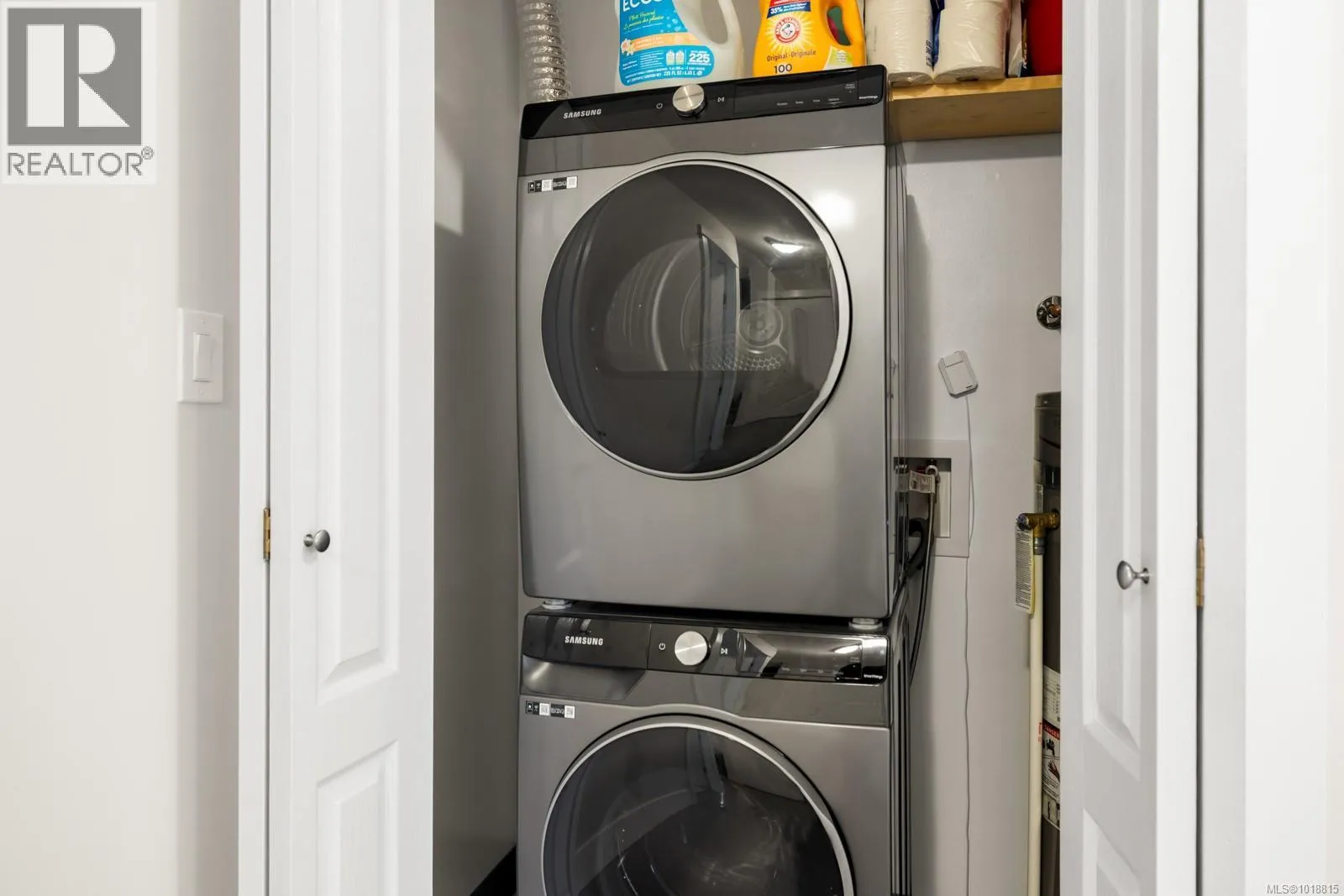 Top floor corner condo in the heart of Brentwood Bay. This bright and updated 2 bedroom 1 bath home offers south west and north facing windows for incredible natural light throughout. Features include engineered hardwood floors, refreshed trim, an updated 4 piece bath, in suite laundry, and a newer hot water tank. The open layout leads to a spacious 156 sq ft southwest facing balcony with mountain and sunset views, perfect for relaxing or entertaining. Enjoy the privacy of only one shared wall and the convenience of an included parking stall. Brentwood Place is a well managed pet friendly building allowing rentals and no age restrictions. Steps to cafes, shops, grocery stores, and the waterfront, this is easy living in one of Greater Victoriaâs most desirable seaside communities. Contact Shane Cyr @ eXp Realty to book your private showing 250-893-9164 (id:27476)