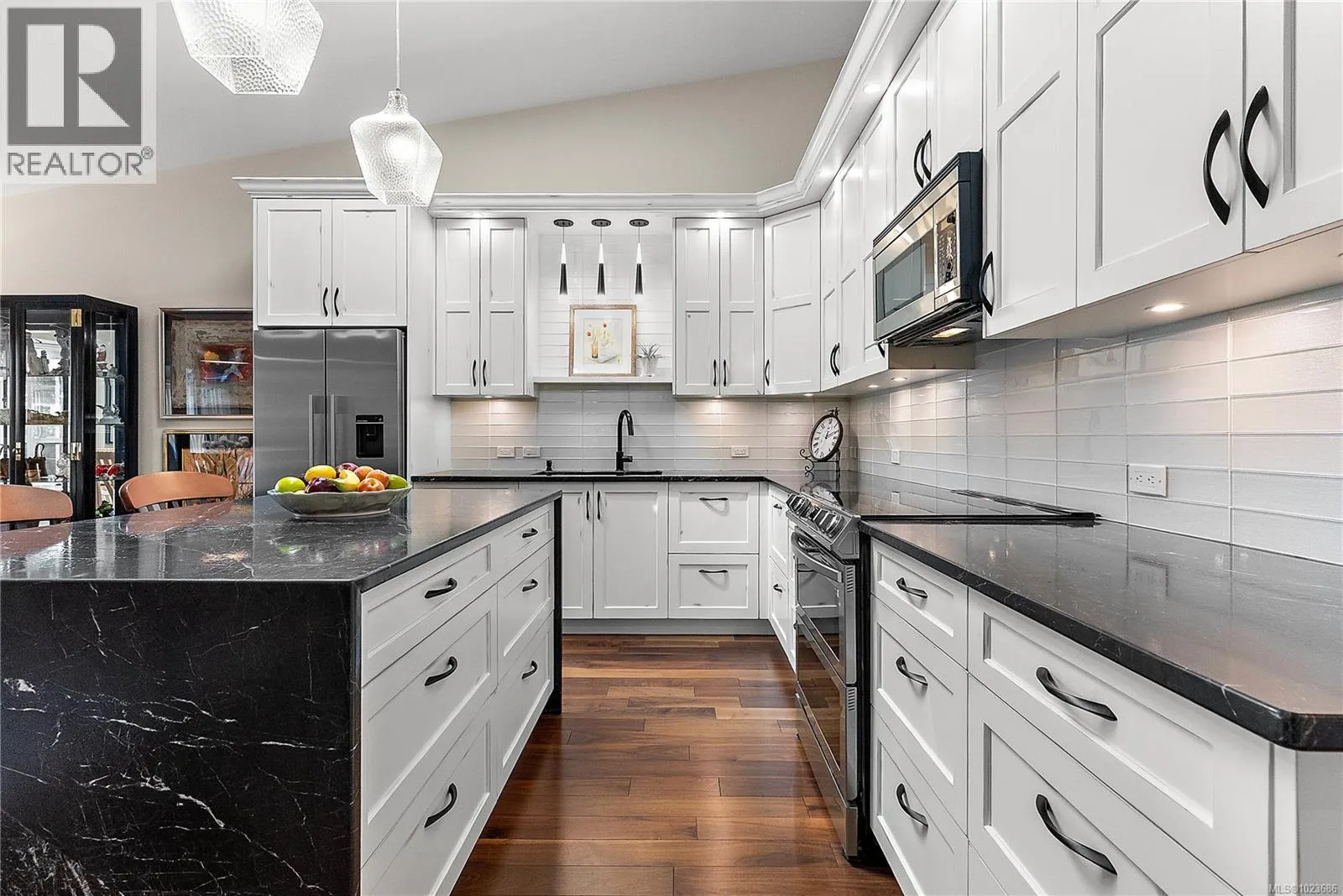Absolutely beautifully updated throughout 1,279 sq. ft. one-level townhouse located in the sought-after Waterâs Edge Oceanfront Resort Community in Central Saanich. This bright and spacious home offers 2 bedrooms and 2 bathrooms, thoughtfully designed for comfort, style, and accessibility. The beautifully updated kitchen includes an automatic-closing skylight and features a split double oven, induction cooktop (with new pots), twin-drawer dishwasher, fridge/freezer, and microwave. Quality finishes include manufactured hardwood, marble, slate, and tile flooring throughout. You will love the year-round green courtyard view from the spacious living room. Additional highlights include a three season sunroom off of the living room, central vacuum, front-load washer and dryer, hot water tank in the double attached garage, blinds throughout, and ample storage with custom closet and cupboard organizers. The primary bedroom features a grand entrance with double glass doors, a generous walk-in closet with custom organizers and a stunning 3-piece ensuite with a lipless shower, heated floors and a premium TOTO Washlet toilet. The updated main bathroom also includes heated floors. Wide hallways, a walk-in pantry, and other accessibility features make this home exceptionally functional. Enjoy resort-style living with Waterâs Edge amenities including an indoor pool, hot tub and sauna, exercise room, library, guest accommodations and lounge (available to book for special events), outdoor BBQ area, putting green, and tennis court. The oceanfront is just a one-minute walk away. Ideally located only 5 minutes from Sidney and 20 minutes to downtown Victoria, this exceptional home offers a rare combination of luxury, lifestyle, and convenience. (id:27476)