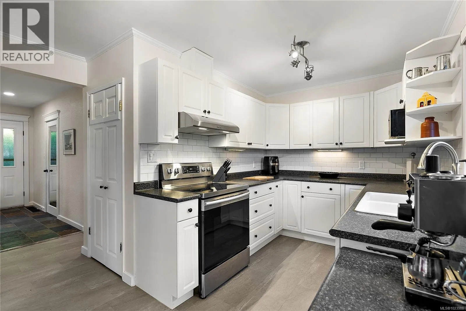 Tastefully renovated private home with seasonal ocean glimpses nested in Brentwood Bay. Bright, open main living spaces with excellent natural light. Ideally located just steps to beach access and the Brentwood Bay Lodge & Spa.  Recent updates include a new roof, furnace with heat pump, and tile flooring. The kitchen and adjacent dining area are beautifully illuminated, featuring a charming window-wrapped bench seatâperfect for enjoying the Butchart Gardens fireworks. The primary bedroom offers large windows and a walk-in slate shower. Lower level includes an additional bedroom/office with ample storage.Plus One-bedroom additional accommodation perfect for the in-laws or potential revenue.  Two driveways allows multiple cars to park or use as boat storage. Detached 12x20 insulated single-car garage complete this special property. (id:27476)