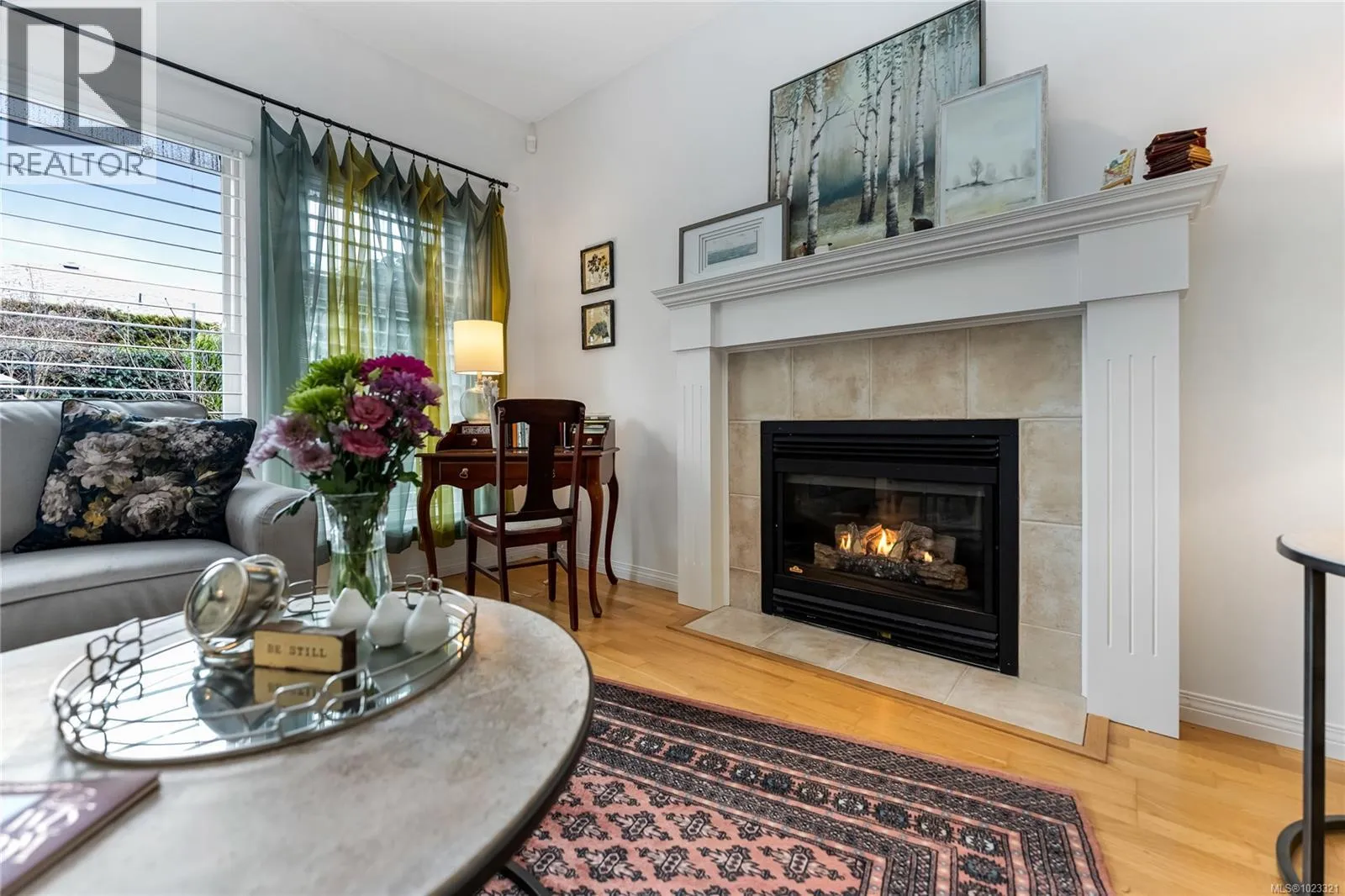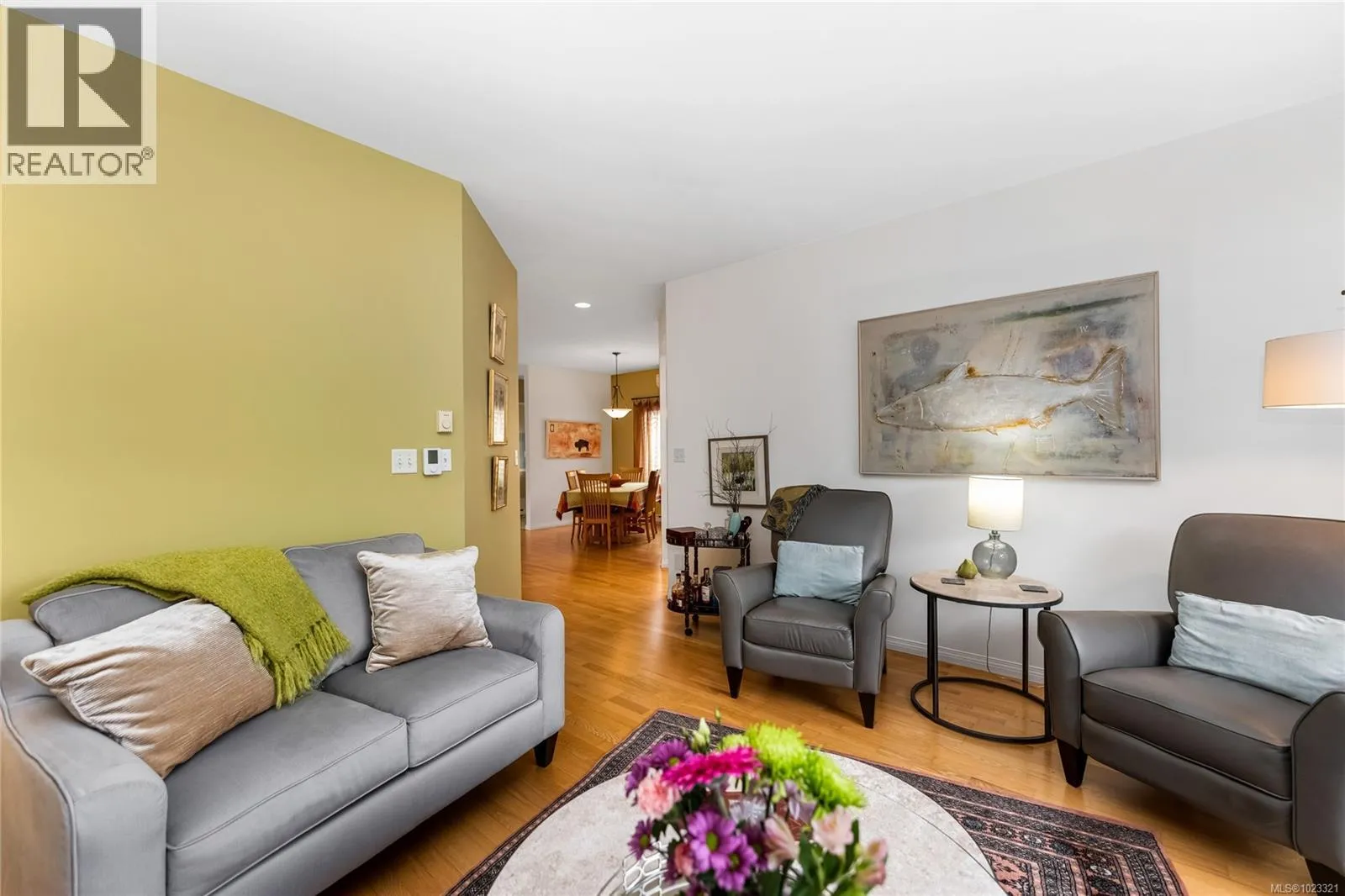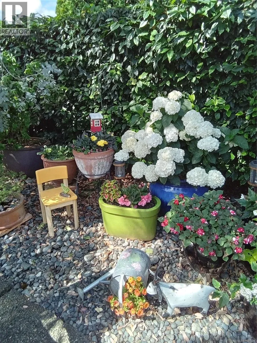 This beautifully maintained home offers a thoughtfully designed 2-bedroom plus den, 2-bathroom layout. Interior features include hardwood floors, a cozy gas fireplace, and a unique central atrium that fills the home with natural light. The kitchen was updated in 2024 and features quartz countertops, new appliances, including an AEG steam oven, and an inviting eating nook. Both bathrooms were also beautifully renovated in 2022. Other quality highlights include a Miele washer and dryer, a heat pump and air conditioning unit, a double garage, and an efficient sprinkler system. Step outside to an incredibly private, easy-care sanctuary: a sun-drenched patio with a retractable awning, vibrant spring blooms, and a dedicated space for a vegetable garden, complete with a garden shed. Located in a quiet, peaceful area of Central Saanich, yet just minutes to shops, transit, and all the local amenities. (id:27476)