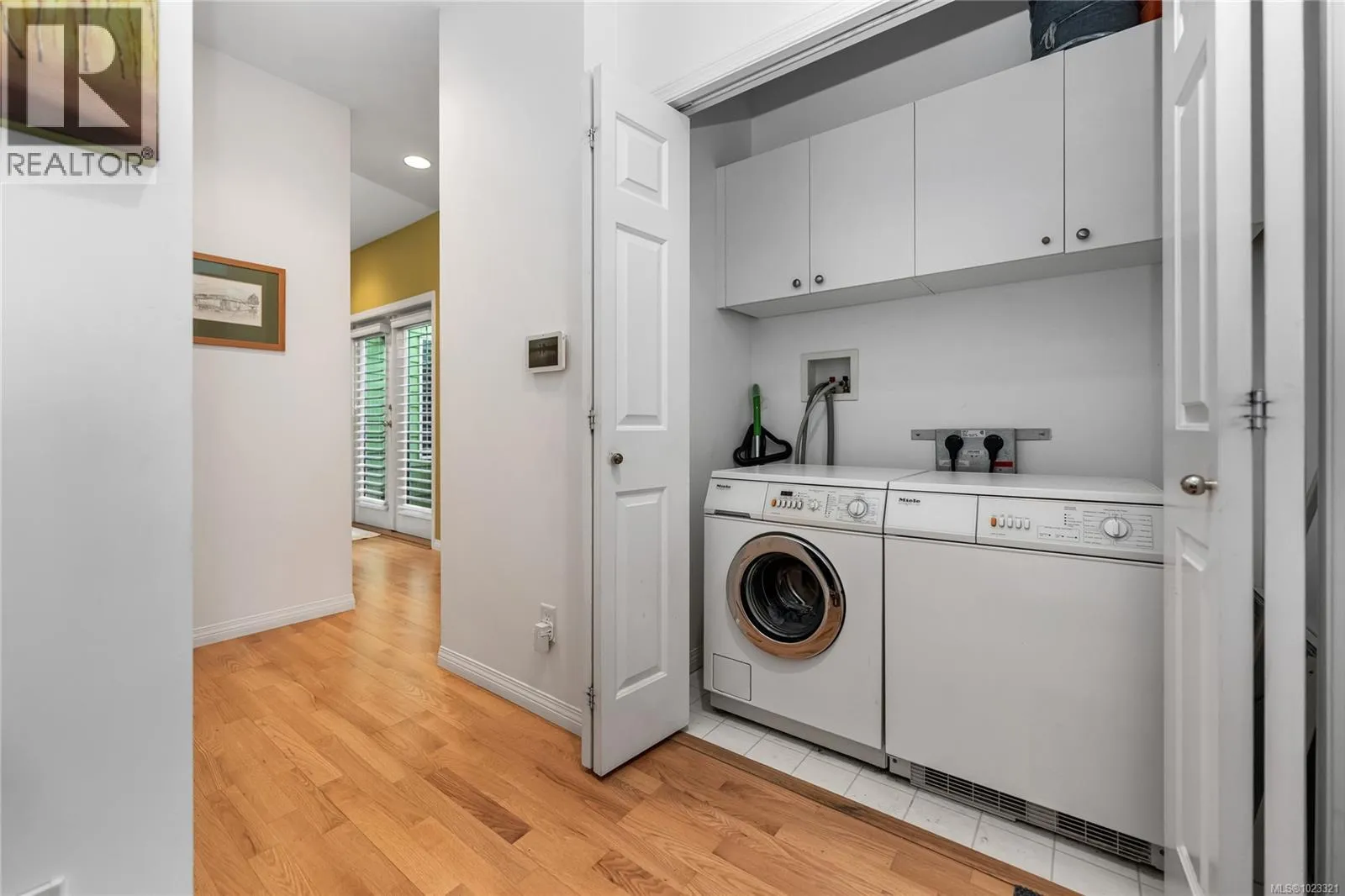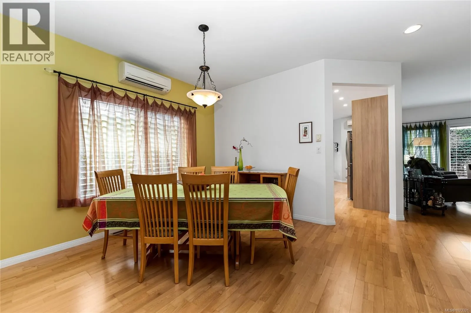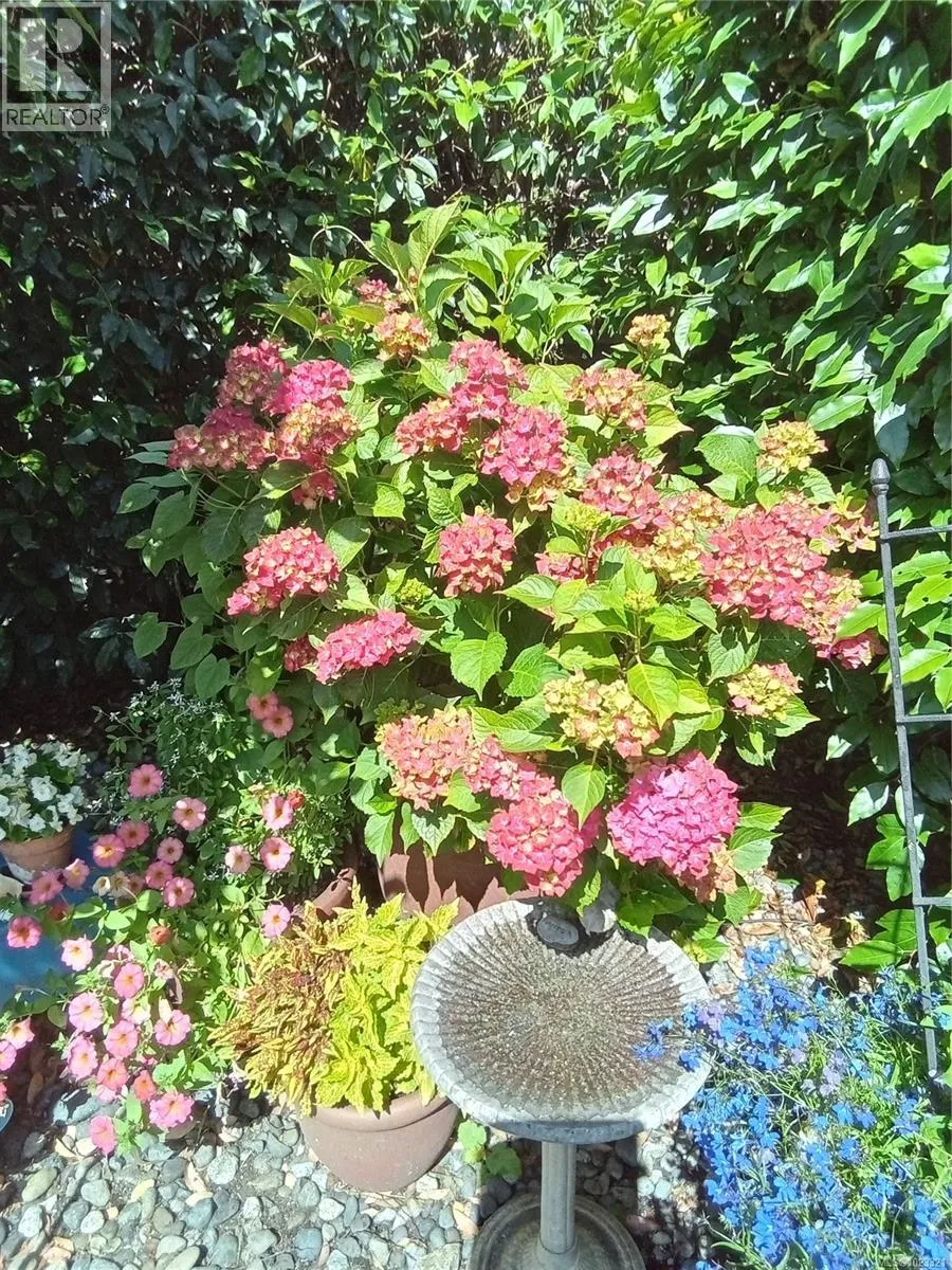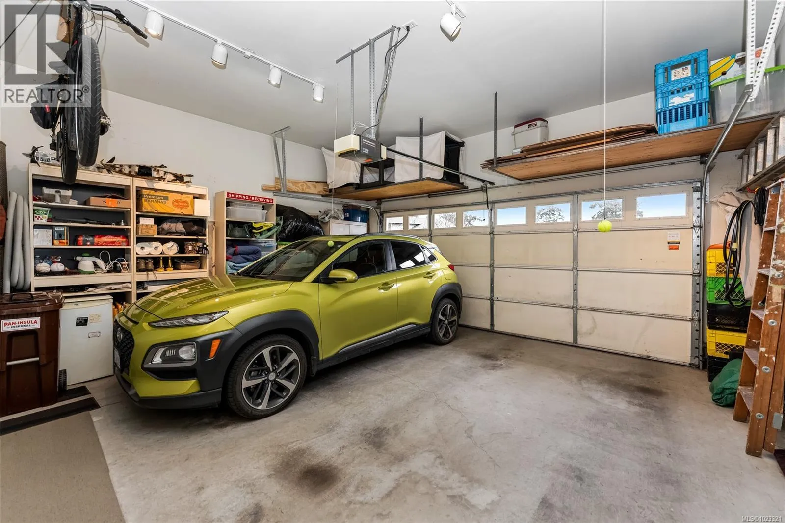 This beautifully maintained home offers a thoughtfully designed 2-bedroom plus den, 2-bathroom layout. Interior features include hardwood floors, a cozy gas fireplace, and a unique central atrium that fills the home with natural light. The kitchen was updated in 2024 and features quartz countertops, new appliances, including an AEG steam oven, and an inviting eating nook. Both bathrooms were also beautifully renovated in 2022. Other quality highlights include a Miele washer and dryer, a heat pump and air conditioning unit, a double garage, and an efficient sprinkler system. Step outside to an incredibly private, easy-care sanctuary: a sun-drenched patio with a retractable awning, vibrant spring blooms, and a dedicated space for a vegetable garden, complete with a garden shed. Located in a quiet, peaceful area of Central Saanich, yet just minutes to shops, transit, and all the local amenities. (id:27476)