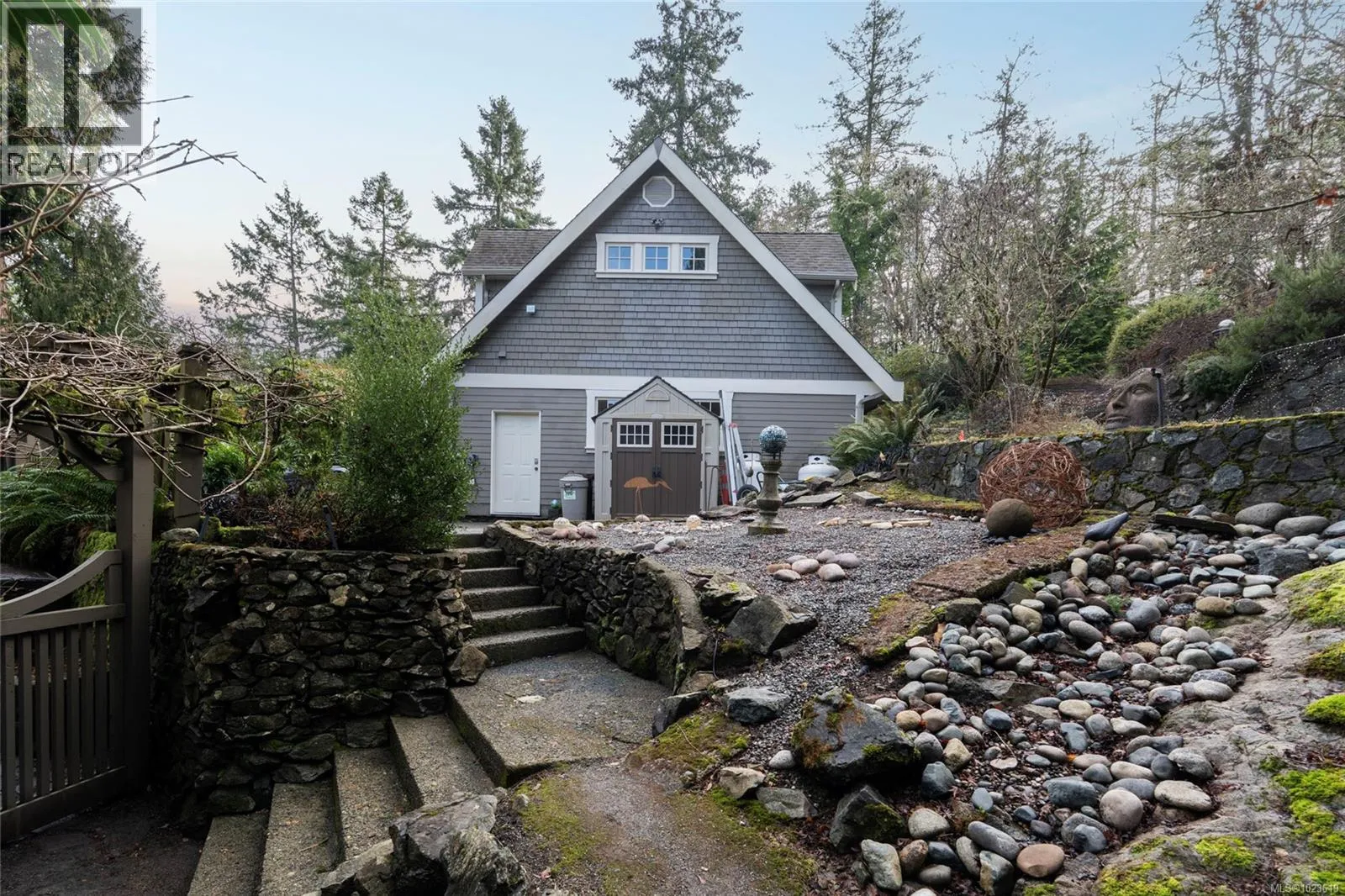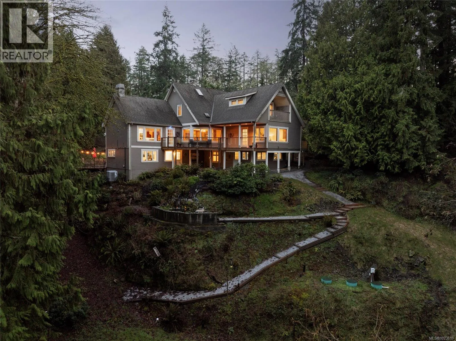 A truly exceptional estate residence offering rare privacy, refined craftsmanship, and outstanding multigenerational flexibility. Thoughtfully designed for elegant living and entertaining, this home is surrounded by natural beauty, with no neighbouring homes visible from any window. The gourmet kitchen is a chefâs showpiece featuring a Wolf range, Sub-Zero appliances, granite counters, generous cabinetry, and a pantry wired for stacking laundry. Fir doors, baseboards, and window casingsâmilled from trees harvested on the propertyâadd remarkable character throughout. Rich hardwood and tile floors enhance the timeless aesthetic. The main-level primary suite is a serene retreat with a spa-inspired five-piece ensuite, new quartz vanity, dual private decks, and a hot tub just steps away. Additional living spaces include custom built-ins, a dining room buffet with wine storage, and a beautifully updated lower-level suite with bonus room, separate exterior access, and gym potential. Two self-contained suites generate approximately $3,500/month in revenue, ideal for extended family or income. The detached carriage house features a spacious bedroom, two-sided gas fireplace, on-demand hot water, and updated bath. A spacious two-car garage with workshop, wood-burning fireplace, and abundant storage completes the offering. Outdoors, curated cedar decks, Duradek surfaces, glass railings, ponds, and stream features create a tranquil retreat. Ideally located across from Gore Park, walkable to Oak Haven and Tod Inlet parks, and moments to Brentwood Bay villageâoffering rural serenity with everyday convenience. (id:27476)