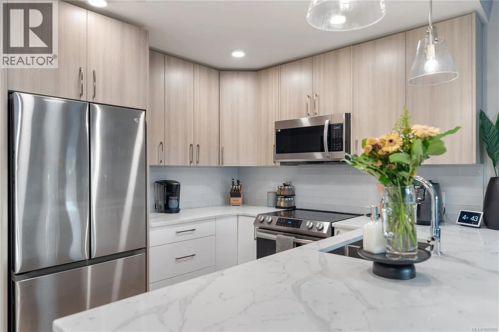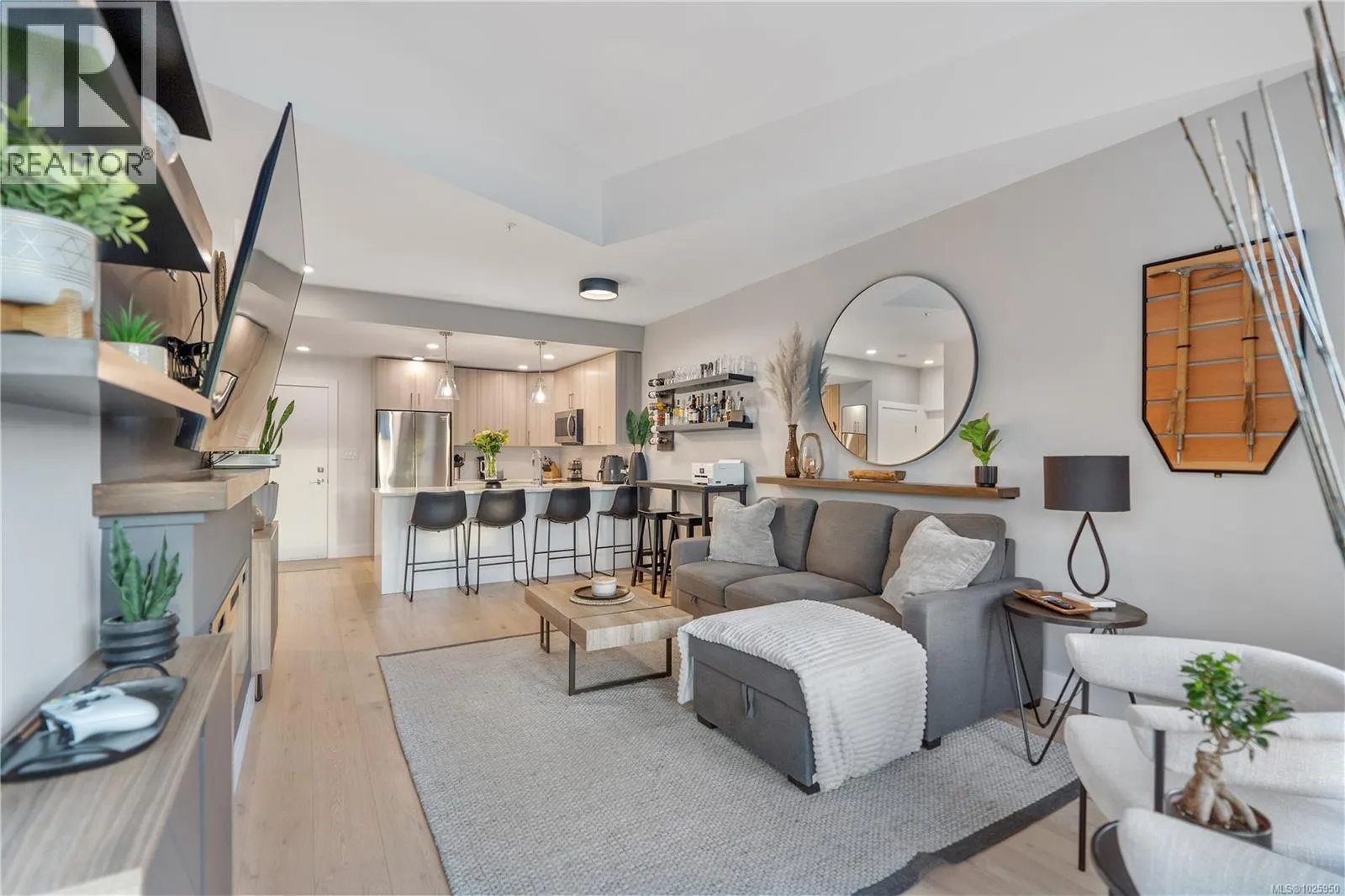 Top-floor living in the heart of Brentwood Bay. This spacious 1-bedroom, 1-bath suite features vaulted ceilings, hardwood floors, quartz countertops, in-suite laundry, and a large west-facing balcony to enjoy the evening sun. Custom designer touches throughout add a polished, elevated feel. The Wallace is a modern, energy-modelled building offering superior soundproofing, secure underground parking, a storage locker, and shared EV charging. Pets and rentals are welcome. Enjoy seaside trails, local dining, spa services, markets, and marinas just steps from your door. With the balance of the 2-5-10 warranty remaining, this is stylish, low-maintenance living in a walkable coastal community. One of the best units in the building! (id:27476)