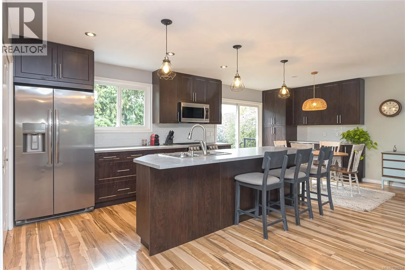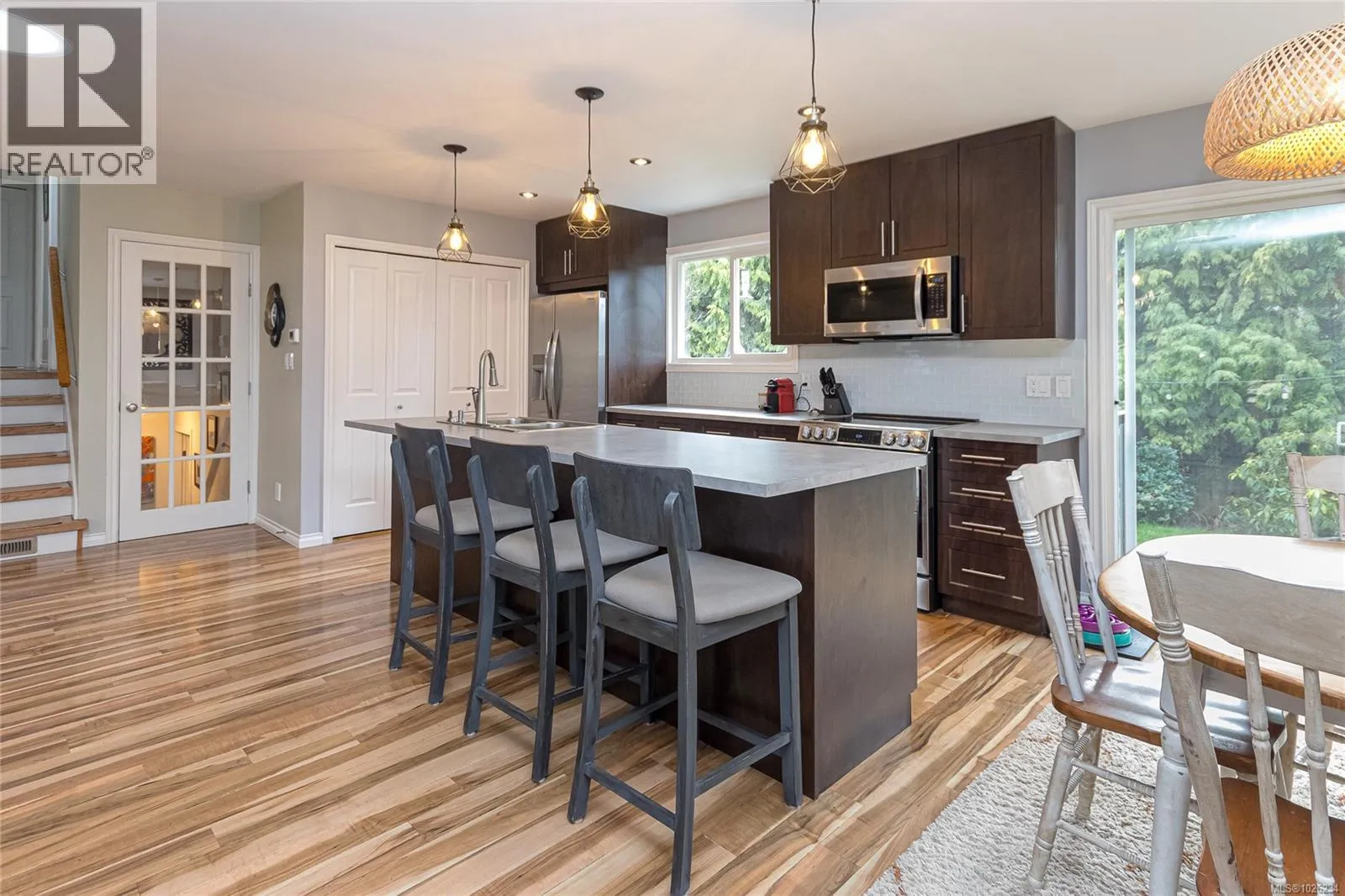 Open Sat 1-3pm. Prepare to be impressed with this tastefully updated Brentwood Bay home. Upon entering the front door you'll appreciate the open concept great-room with tons of space for family & entertaining friends. The gorgeous kitchen with new countertops, appliances & tiled backsplash boasts tons of counter space. The spacious living room features a bay window & cozy gas fireplace. The dining area opens up to the sun soaked south facing backyard - perfect for summer BBQâs. A true gardener's delight! Upstairs you'll find 3 good sized bedrooms, 2 piece ensuite & the main bath. The lower level offers flexibility with a large family room with a wood stove, 3 piece bath & 4th bedroom - easily suitable. Additional features include vinyl windows, 200 Amp electrical, newer hot water tank, new interior paint & skylights. All of this plus a single car garage and fully fenced sunny yard. Walking distance to schools, shopping, beautiful beaches and multiple parks! Don't delay! (id:27476)