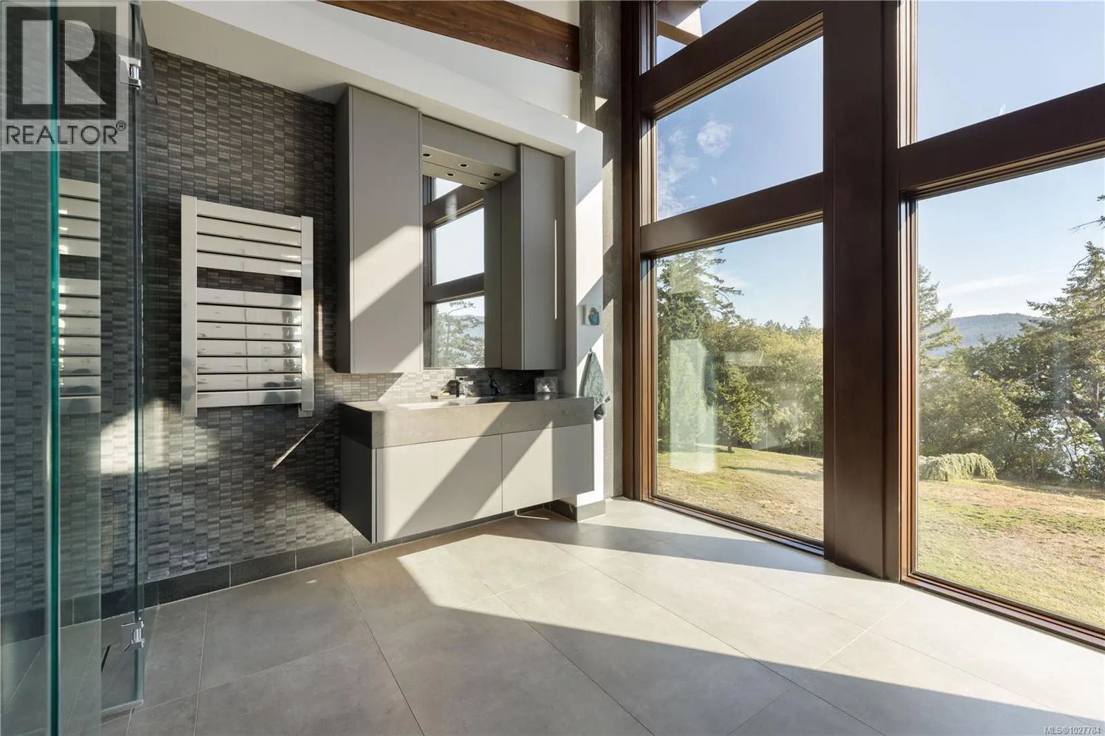 Roundstone Estate â A luxury equestrian property by the Sea. Set on nearly 14 acres, including 236 feet of pristine waterfront in Central Saanich, Southern Vancouver Island, this rare offering blends modern architecture with pastoral beauty. The re-imagined 2010 residence showcases steel beams, cedar cladding, Loewen glass, soaring ceilings, and a chefâs kitchen with Wolf, Sub-Zero, and Miele appliances. Comfort is assured with radiant in-floor heating, five-zone cooling, and backup generator. Equestrian facilities include a 72â x 36â stable with six stalls, heated tack rooms, wash bay, riding ring, and multiple fenced paddocks and pastures. A 180-mixed-fruit tree orchard, abundant irrigation, and Hagen Creek water rights ensure sustainable living. A self-sustaining sanctuary designed for elegance, equestrian pursuits, and oceanfront serenity a short drive from Victoria International Airport, Swartz Bay ferry terminal and the city of Victoria. (id:27476)