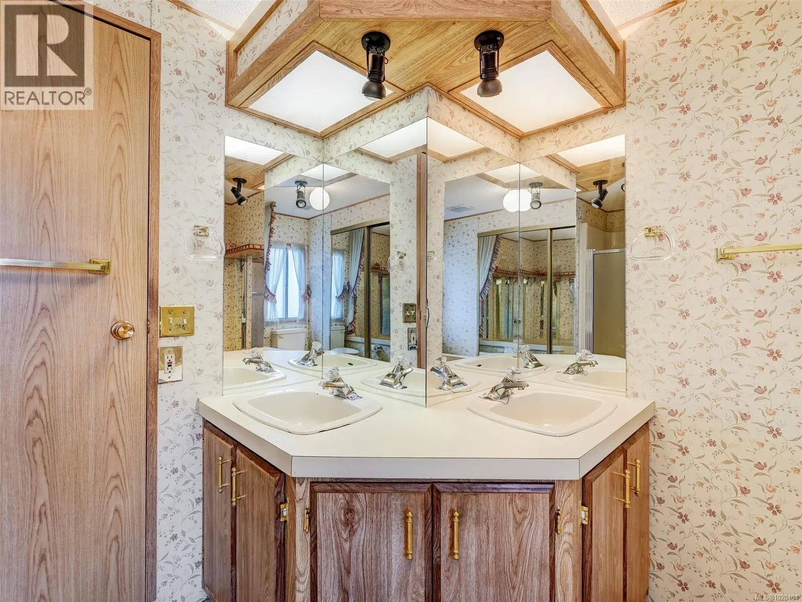 The Central Saanich Estates is a charming and well-managed 55+ community in the Mt Newton area of the Saanich Peninsula. This 2 bedroom, 5pc bathroom home is ready for your update ideas. Featuring an open plan living, dining and kitchen flooded with natural light from the skylight and bay windows. The spacious 5pc bathroom boasts a soaker tub, stand up shower and double vanity. The partially fenced backyard includes a storage shed and plenty of space for a garden or outdoor living area. Just a couple of blocks away from shopping, banking, dining at the Central Saanich center, and a short drive to the beautiful, walkable Sidney by the Sea with itâs abundance of amenities and attractions. Proudly offered at $199,900. (id:27476)
