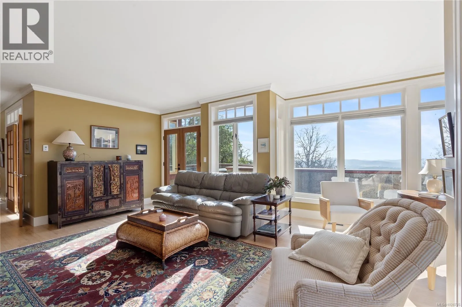 A private and and quiet view property in Central Saanich . Sitting on 10 Acres and backing on to Dean Park this is one of the highest elevation homes on the peninsula. With full Southern exposure boasting views as far as the Olympic Mountain Range, the Saanich Inlet and Cordova bay. Entertain with ease in the beautiful modern custom kitchen and enjoy a summer evening with family and friends on the large wrap around deck. This home offers 4 bedrooms, 4 bathrooms, a Den, office and plenty of dining and living space. Outside there is more than ample parking for cars, boat, RV or Trailer. A large detached 2090sqft Garage/Coach house allows storage for up to 6 cars in heated comfort with plenty of space for motorbikes or other things. A car collector or hobbyists dream, offering great value in a desirable location. Come and see the views, space, privacy and nature in this truly unique property. (id:27476)