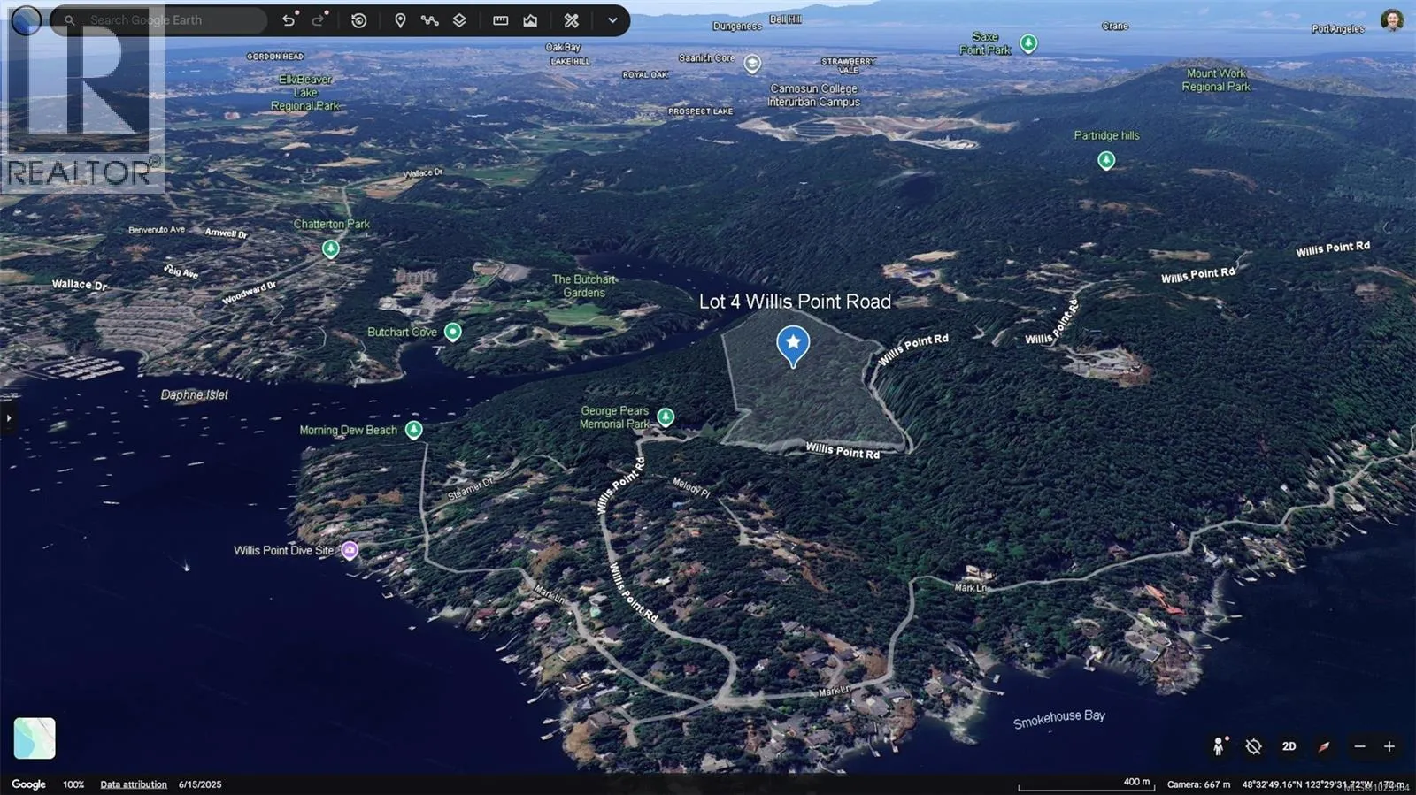 30.40 acres of rare non-ALR Saanich Peninsula land 20 min from Victoria bordering parkland with ocean views of Tod Inlet, Brentwood Bay, and Butchart gardens. Located in Central Saanich; a semi-rural community of hobby/working farms & vineyards with Canadaâs most temperate climate. Secondary suites & accessory buildings allowed, with multiple road/approach possibilities available, as well as hydro & cable on Willis Point Road lot line. Well drilled & approved for septic. This represents a last of its kind opportunity in South BC; likely never available again in present untouched, pristine state. Zoned RC with extremely low taxes and flexible opportunities for building & development on land with significant timber volumes in prime growing area for additional value every year. This lot can be purchased in conjunction with adjacent MLS# 1029563. View the lots together at MLS# 1029565. (id:27476)
