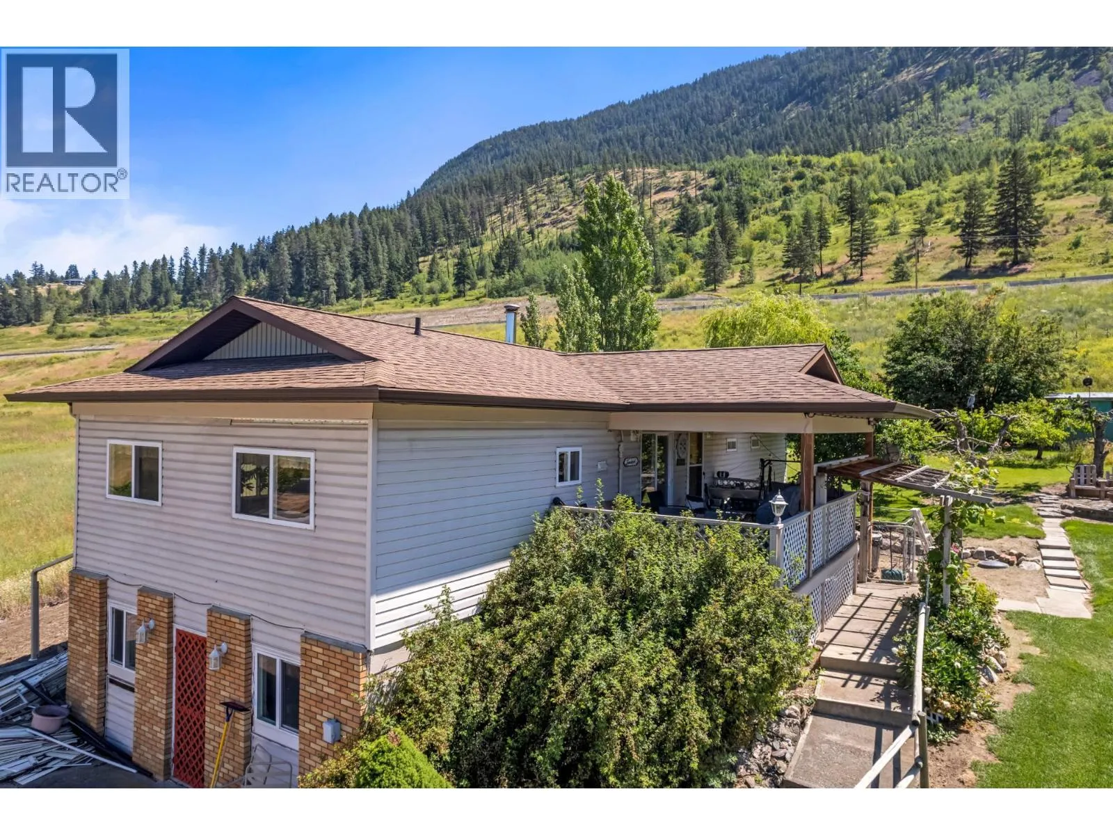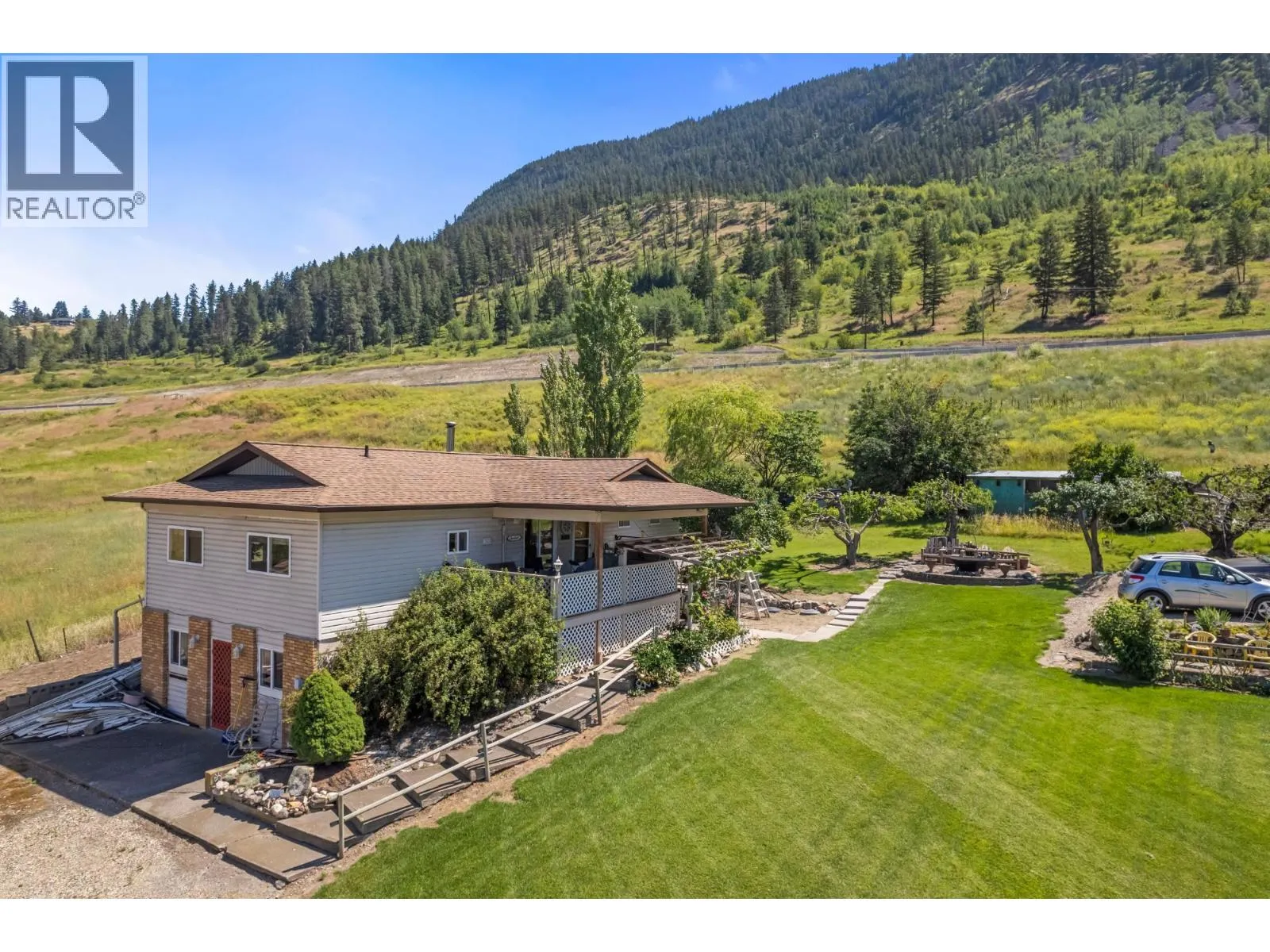 Nestled on a gently sloping lot, this three-bedroom, three-bathroom retreat offers stunning river valley and mountain views. The main floor boasts a contemporary kitchen with sleek countertops and modern appliances. A separate downstairs suite option adds versatility. Enjoy outdoor gatherings on the deck with a natural gas BBQ hookup. Recent updates include a 2014 septic tank replacement, new roof with a modern truss system, and a 2023 installation of a natural gas furnace and water well. A spacious 30' by 50' shop with an office and 200-amp service caters to hobbyists. Just 2 minutes from Chase's amenities and 35 minutes to Kamloops, this property combines serene living with easy access to recreation and city conveniences. (id:27476)
