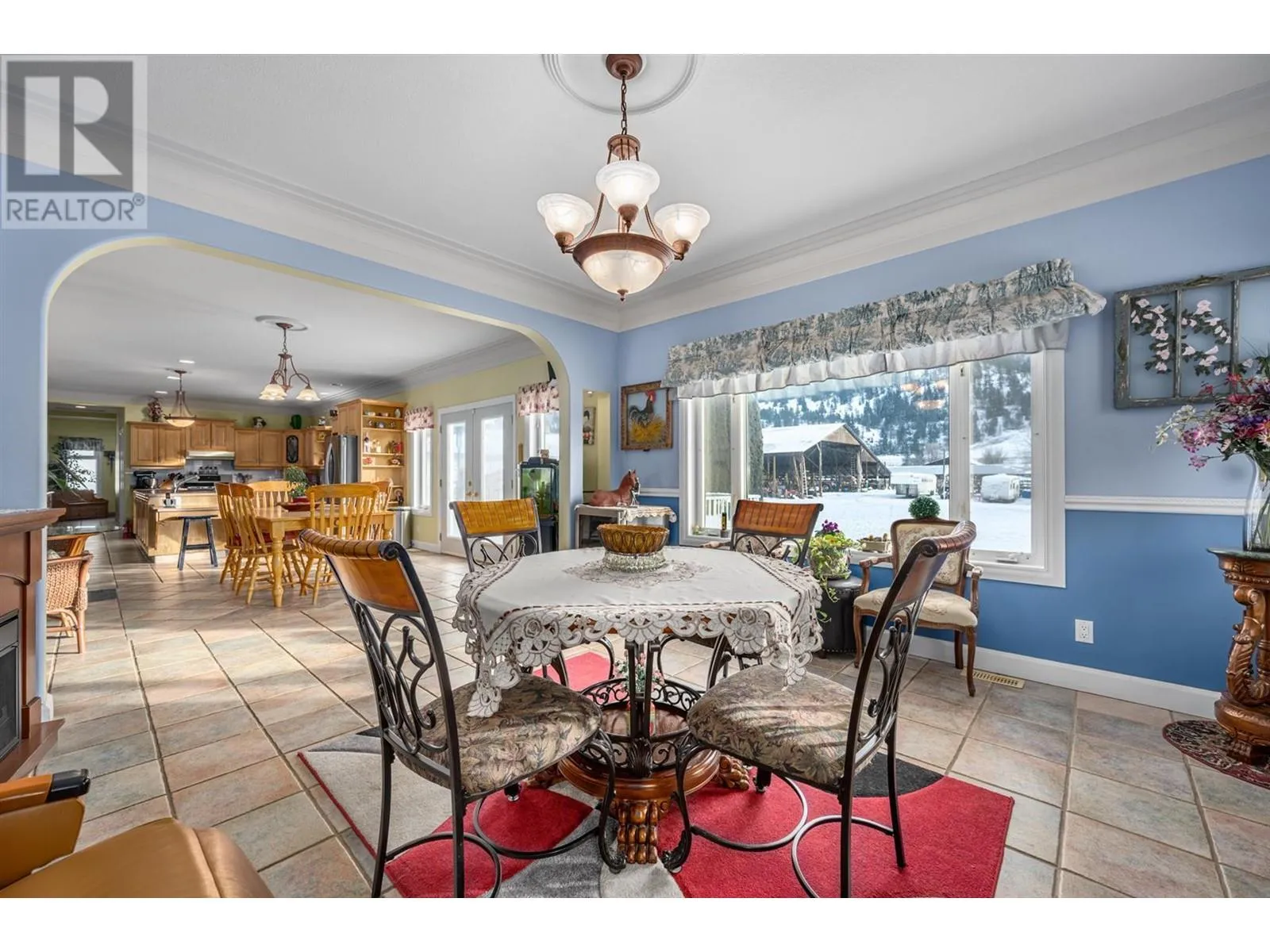 An exceptional 30-acre equestrian estate with 2 homes blending serene rural charm with upscale amenities. 25 acres of high production quality hay land with gravity fed irrigation. 4 cuts annually. 6,841 sqft main house with 5 beds, 5 baths, and wrap-around decks. Sunlit country kitchen, dual upper & lower kitchenettes, an office, ample storage, a wine cellar, and basement with potential for an in-law suite. 2nd home is a modern 1,500 sqft modular home with 3 beds & 2 baths, currently tenant-occupied for rental income. 3,440 sqft garage/workshop equipped with a 14,000 lb hoist, walk-in fridge, wood stove, and 200 AMP service. Includes fenced pastures, a 179x190 riding arena, various sheds, barns, and stables. RV parking with hookups, greenhouses, and fruit trees. Conveniently located with quick Hwy access, just 5 mins to Chase, and 40 mins to Kamloops & Salmon Arm, it's also near Shuswap Lake. Perfect for luxury rural living, hobbies, and agriculture. (id:27476)