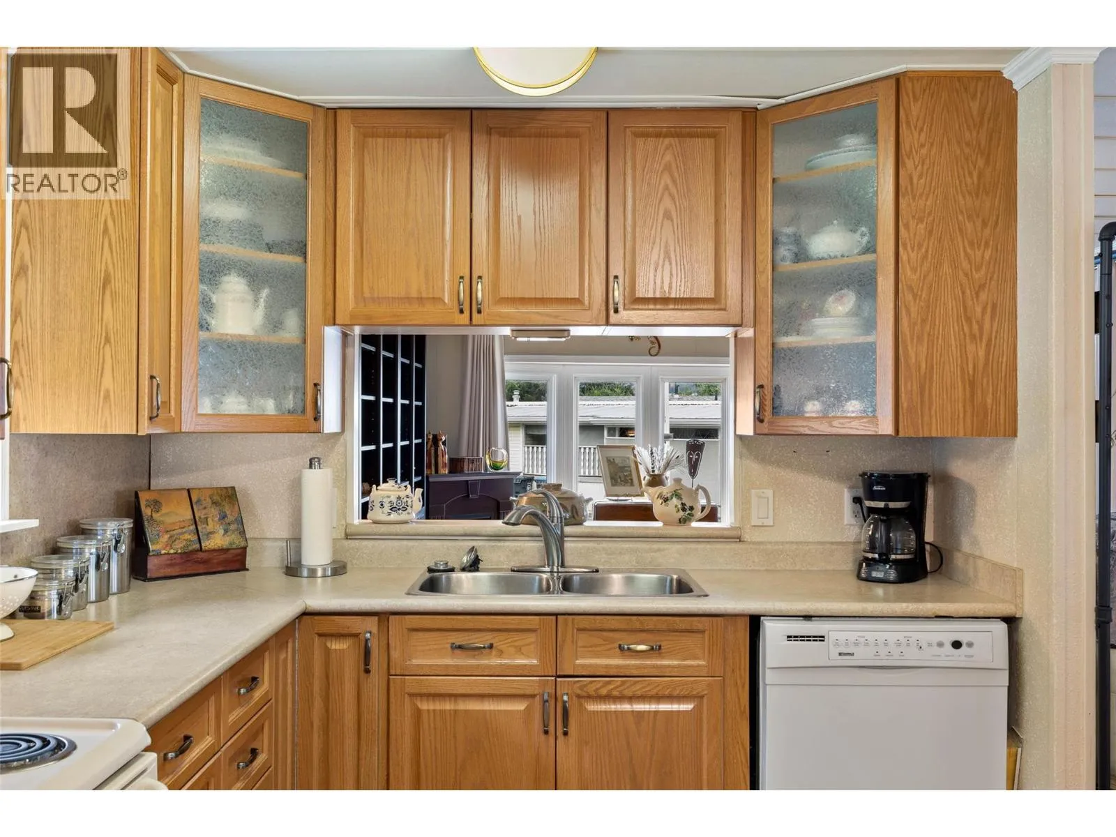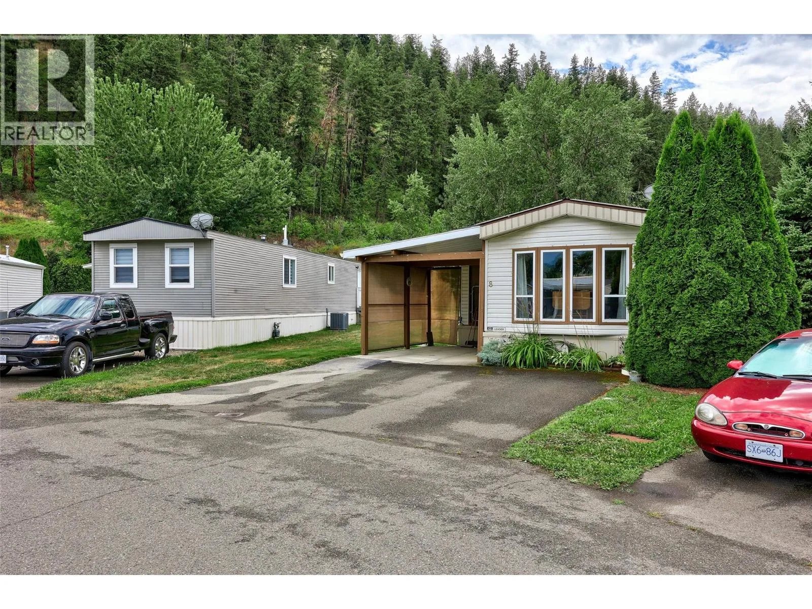 Welcome to 8-161 Shuswap Ave, set on the **largest pie-shaped lot in the park**! This well-kept home offers excellent value with thoughtful updates and plenty of extras. The spacious updated kitchen features ample storage and French doors leading to a screened patioâperfect for summer living. The bathroom has been refreshed with a new tub and surround, while the furnace (approx. 2012), hot water tank (2021), and freshly cleaned ducts (2025) provide comfort and peace of mind. A durable tin roof adds both longevity and FireSmart security. Outside, youâll find three versatile outbuildings including a former greenhouse and a âman caveâ or âshe shed.â The property also includes a carport and is prewired for a wheelchair lift. Located in a clean, pet-friendly park with restrictions, this home offers easy access to all Chase amenities, just steps away. Enjoy golf, recreation, and the beauty of Little Shuswap Lake right at your doorstep. Priced to move. (id:27476)