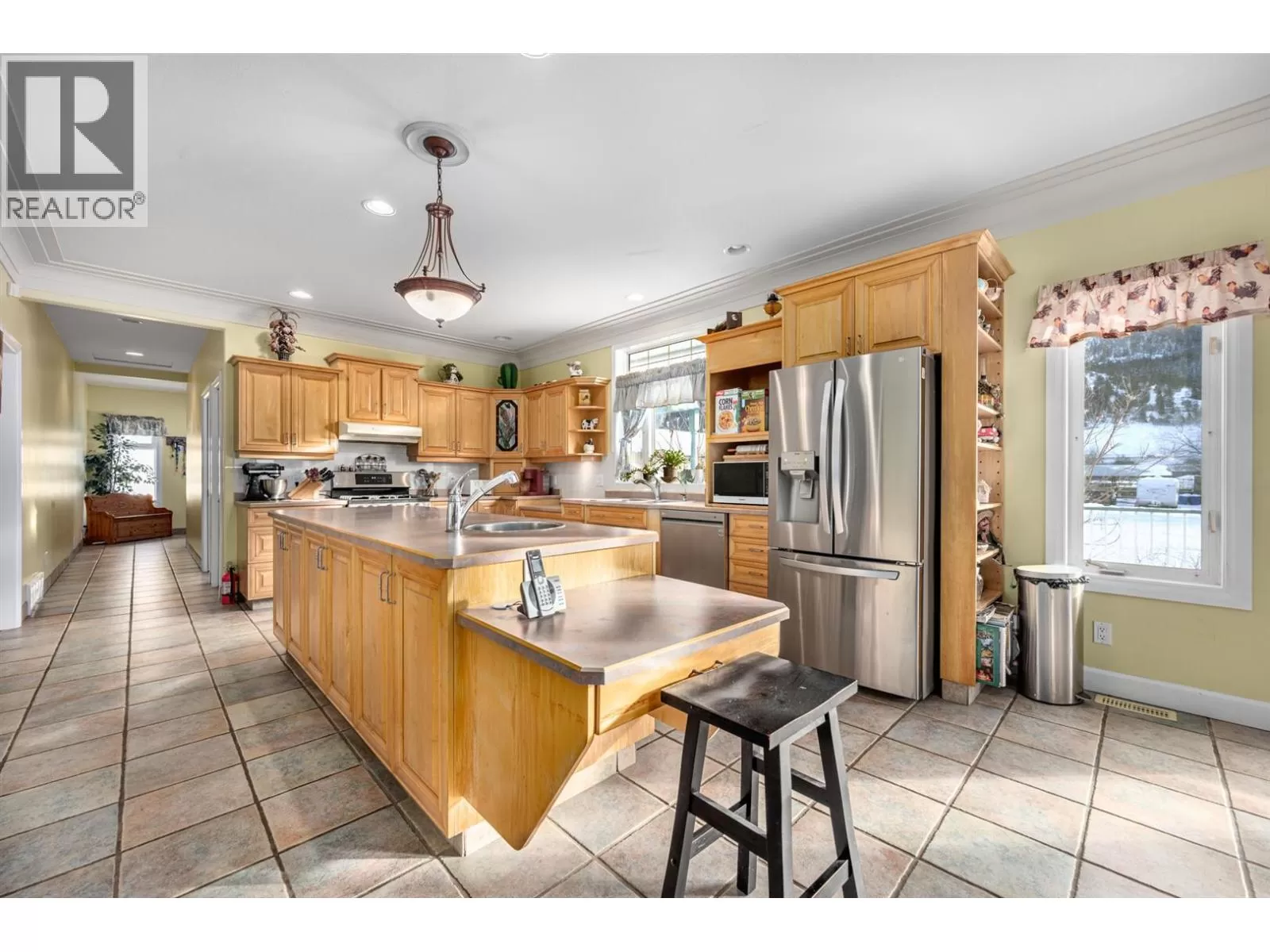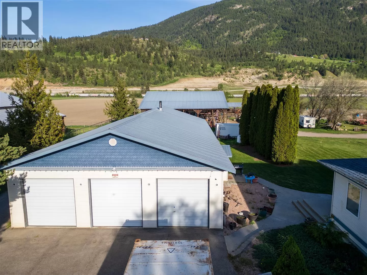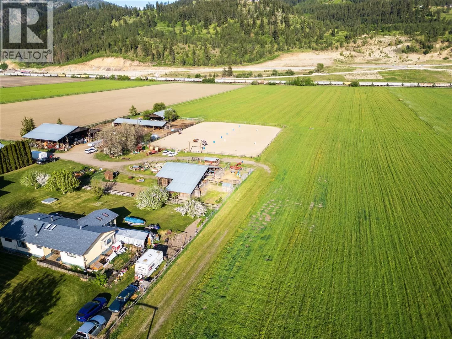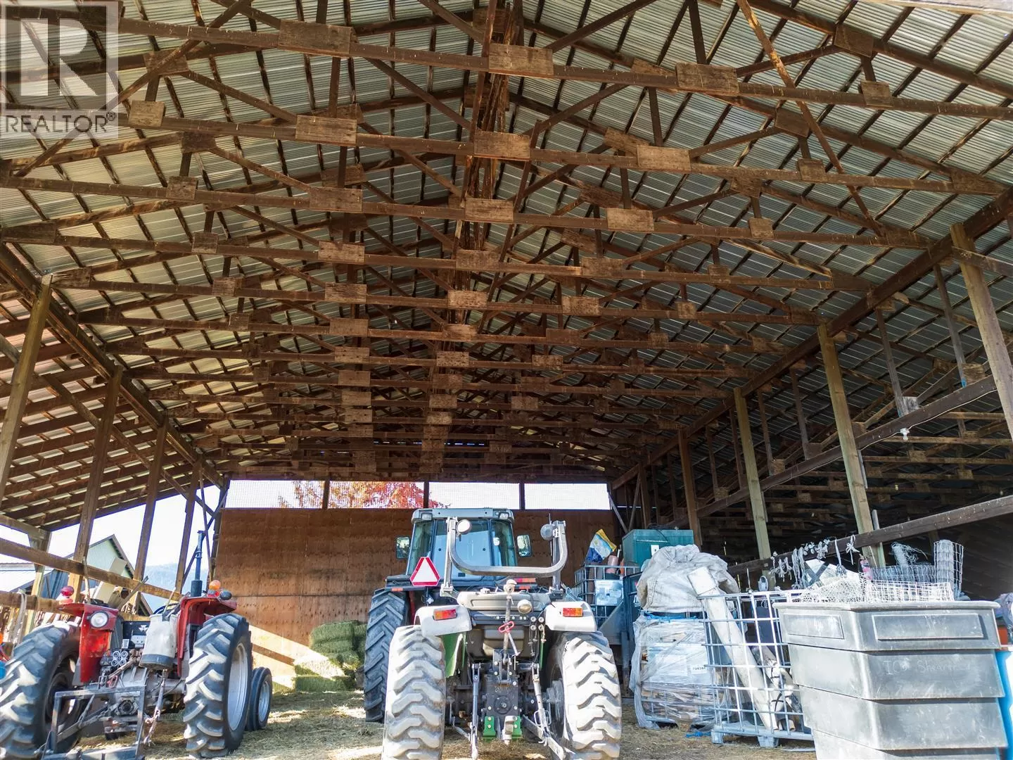 An exceptional 30-acre equestrian estate with 2 homes blending serene rural charm with upscale amenities. 25 acres of high production quality hay land with gravity fed irrigation. 4 cuts annually. 6,841 sqft main house with 5 beds, 5 baths, and wrap-around decks. Sunlit country kitchen, dual upper & lower kitchenettes, an office, ample storage, a wine cellar, and basement with potential for an in-law suite. 2nd home is a modern 1,500 sqft manufactured home with 3 beds & 2 baths, currently tenant-occupied for rental income. 3,440 sqft garage/workshop equipped with a 14,000 lb hoist, walk-in fridge, wood stove, and 200 AMP service. Includes fenced pastures, a 179x190 riding arena, various sheds, barns, and stables. RV parking with hookups, greenhouses, and fruit trees. Conveniently located with quick Hwy access, just 5 mins to Chase, and 40 mins to Kamloops & Salmon Arm, it's also near Shuswap Lake. Perfect for luxury rural living, hobbies, and agriculture. (id:27476)