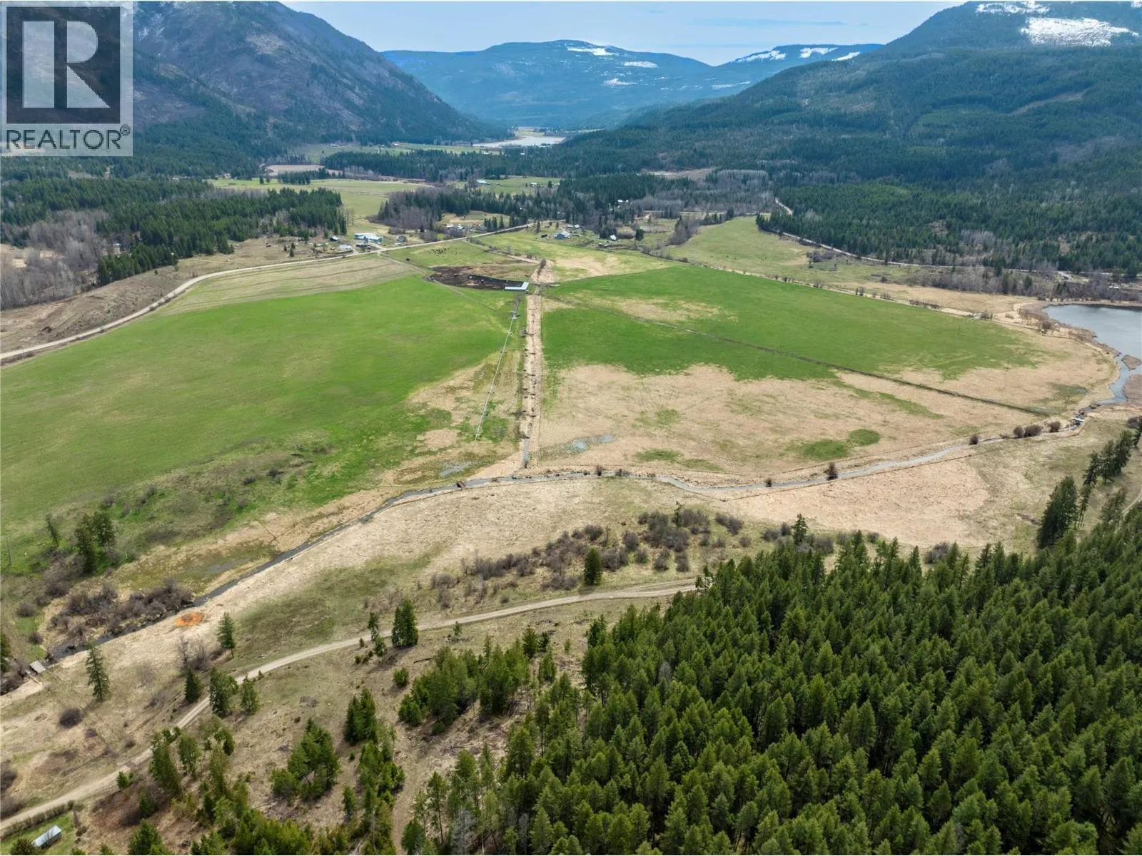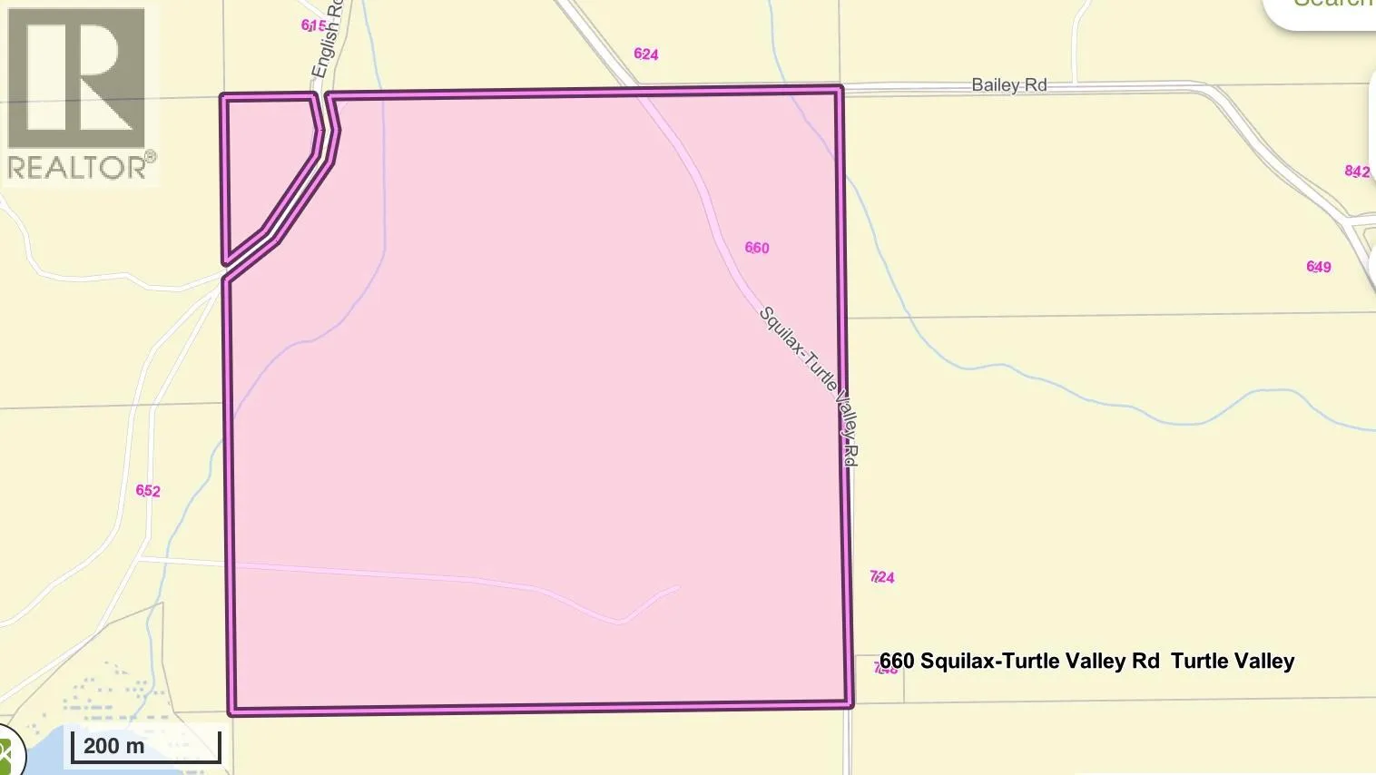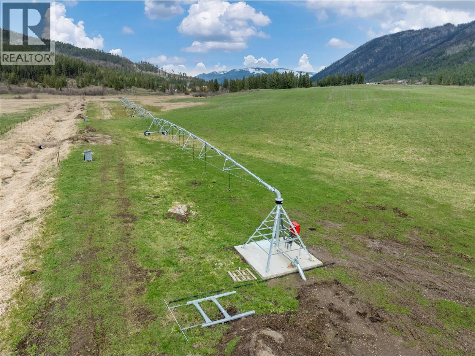 This 1/4 section of ALR land is nestled in the scenic farming location of Turtle Valley, less than one hour from Kamloops and just outside the town of Chase. It includes approximately 110 acres of irrigated farmland and a newly installed pivot irrigation system in 2024. The NE 13-acre corner includes a test well site with a confirmed high-flow water source (artesian well). This has a water line connected that would allow for development of a residential dwelling with a panoramic view of the valley overlooking Chum Lake and Creek. There are 4 water licences on the property: 2 irrigation licences with stream storage sites on Chum Creek, one irrigation from Trail Creek, and one land improvement licence for the drainage ditch from Eva Creek. There is also an easement on title for access across 652 English Road property for use of the pumphouse/dam storage site on Chum Creek. Previously used for bison pasture as well as hay production, this property is partially fenced with 5-foot game fencing. Structures include an L-shaped calving shed as part of a livestock finishing operation. It is also serviced for livestock watering with 4 troughs linked in a gravitational feed system. A secondary booster pump house and associated underground water lines and 6 hydrants add extra irrigation capacity to areas not serviced by the pivot. (id:27476)