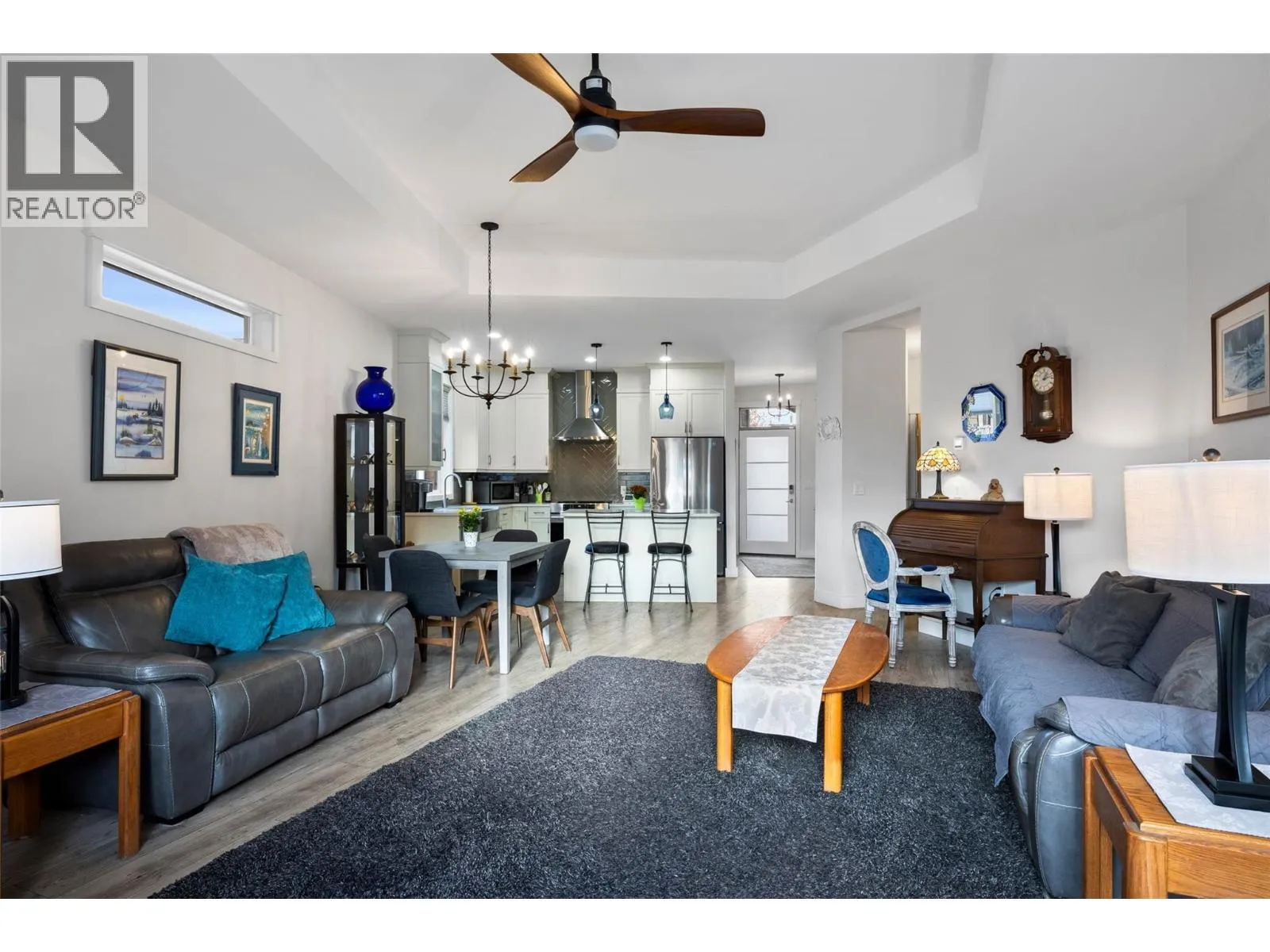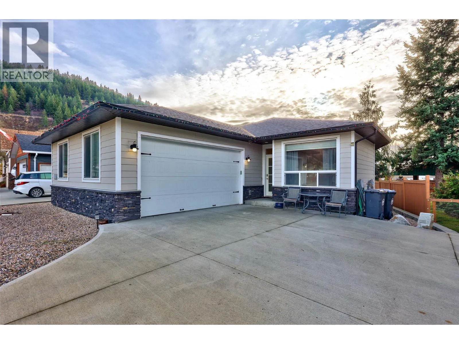 Bright and modern, this 10 year old true rancher was tastefully designed with dramatic features including a floor to ceiling tiled gas fireplace with chunky wood mantle and10 foot recessed tray ceiling in the living room. 9 foot ceilings throughout the rest of the home emphasize an airy, open flow. The kitchen boasts stainless steel appliances, an apron sink, stone countertops, eat up island and pantry. Easy care laminate flooring, with just over 1300 square feet, two bedrooms, two full bathrooms and a spacious laundry room, this homes makes a perfect starter or downsize! The ensuite provides ample space with a luxurious free standing bath tub and tile & glass shower, french doors off of the primary bedroom lead to a covered sun deck, overlooking your low maintenance, fully fenced backyard with storage shed. Offering an oversized garage with work bench, plenty of parking in the driveway and a 4 foot crawl space, there is room for all of your toys and more! Central air conditioning, RV parking, come have a look, this home has everything you need, located in the quiet community of Chase, BC., close to all amenities. (id:27476)