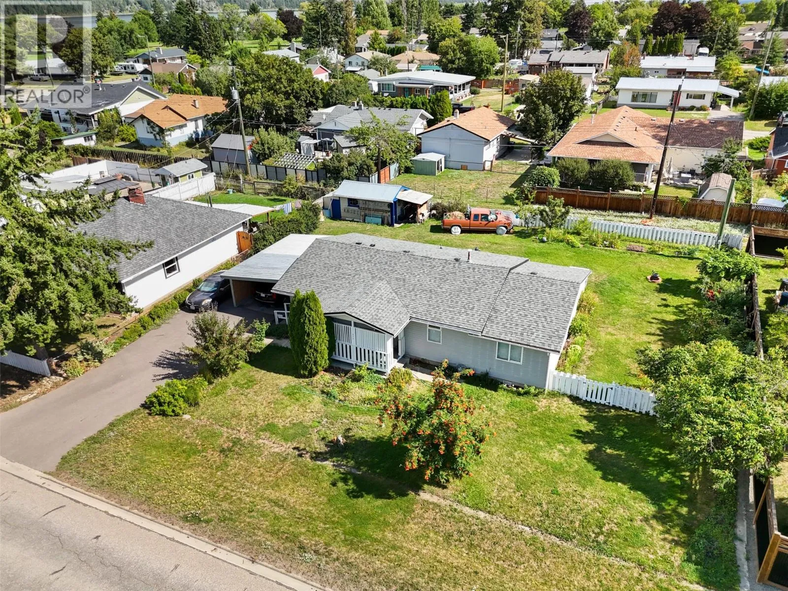 Very cute charming home in the Village of Chase. Rancher style home situated on a double lot, 0.236 of an acre close to the skate park, recreation, shopping and the lake access. This 2 bedroom 2 bathroom home offers some additional spaces that could easily be made into additional bedrooms. The large backyard is fully fenced and well landscaped with gardens and fruit trees. There is a double gate in the backyard for alley access to the yard with a workshop that has power. Driveway offers a one car carport and space for several other vehicles. Access to the very clean utility/storage room basement is a breeze with the back yard hatch. The home is easily accessible with the ramp to the front door. Must see home in the Village of Chase. (id:27476)