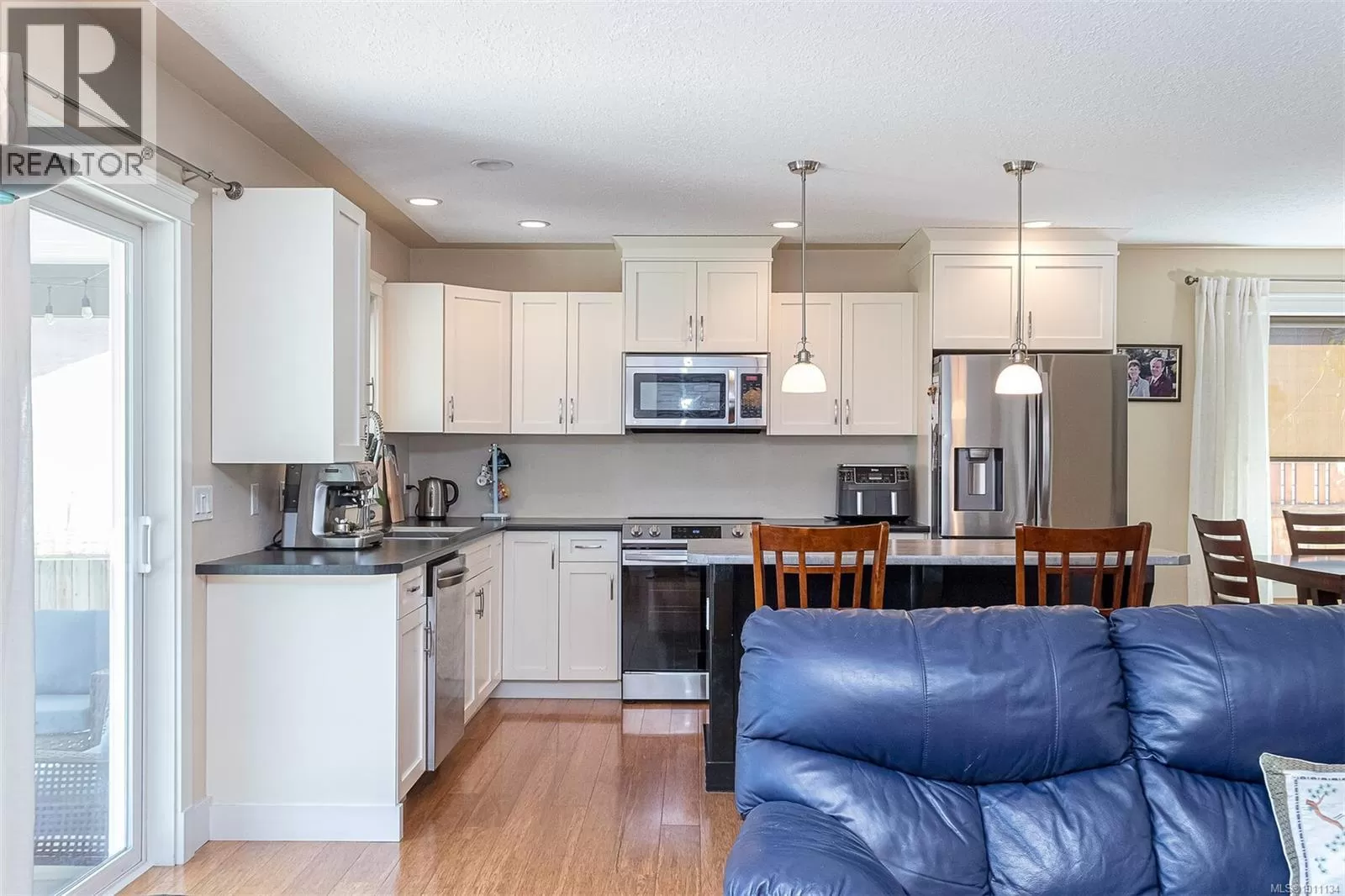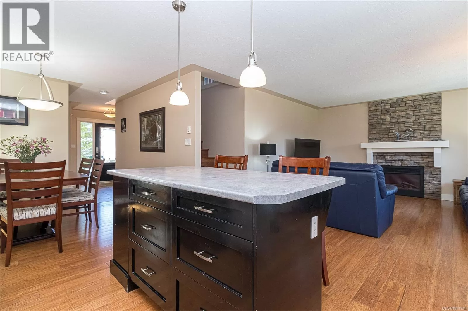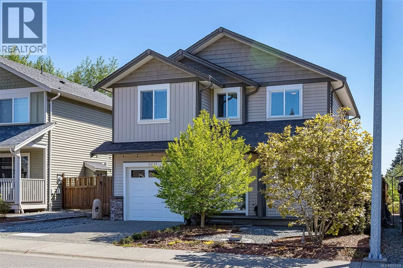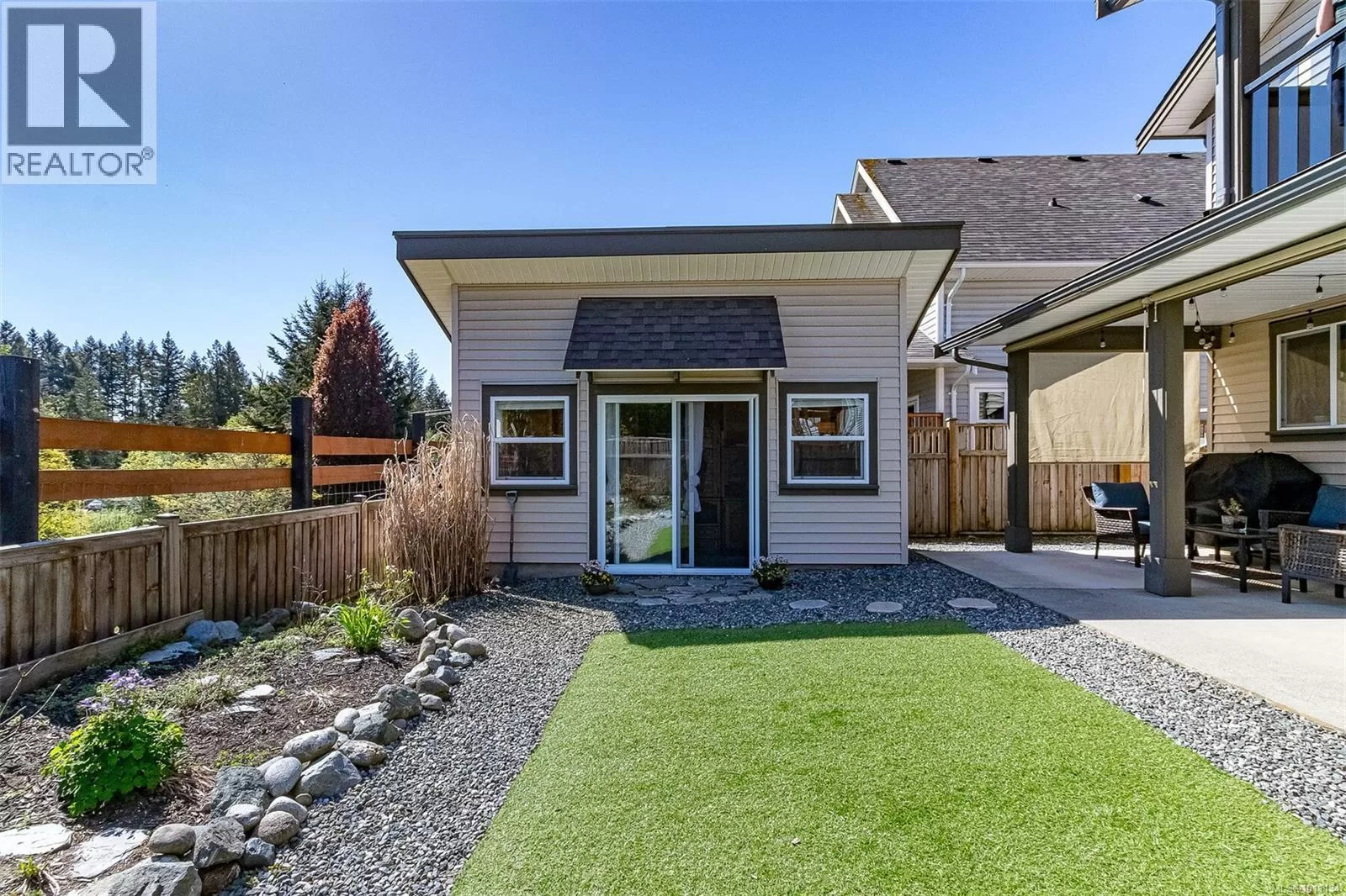 Exquisite 3 bedroom , 3 bath home in historic Chemainus with distant ocean views. The primary suite boasts a private balcony, spa-inspired- 4 pce ensuite, and a huge walk in closet. Two additional spacious bedrooms complete the upper level. Featuring wood floors, tiled bathrooms, and a floor to ceiling stone fireplace in the living room, this home blends warmth and elegance. The modern kitchen offers newer stainless steel appliances, a large sit in island , and direct access to a covered deck overlooking the serene backyard. A detached studio with in floor heating, and ready to be plumbed, adds endless possibilities. Oversized single garage plus extra driveway parking. Walking distance to town and all amenities in a highly sought after neighborhood. This home has lots of extras and great value! (id:27476)