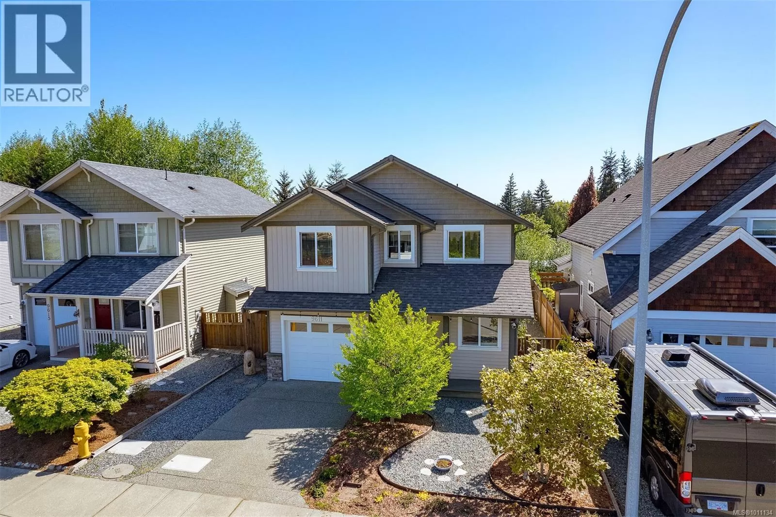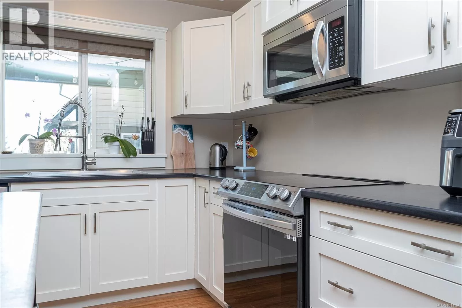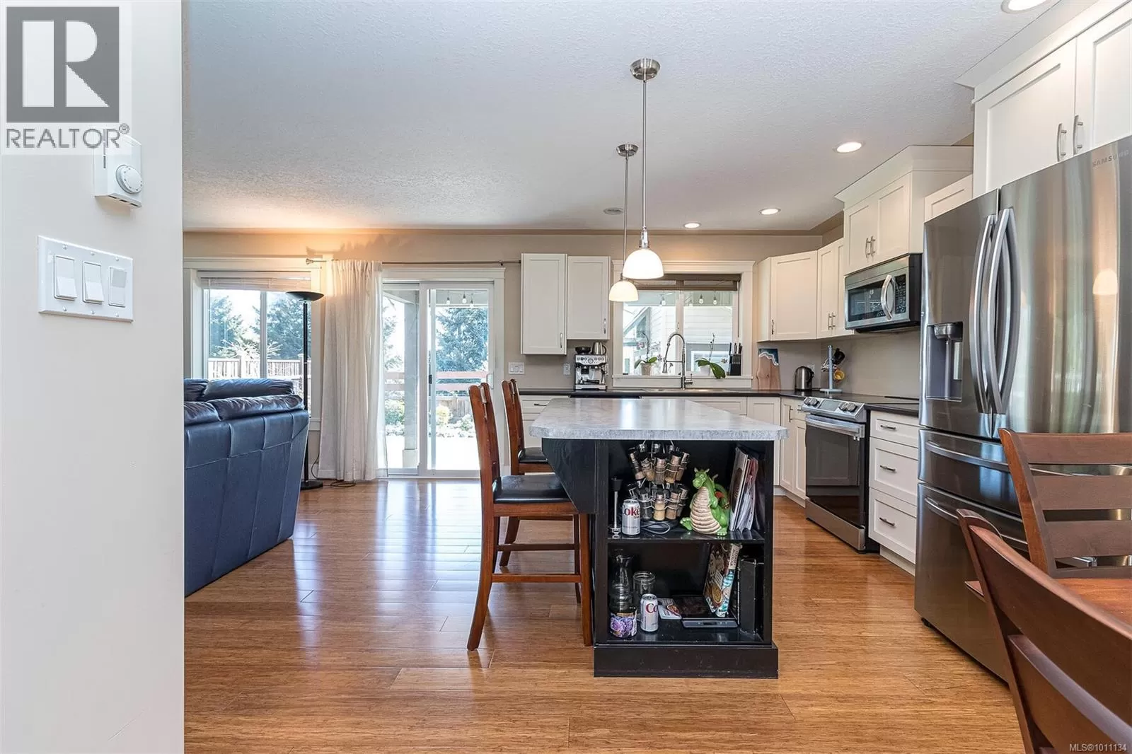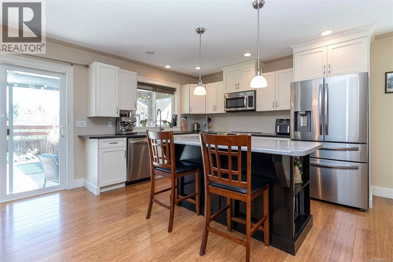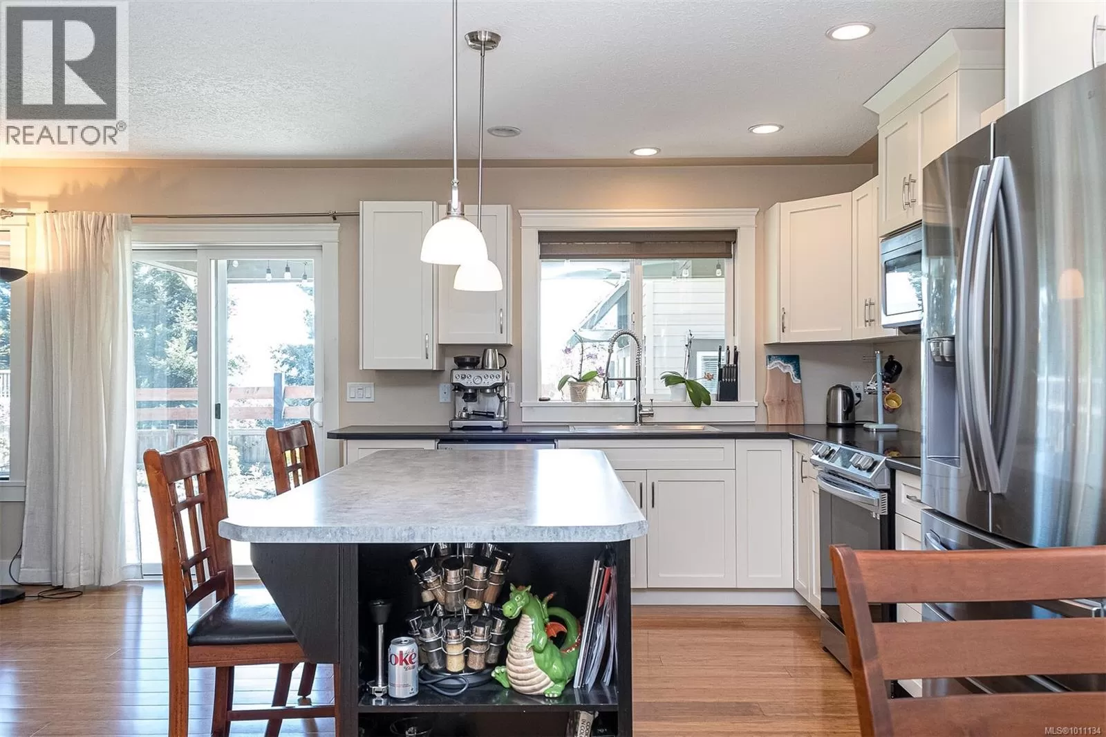 Exquisite 3 bedroom , 3 bath home in historic Chemainus with distant ocean views. The primary suite boasts a private balcony, spa-inspired- 4 pce ensuite, and a huge walk in closet. Two additional spacious bedrooms complete the upper level. Featuring wood floors, tiled bathrooms, and a floor to ceiling stone fireplace in the living room, this home blends warmth and elegance. The modern kitchen offers newer stainless steel appliances, a large sit in island , and direct access to a covered deck overlooking the serene backyard. A detached studio with in floor heating, and ready to be plumbed, adds endless possibilities. Oversized single garage plus extra driveway parking. Walking distance to town and all amenities in a highly sought after neighborhood. This home has lots of extras and great value! (id:27476)