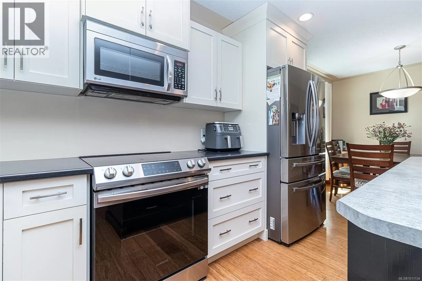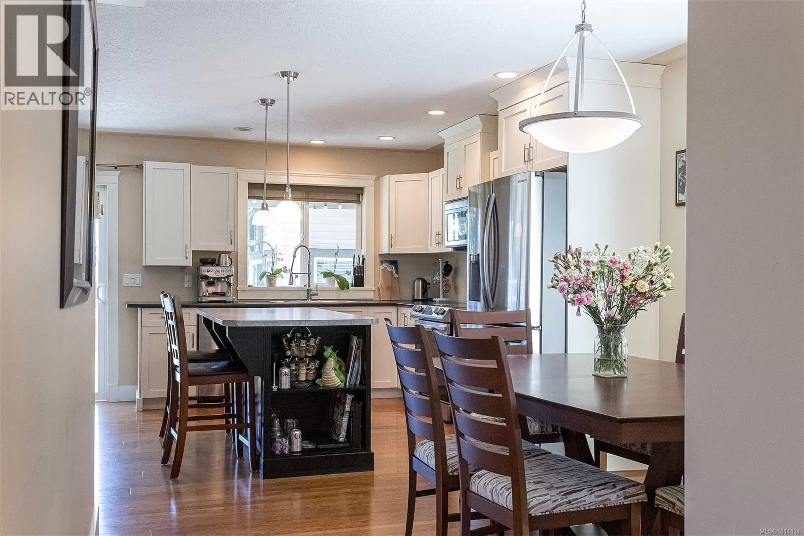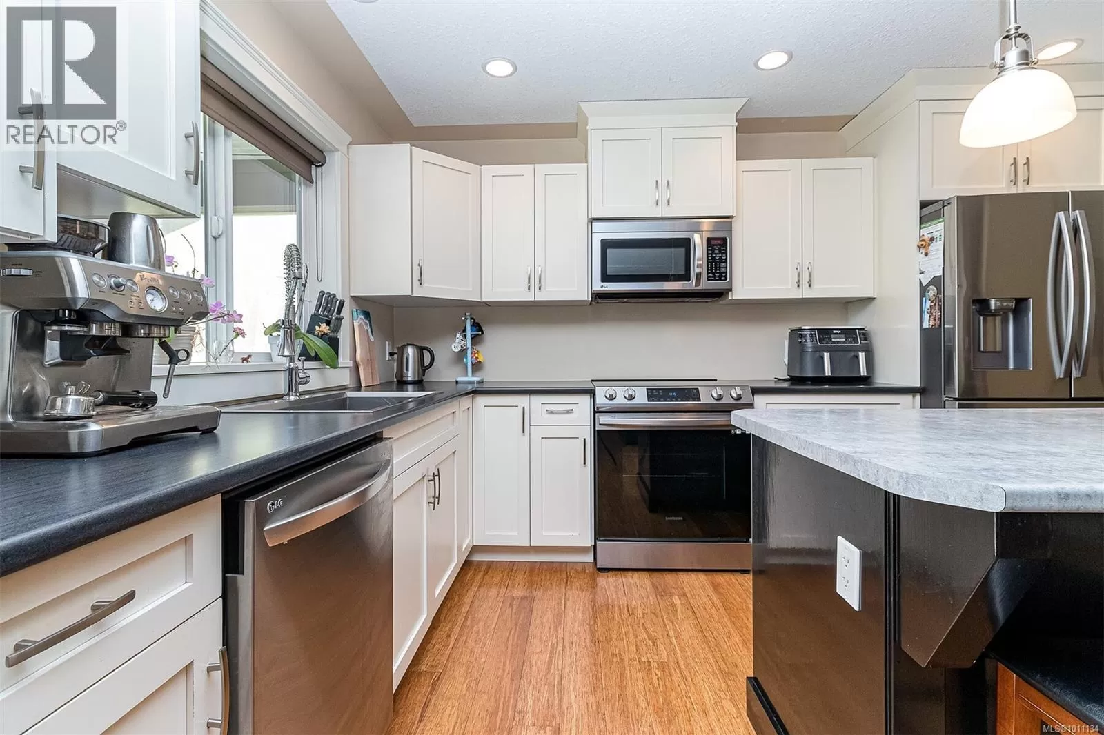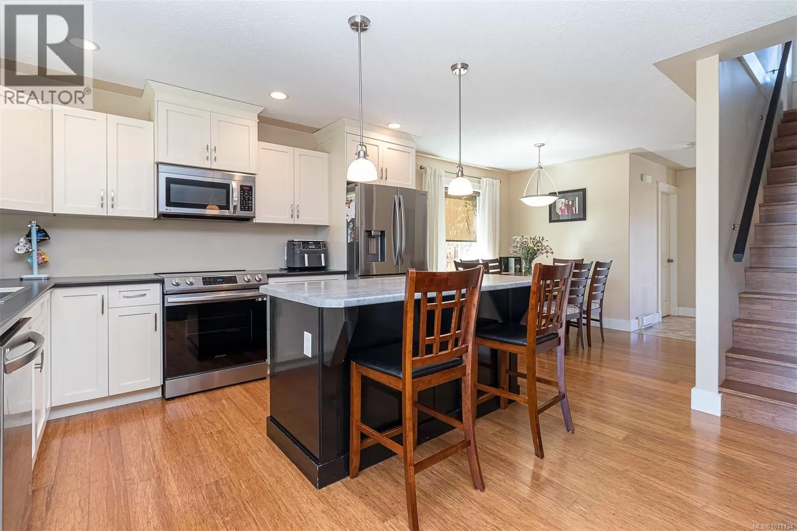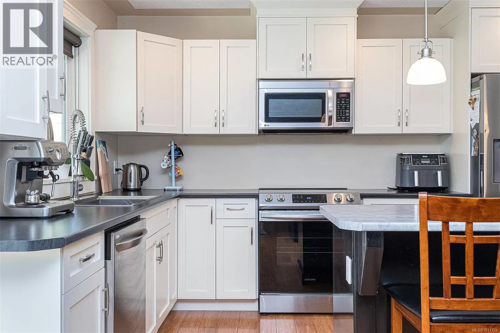 Exquisite 3 bedroom , 3 bath home in historic Chemainus with distant ocean views. The primary suite boasts a private balcony, spa-inspired- 4 pce ensuite, and a huge walk in closet. Two additional spacious bedrooms complete the upper level. Featuring wood floors, tiled bathrooms, and a floor to ceiling stone fireplace in the living room, this home blends warmth and elegance. The modern kitchen offers newer stainless steel appliances, a large sit in island , and direct access to a covered deck overlooking the serene backyard. A detached studio with in floor heating, and ready to be plumbed, adds endless possibilities. Oversized single garage plus extra driveway parking. Walking distance to town and all amenities in a highly sought after neighborhood. This home has lots of extras and great value! (id:27476)