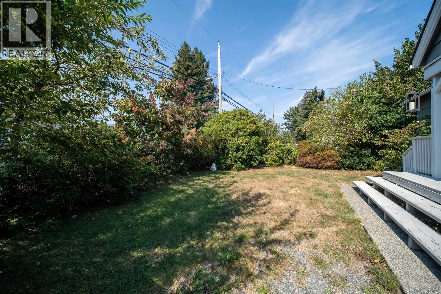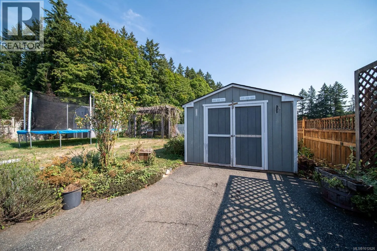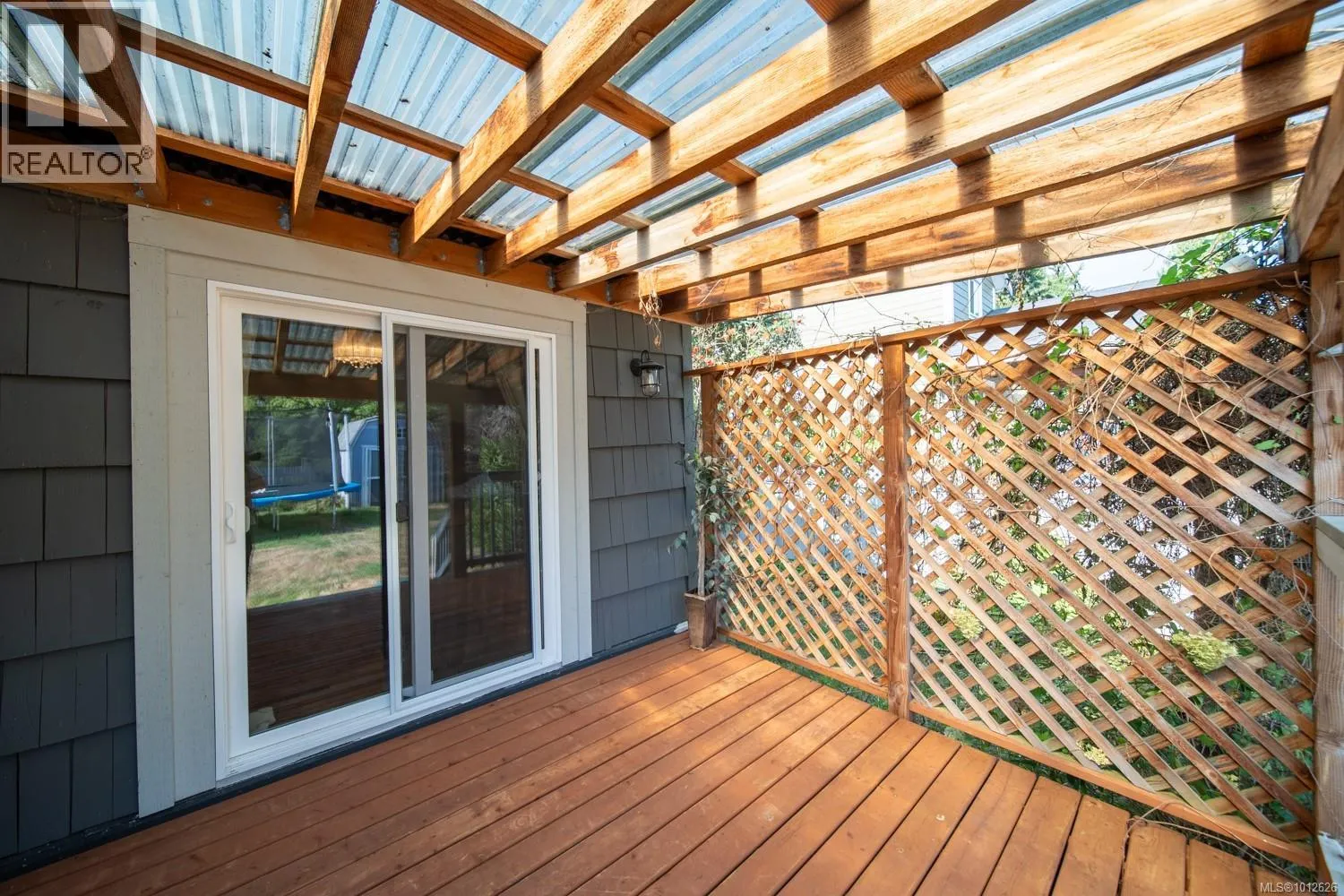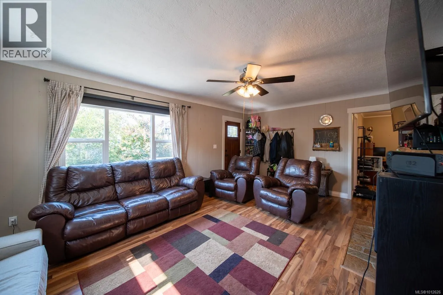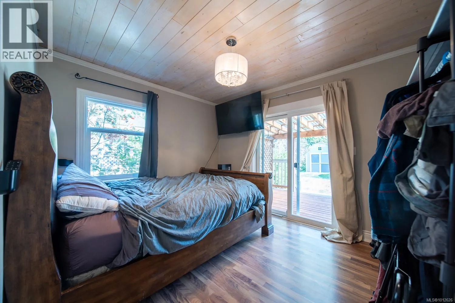 Welcome to 9387 Chemainus Road, a charming 3-bedroom, 1-bath home on a spacious 7,405 sq ft lot backing onto a private acreage for a peaceful setting. The inviting living room with a cozy gas fireplace flows into the bright kitchen with eating nook, leading to a sunroom and covered patio overlooking the large backyard. A 4-piece bath with soaker tub, office area, and primary bedroom with its own covered patio complete the main floor. Upstairs offers two bedrooms and an electric fireplace for warmth and character. Outside, enjoy a detached workshop and ample space for hobbies or storage. With multiple patio areas, a generous yard, and backing onto nature, this property is perfect for those who value indoor-outdoor living. Efficiently heated and cooled with a heat pump, this home combines comfort, charm, and privacy in the heart of Chemainus. (id:27476)