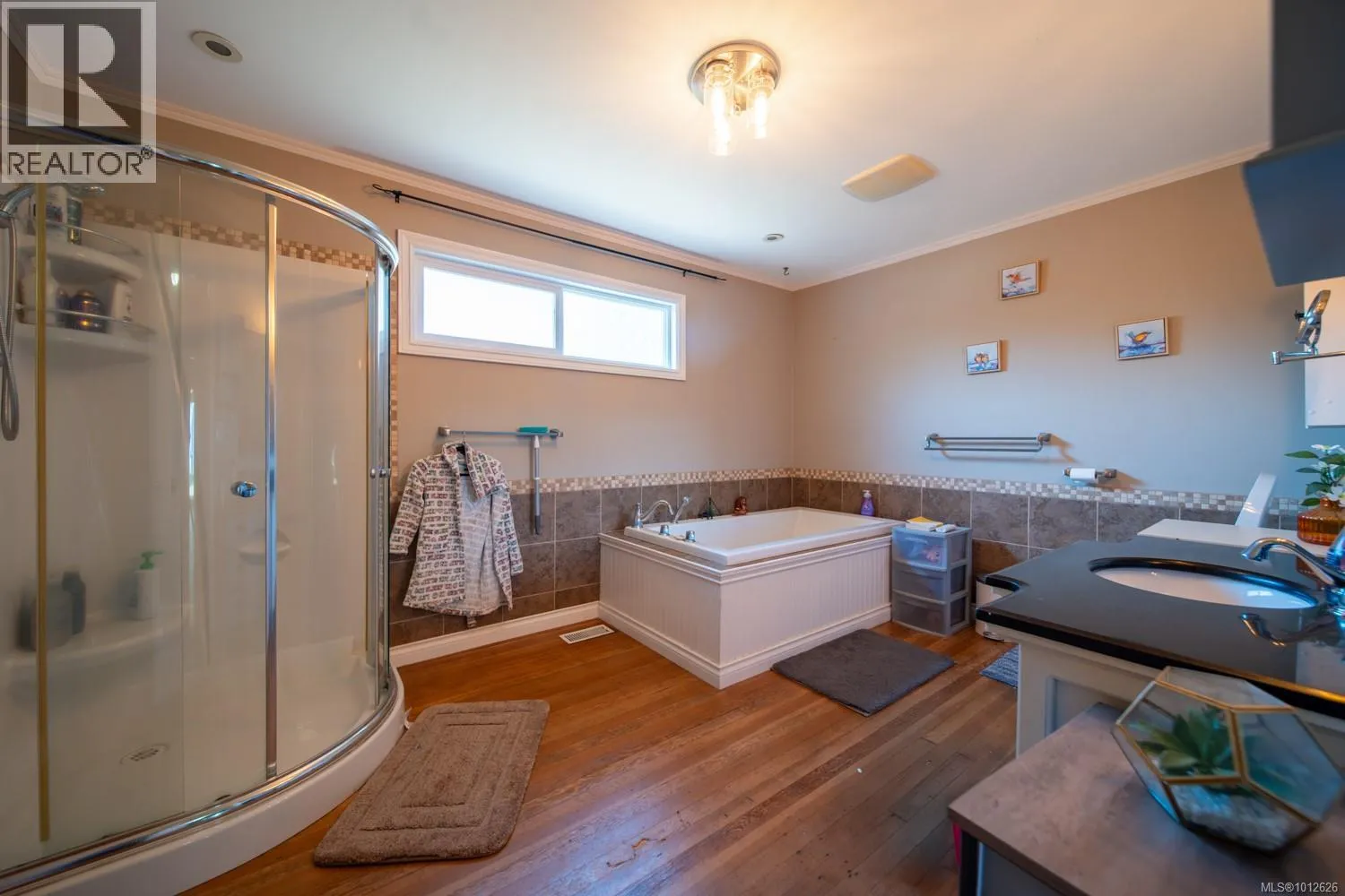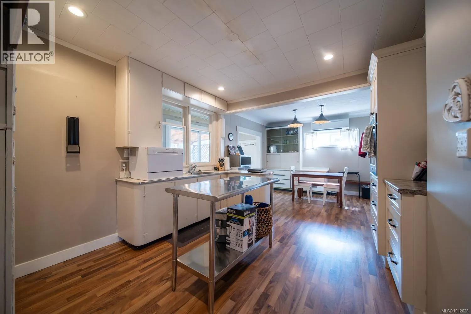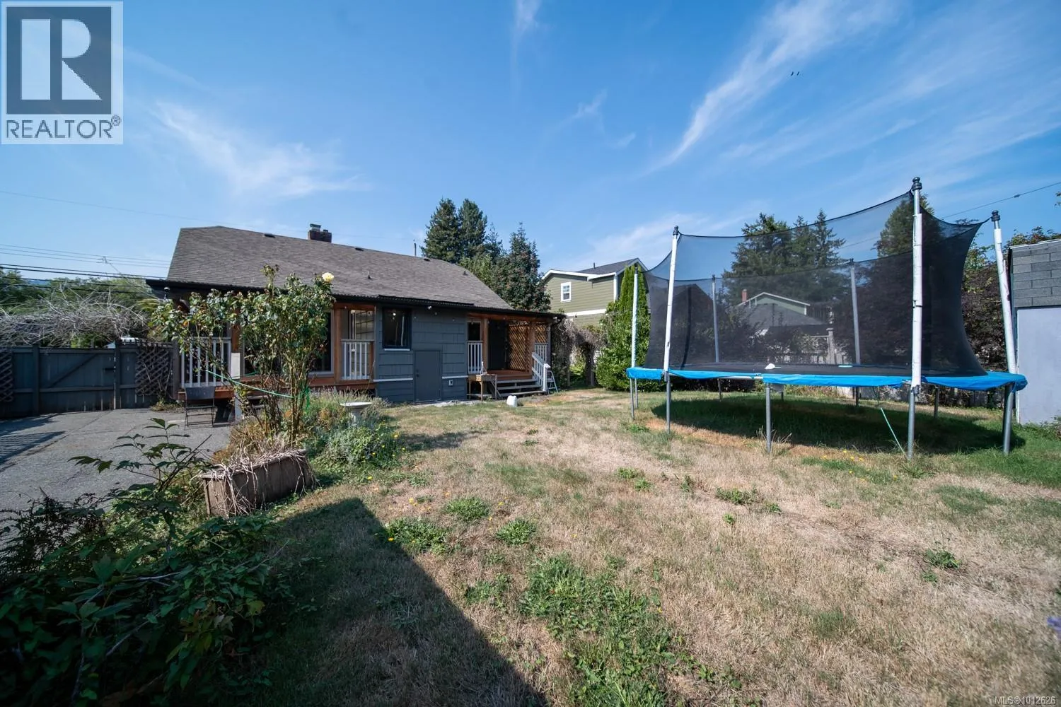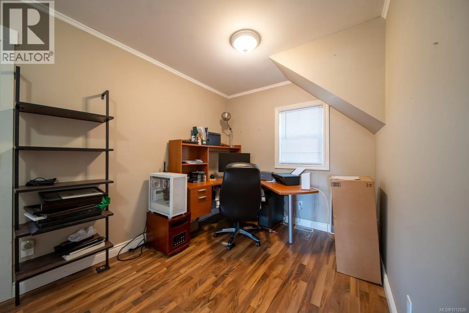 Welcome to 9387 Chemainus Road, a charming 3-bedroom, 1-bath home on a spacious 7,405 sq ft lot backing onto a private acreage for a peaceful setting. The inviting living room with a cozy gas fireplace flows into the bright kitchen with eating nook, leading to a sunroom and covered patio overlooking the large backyard. A 4-piece bath with soaker tub, office area, and primary bedroom with its own covered patio complete the main floor. Upstairs offers two bedrooms and an electric fireplace for warmth and character. Outside, enjoy a detached workshop and ample space for hobbies or storage. With multiple patio areas, a generous yard, and backing onto nature, this property is perfect for those who value indoor-outdoor living. Efficiently heated and cooled with a heat pump, this home combines comfort, charm, and privacy in the heart of Chemainus. (id:27476)