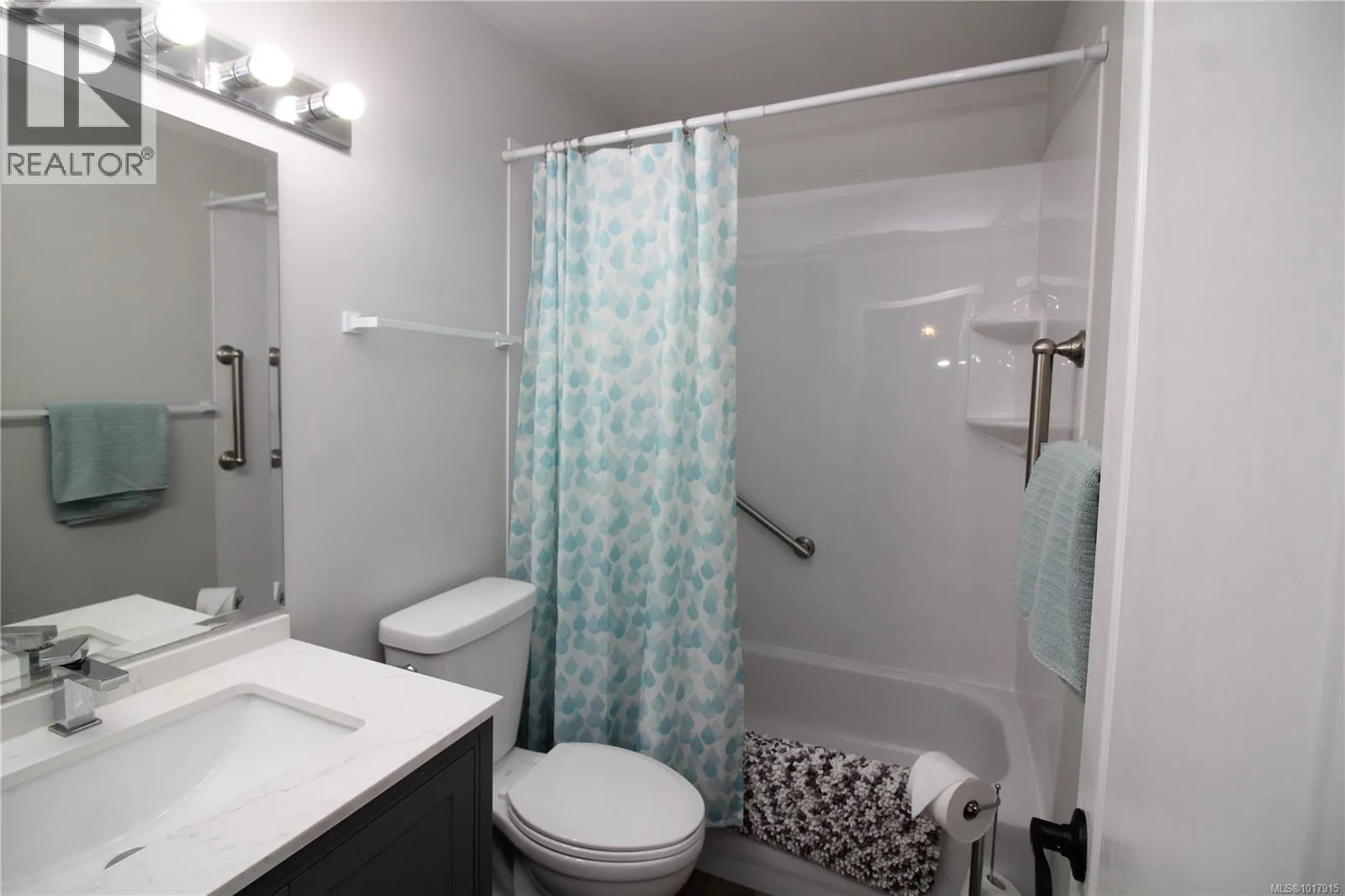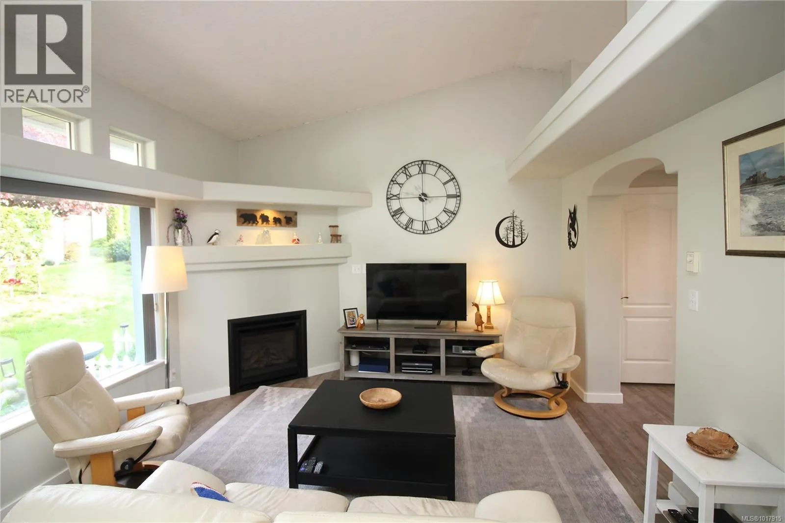 Welcome home to Station Ridge and this turnkey renovated 2 bed, 2 bath unit located in the seaside community of Chemainus. This home features many upgrades since 2019: kitchen, bathrooms, vinyl plank flooring, heat pump, lighting, blinds, paint, garage door, hot water tank, patio fencing + motorized awning for back patio (2023). The kitchen boasts new cabinetry, appliances, + walk through pantry with laundry/utility closet. Open concept living/dining area is bright and welcoming, w/newer NG fireplace insert (2016) + access to the back patio and gardens. Primary includes walk-in closet + 3 pc ensuite. Single attached garage with nook for a workbench and inside entry into the kitchen. No age restrictions, no long term rental restrictions, 1 dog up to 25 lbs OR 1 cat (per strata bylaws). Tastefully remodelled, there's nothing to do but move in and enjoy low maintenance living within walking distance to restaurants, shops, services, amenities and schools. (id:27476)