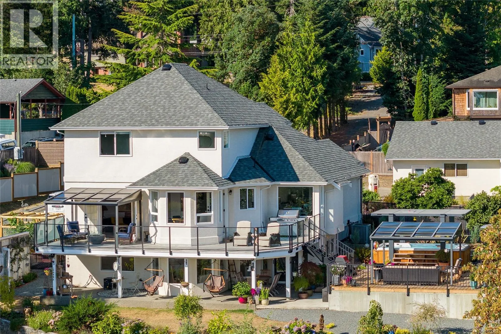 Sunrise with your morning coffee, stunning ocean views of marine traffic, coastal mountains alight with sunset rays, easy walks to your favourite shops in picture-perfect-town of Chemainus. This home has been loving updated with absolute quality and care. Enter to dramatic cathedral ceilings in the dining room & sunken living room. Sunny kitchen is the heart of the home. New cabinets & appliances gives a fresh start, and the beautiful labradorite countertop is a work of art. Enjoy the easy flow family room or spend time on one of many decks. Three bedrooms, bonus room, and den in the main living space offer room to grow. The one-bedroom suite is brand new from the studs up, and includes separate laundry, new appliances, outdoor space, and its own ocean view. This .61-acre property is newly fenced and enjoys detached shop & workshop, plus double garage & RV parking & pump out. Extremely walkable neighbourhood close to schools and fronting the Cowichan Valley Trail. Home also sports, established greenhouse & workshop for garden tools. Amazing opportunity to own the full package! (id:27476)