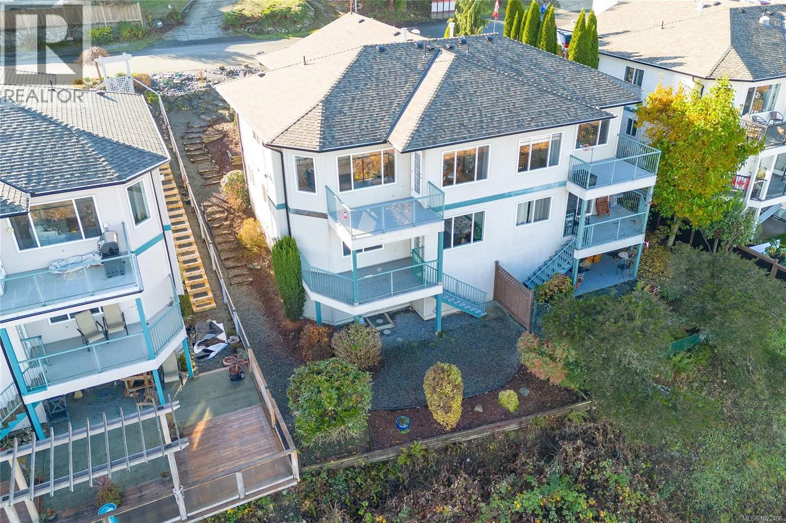 Stunning ocean views from most rooms in this lovely and well maintained entry level side by side half duplex on View Street in Chemainus. Vista's also take in the gulf Islands and mainland mountains. This open plan home has primary bedroom on the main with it's own 3 piece ensuite and walk in closet. The main floor open concept floorplan with living, dining and kitchen space all enjoying the in your face ocean views. Downstairs is another bedroom a study/ den/bed/flex room, a large family room, a 4 piece bathroom, a separate laundry room and access to another patio/deck area - home has lovely easy care landscaping and on lower level a huge walk in crawlspace for plenty of storage. Single car garage, new roof, multiple deck patio areas, this is a well maintained home. Freehold Strata no pet restrictions, no age restrictions and no strata fees. Close to walking trails, shopping and all that living in Chemainus has to offer. This unit is easy to show and ready to go - a pleasure to show (id:27476)
