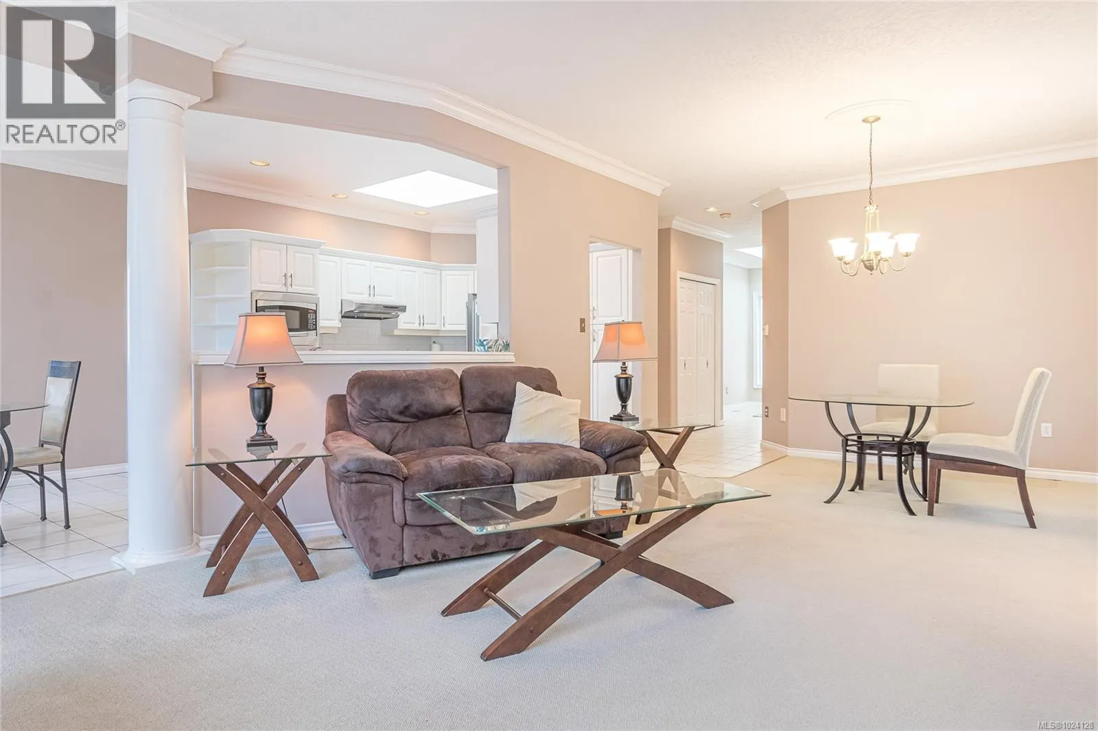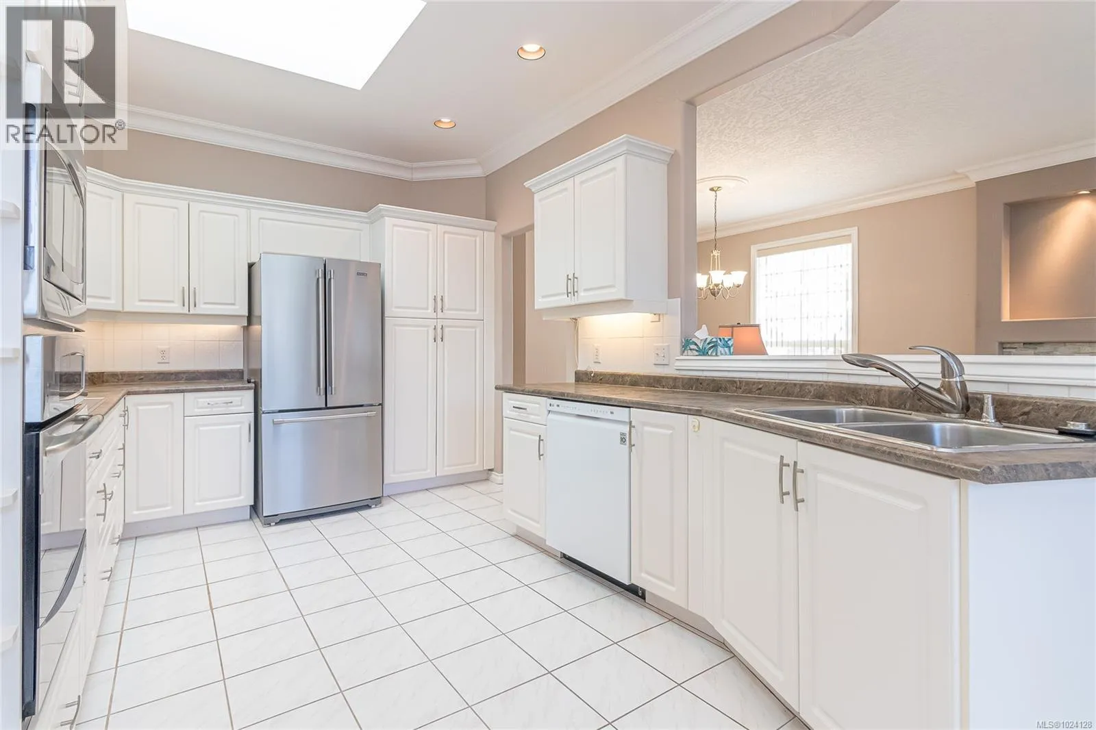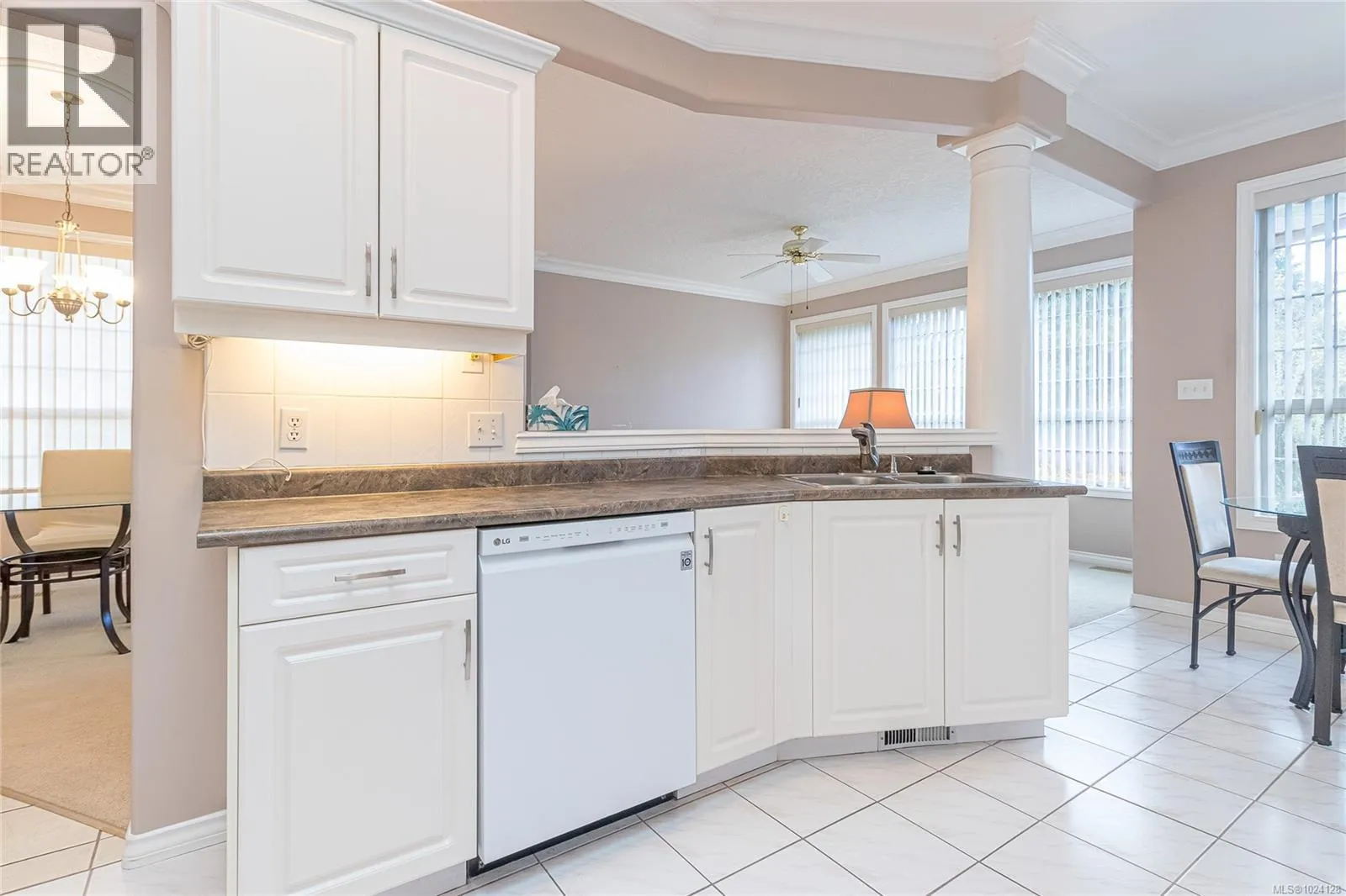A very nice 1550 sqft townhome in Cedar Ridge Village Chemainus -2 bed 2 bath with a very unique floorplan and a very nice location in the development - Spacious open floor plan includes kitchen with loads of cupboards and lots of counter space with eat in nook - Formal living room with updated fireplace and surround - formal dining room with area for a china cabinet- Primary bedroom with doors to the private patio area- a full ensuite and walk in wardrobes and gas fireplace. Second bedroom and another 3pce bath as well as separate laundry complete the layout - One level living in a well managed park the unit also has a attached two car garage, multiple skylights, landscaped yard, hot water on demand - located close to shopping, Mt Brenton Golf course and all forms of recreation - Chemainus by the sea is a great retirement area with a very active seniors centre - this unit is easy to show and ready to go! (id:27476)