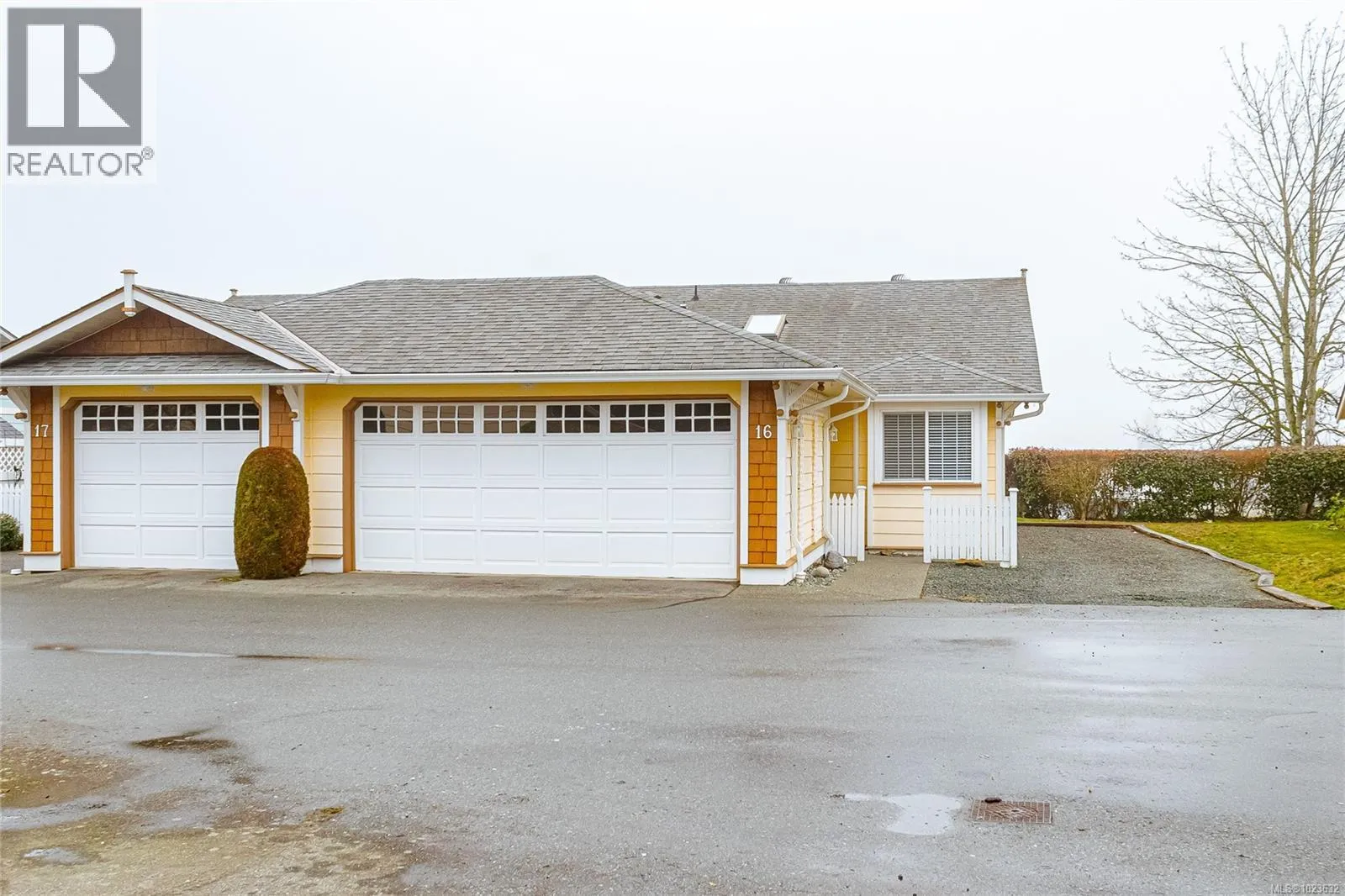 One of the most sought after units in Station Ridge Village is this 2 bedroom 2 bathroom townhome located at 16-9933 Chemainus road Chemainus - Ocean views this unit is well maintained and comes with a two car garage and another parking space - Nice open floorplan with vaulted ceilings, gas fireplace, hardwood floors, new patio doors to the yard, new paint throughout. Primary with ensuite and walk in closet- Second bedroom and another full bath make this a very nice layout- located close to shopping and all forms of recreation that Chemainus and area have to offer including walking trails, mt Brenton Golf and just a few blocks to the ocean- Wonderful 1100sqft townhome with super nice neighbors - Unit is ready to go and easy to show (id:27476)