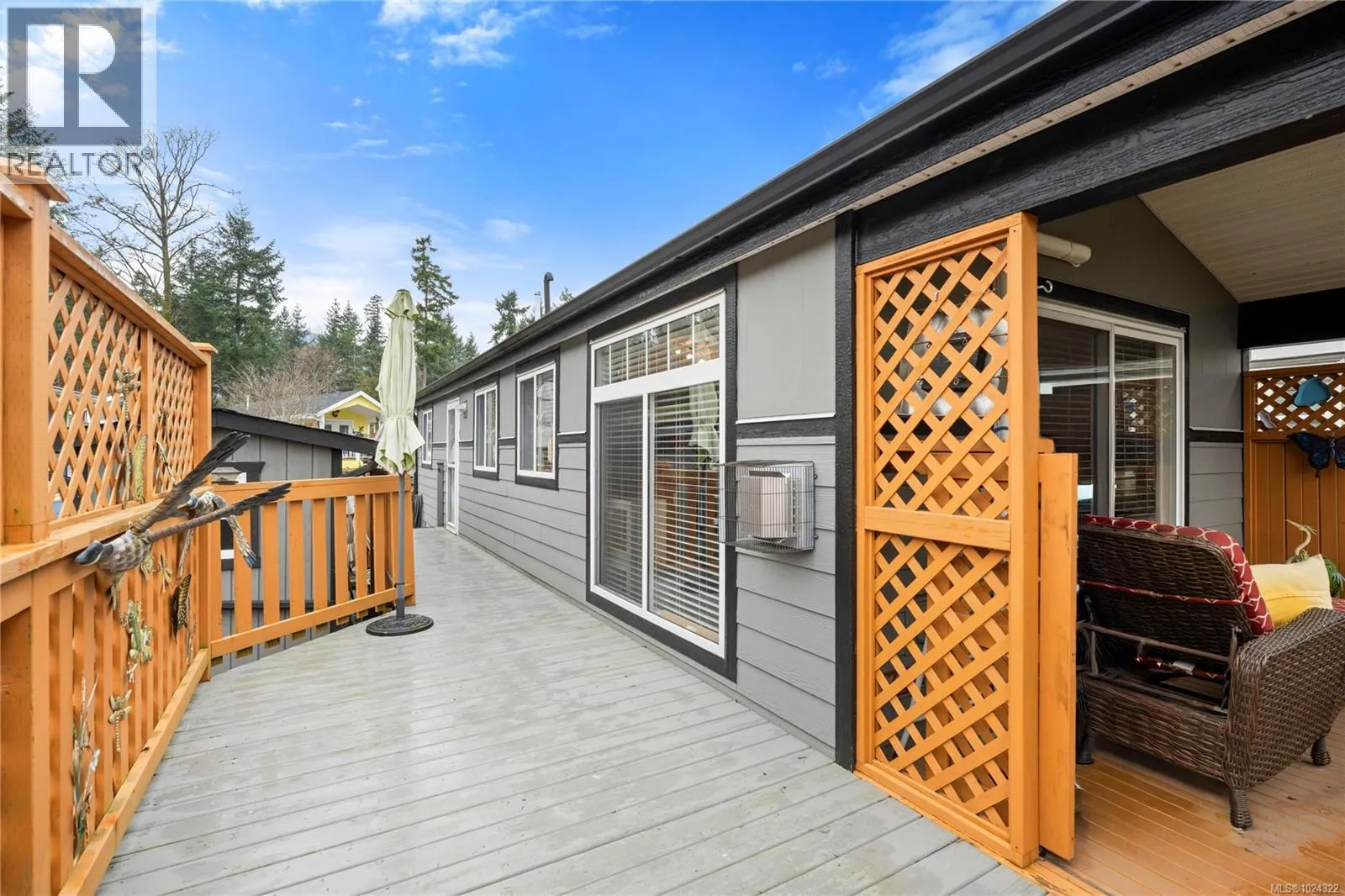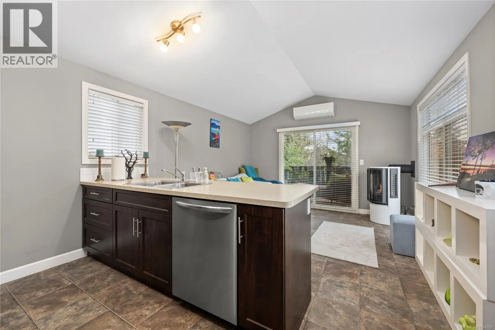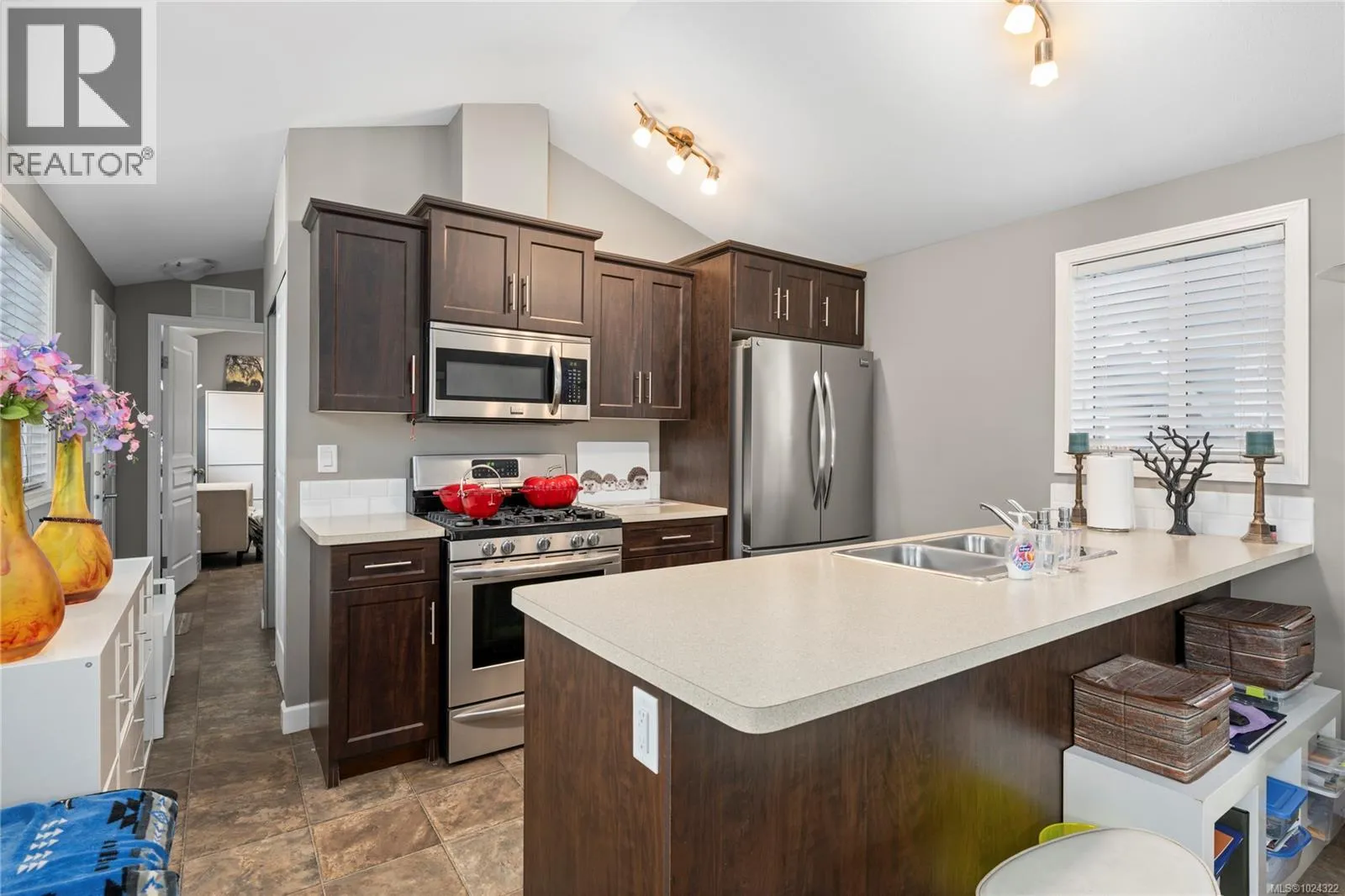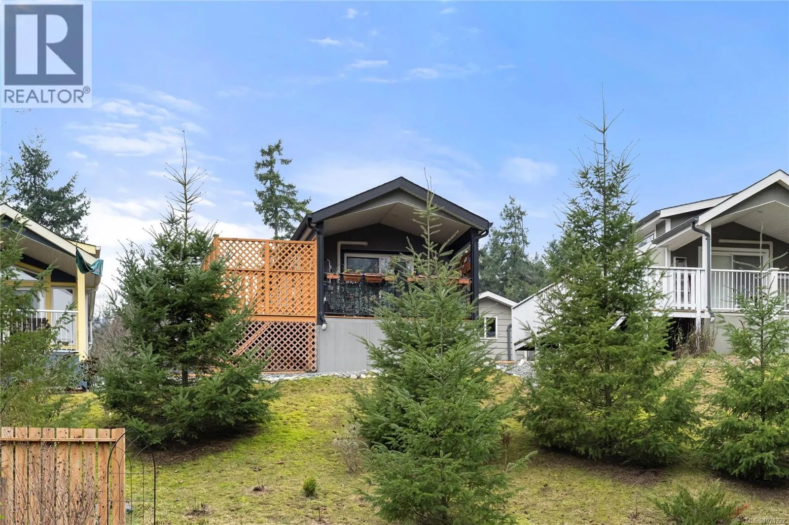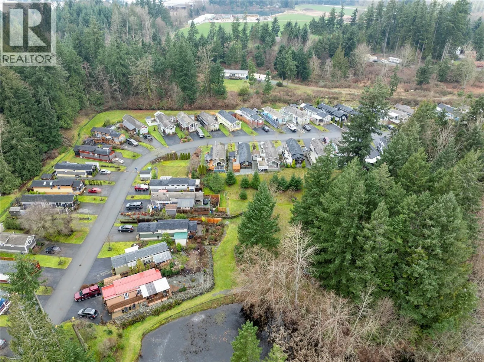 Best spot in Chemainus Gardens! This one bedroom, one bathroom park model manufactured home has everything you need in a wonderful location with a peaceful view. Great layout with an open kitchen, natural gas oven/stove, full appliance package including a washer & dryer, eating bar & slider to the deck. The cozy living area & open kitchen is on end end, and a spacious primary bedroom & 4-PC bathroom at the other end for privacy. Flat 2-car parking, a sun basked sundeck with a covered area to sit an enjoy the view of the forest, gardens & Water Lily Pond! Take advantage of the special upgrades, such as a natural gas fireplace, heat pump for efficient cooling & heating throughout the year, & new Hot Water Tank in 2025. There is a shed for your own secure storage. Conveniently located with a transit stop out front of the park, and only 2 km away from shopping, bakeries and amenities, which is a 5 min drive or 20-30 min walk. Transit is right outside. Enjoy a pet friendly community run by wonderful management. A must see before someone calls it home! Day before notice for showings is preferred please. Get in touch with your Realtor to arrange a viewing! (id:27476)