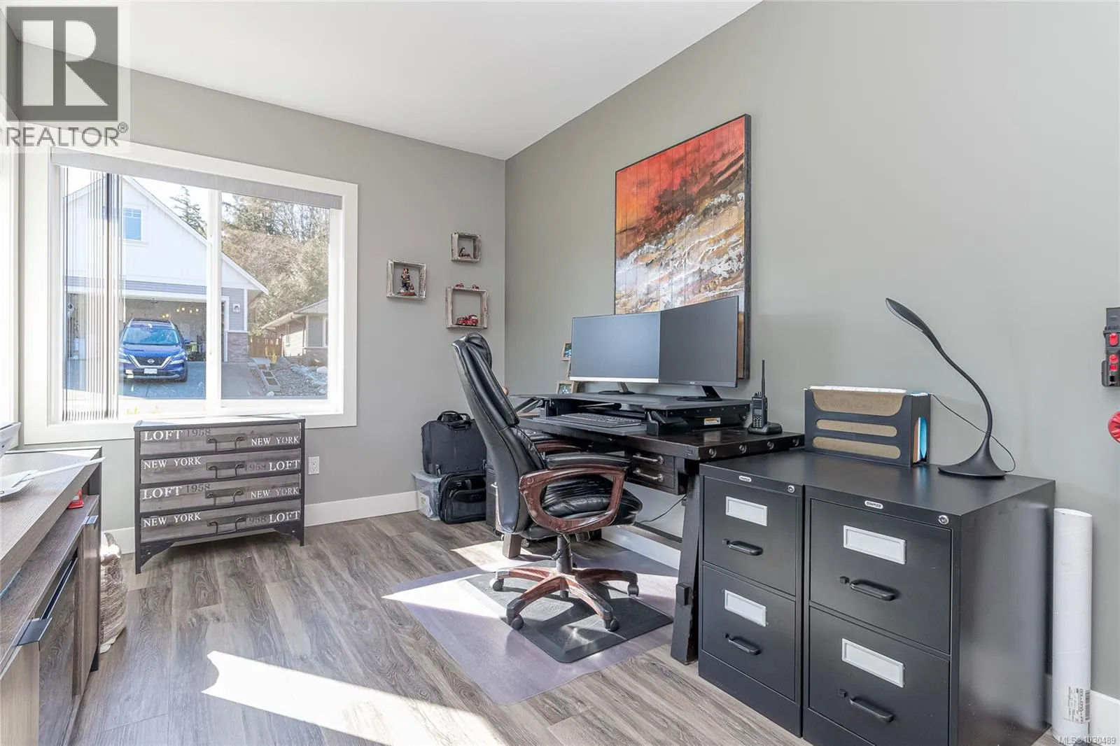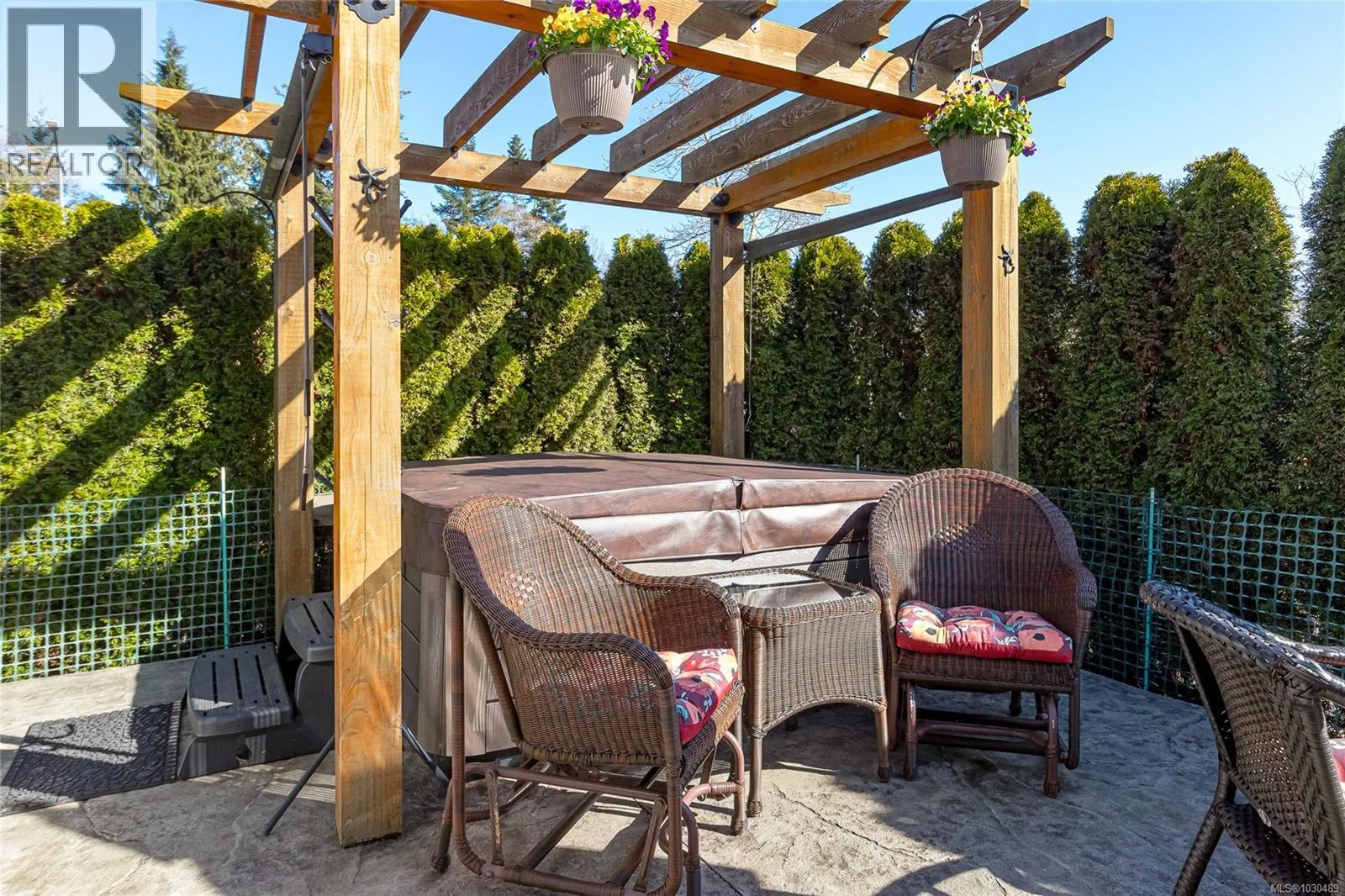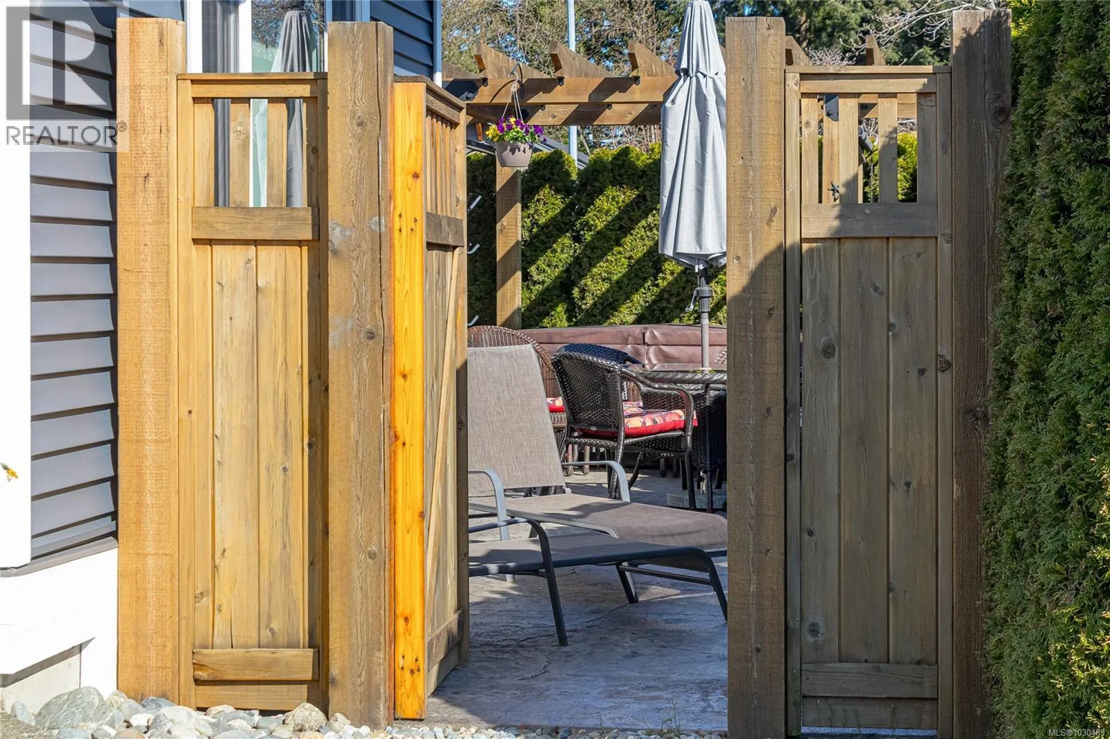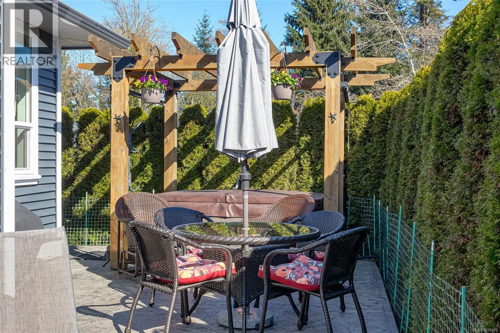 Welcome to Askew Creek Drive, just minutes from the adorable seaside town centre of Chemainus on central Vancouver Island. Discover effortless island living in this better-than-new, upgraded 2 bed + den, 2 bath low-maintenance rancher. Thoughtfully designed for an easy lock-and-leave lifestyle, this 2018-built home offers over 1,400 sq ft of accessible single-level living with a bright open-concept plan, cozy gas fireplace, central A/C, and double attached garage. Enjoy a private yard with natural gas BBQ hook-up, stamped concrete patio, hot tub, and cedar pergola. Upgrades include quartz counters throughout, a huge custom eat-at island with built-in storage, luxury vinyl plank flooring (no carpets), upgraded lighting, and a fully finished garage. Located in a quiet cul-de-sac in a well-run bare land strata with low $143/month fees (incl. management, garbage/recycle, and water), itâs an excellent option for off-island buyers or locals seeking a worry-free Vancouver Island home. (id:27476)