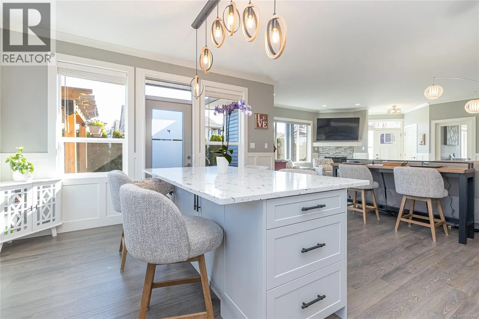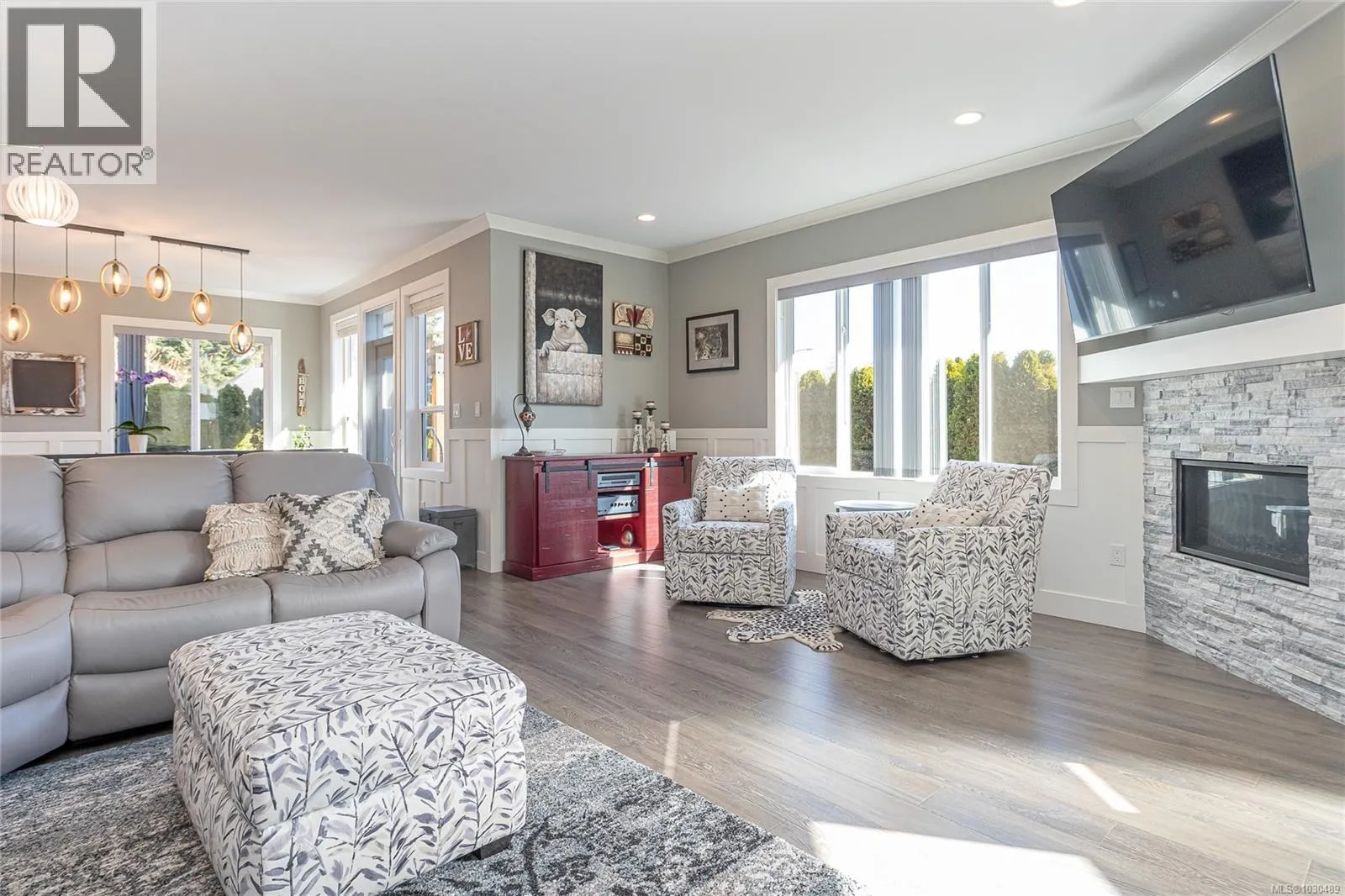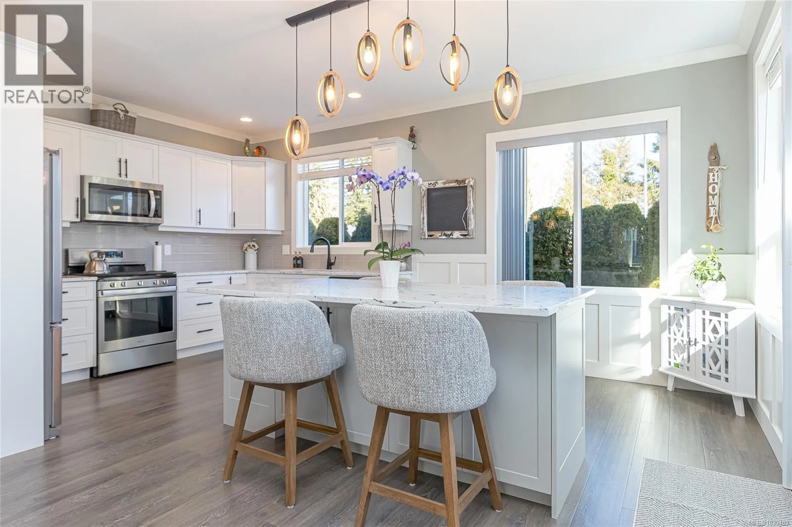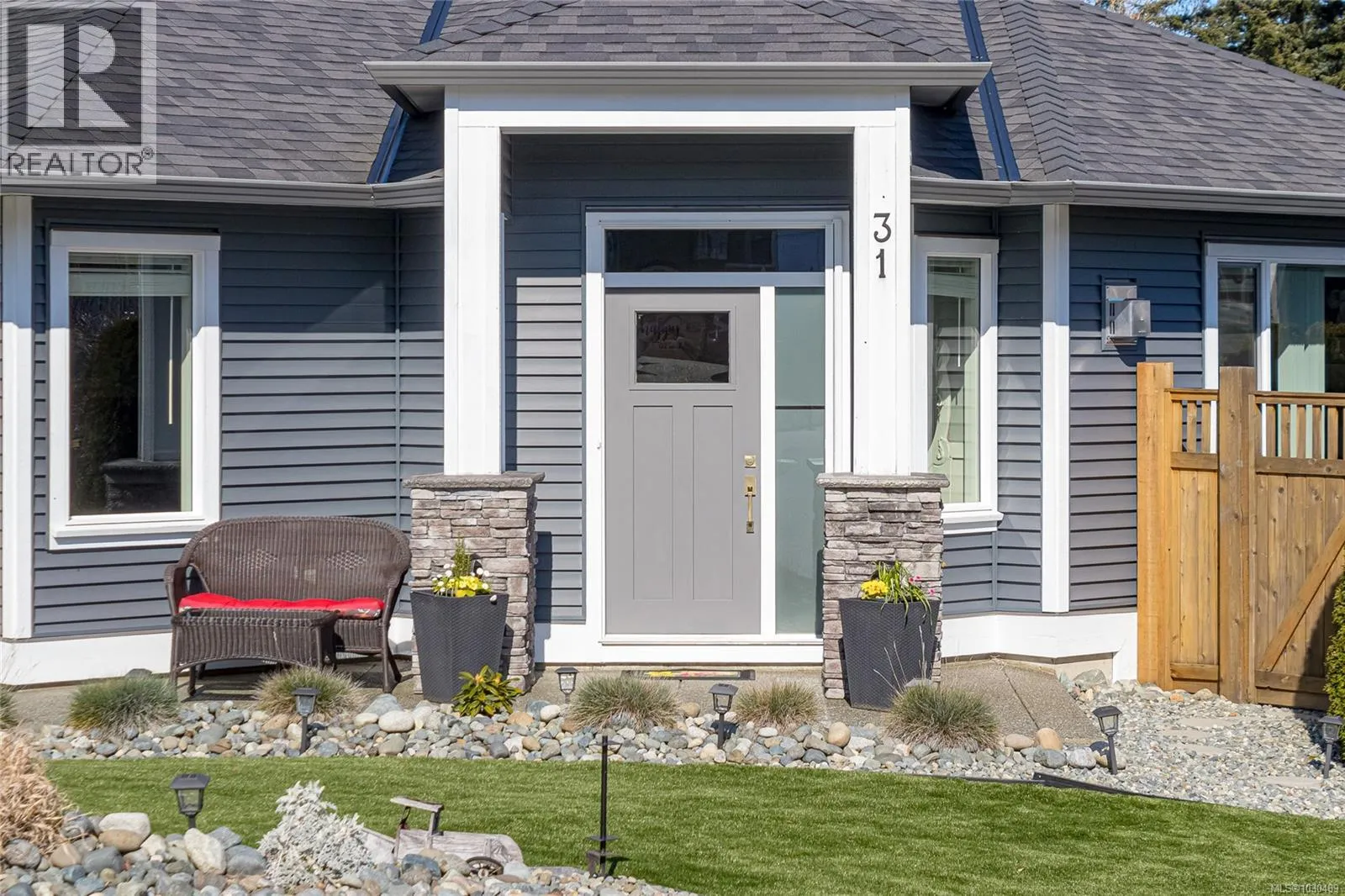 Welcome to Askew Creek Drive, just minutes from the adorable seaside town centre of Chemainus on central Vancouver Island. Discover effortless island living in this better-than-new, upgraded 2 bed + den, 2 bath low-maintenance rancher. Thoughtfully designed for an easy lock-and-leave lifestyle, this 2018-built home offers over 1,400 sq ft of accessible single-level living with a bright open-concept plan, cozy gas fireplace, central A/C, and double attached garage. Enjoy a private yard with natural gas BBQ hook-up, stamped concrete patio, hot tub, and cedar pergola. Upgrades include quartz counters throughout, a huge custom eat-at island with built-in storage, luxury vinyl plank flooring (no carpets), upgraded lighting, and a fully finished garage. Located in a quiet cul-de-sac in a well-run bare land strata with low $143/month fees (incl. management, garbage/recycle, and water), itâs an excellent option for off-island buyers or locals seeking a worry-free Vancouver Island home. (id:27476)