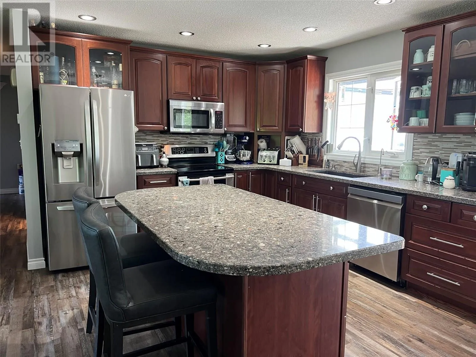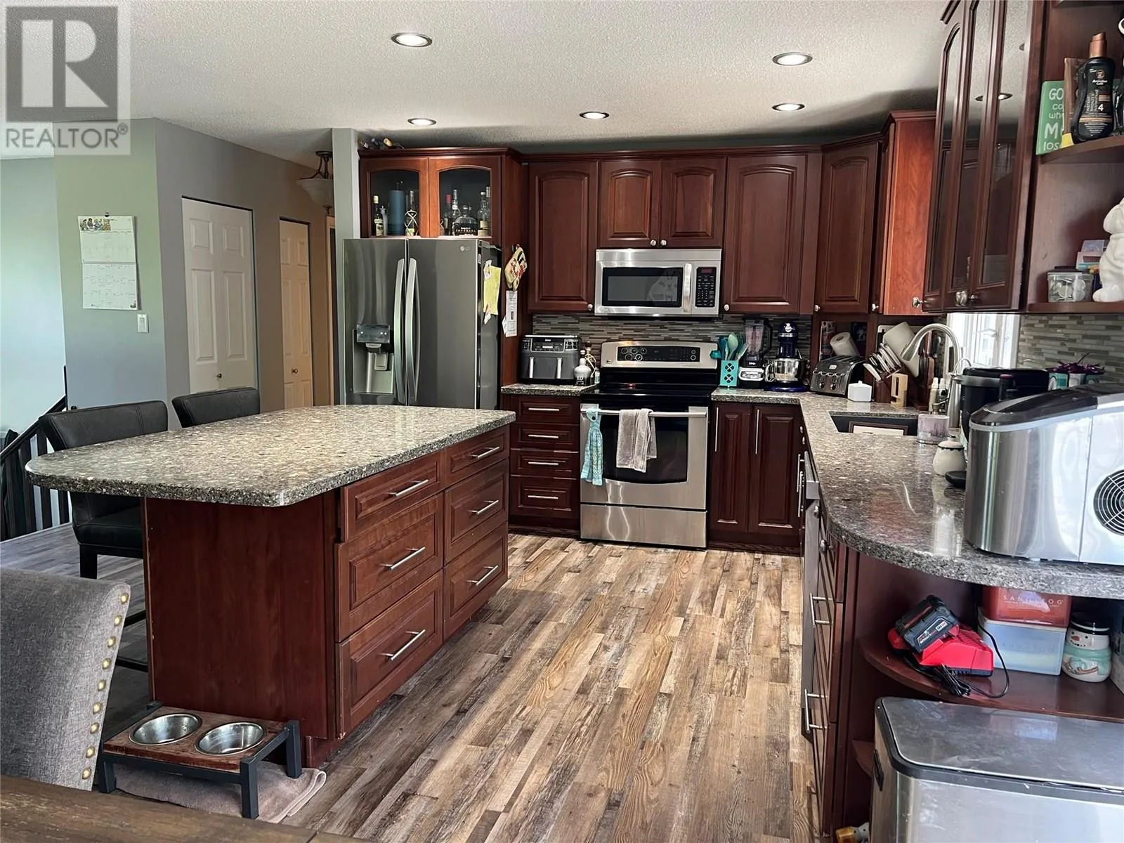 Beautifully updated & move-in ready with a fantastic back deck that was just completed! Enjoy your outdoor space as much as your indoor space. High end cabinetry with granite countertop is the focal point of this open concept home with a large island with seating on two sides. New fridge and dishwasher 2 years ago. Stonework gas fireplace sets the stage for the entertainment center in the living room. New flooring throughout the house and paint upstairs is barely a week old. All three bathrooms have been modernly updated. Master bedroom has a massive 60 sq/ft walk in closet, separate shower and powder room areas, room for a king size bed and french doors to access the back deck. Daylight basement has a massive rec room with a gas stove and lighting set up for a pool table on one end. Two more spacious bedrooms, a bathroom with heated floor and gorgeous shower, a second kitchen in the laundry area and a separate entrance from the garage and extra storage complete the basement. Fully fenced backyard is beautifully landscaped with a huge deck that is presently being redone, raised garden beds with strawberries, raspberries and vegetables, and a beautiful paving stone fire pit area. On a quiet street close to schools, parks, library and rec centre. Owners will leave the fridge and freezer in the basement and basement furniture is negotiable. Call to view or for a full feature sheet. (id:27476)