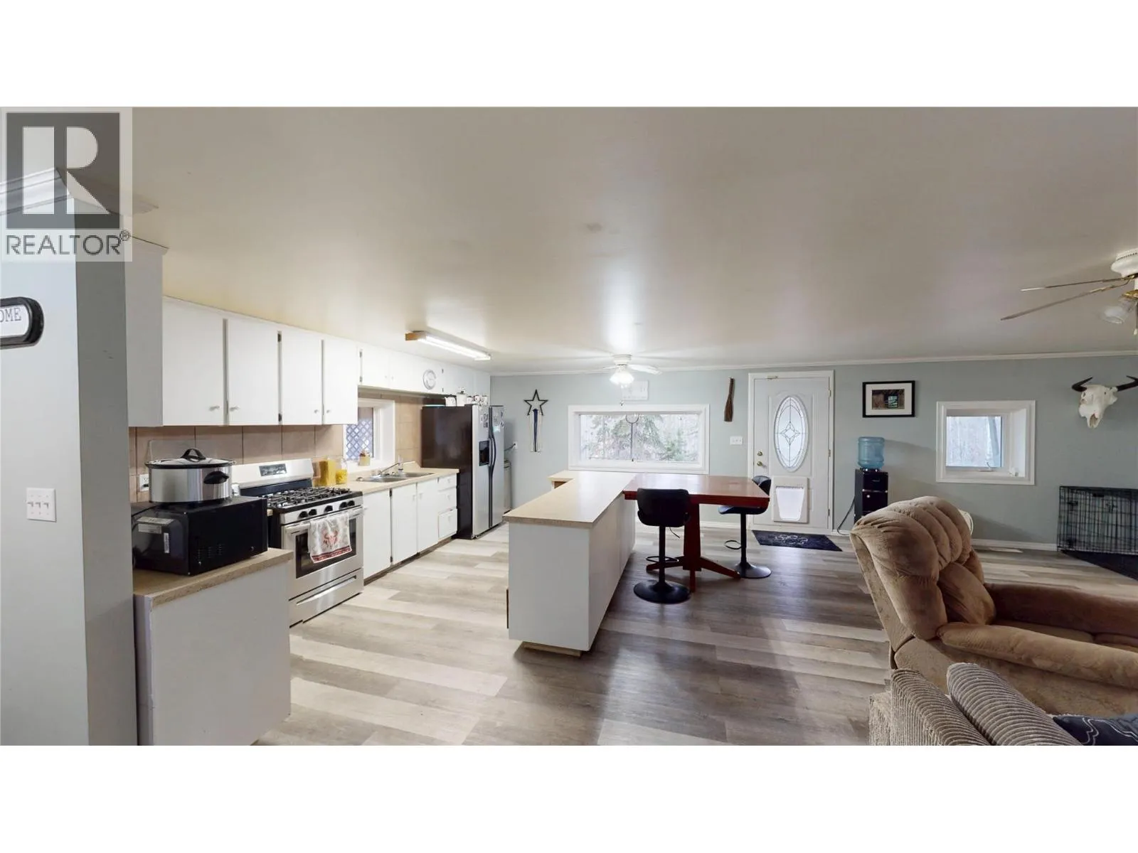 Opportunities Abound with this fantastic acreage! Beautifully updated and modern 1 bedroom home with an open floor plan, large kitchen with Island, huge living room, and spacious design throughout. With the 2X6 construction it's proven to be very well insulated and super affordable to heat - with a gas stove for added comfort. The garage was converted to a partial garage and living space with a kitchen, 3 pce bath, bedroom at the back. Use this for added income to pay your equity, or tear it out and convert the garage back to a full size shop/garage, or live in it and rent the main house. Additionally there is a 1 bdrm cabin for extra guests. What a great property to call home if you have livestock, equipment and toys - there's also a huge 40X80 steel Quonset for covered storage and a drive through driveway for ease with trailers, vehicles, trucks, etc. This property was setup with a working mindset! Just outside of city limits, but private with a mix of trees in a nice neighborhood. It would also be a perfect Hunter's Cabin or place to call home when you're taking advantage of our abundant wildlife during hunting season - located in the hub of the Peace with SO much to offer recreationally, this would be a great choice for temporary living as well. And there's Full RV Hookup beside the shop! The sky is truly the limit with the options this property can offer! (id:27476)
