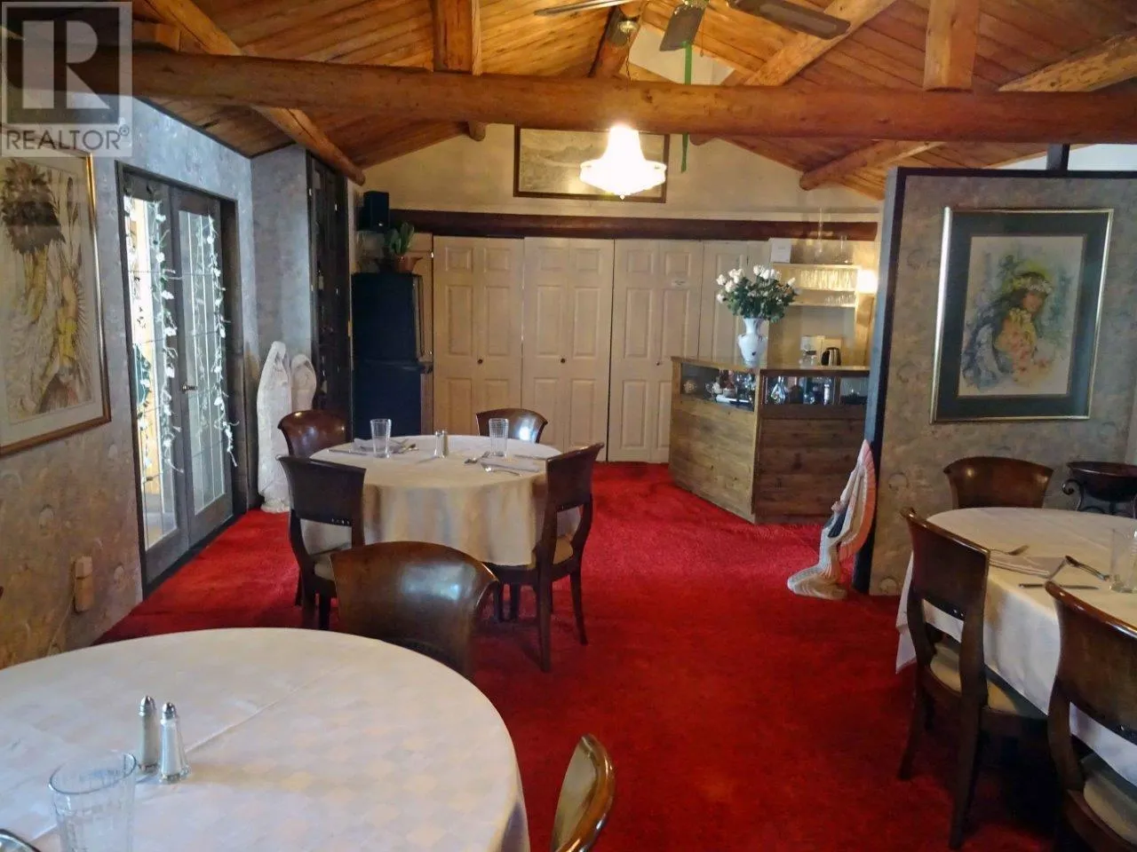 Eagles Nest Resort presents a rare opportunity to acquire a turnkey hospitality business set on nearly 10 acres of lakefront property. With over 1,100 ft of shoreline on Anahim Lake + 800 feet along protected marshland, this commercially zoned property includes 7 guest rooms, 5 private cabins (accommodating 25-30 guests) + a licensed dining facility. Resort has a stable, recession-resistant customer base, drawing both tourists & commercial clientele. Accommodations range from rustic lakeside cabins to comfortable suites with modern amenities. The dining experience is a major draw, with meals served in a professionally equipped kitchen & offered across 2 beautifully styled dining rooms or a lakeside deck with panoramic views. Resort is ideally suited for an owner-operator with hospitality & restaurant experience. Additional features include a meeting room for corporate retreats, owner's suite with spectacular lake views, welcoming foyer with office, check-in desk, & boutique, dock, gardens & much more. (id:27476)