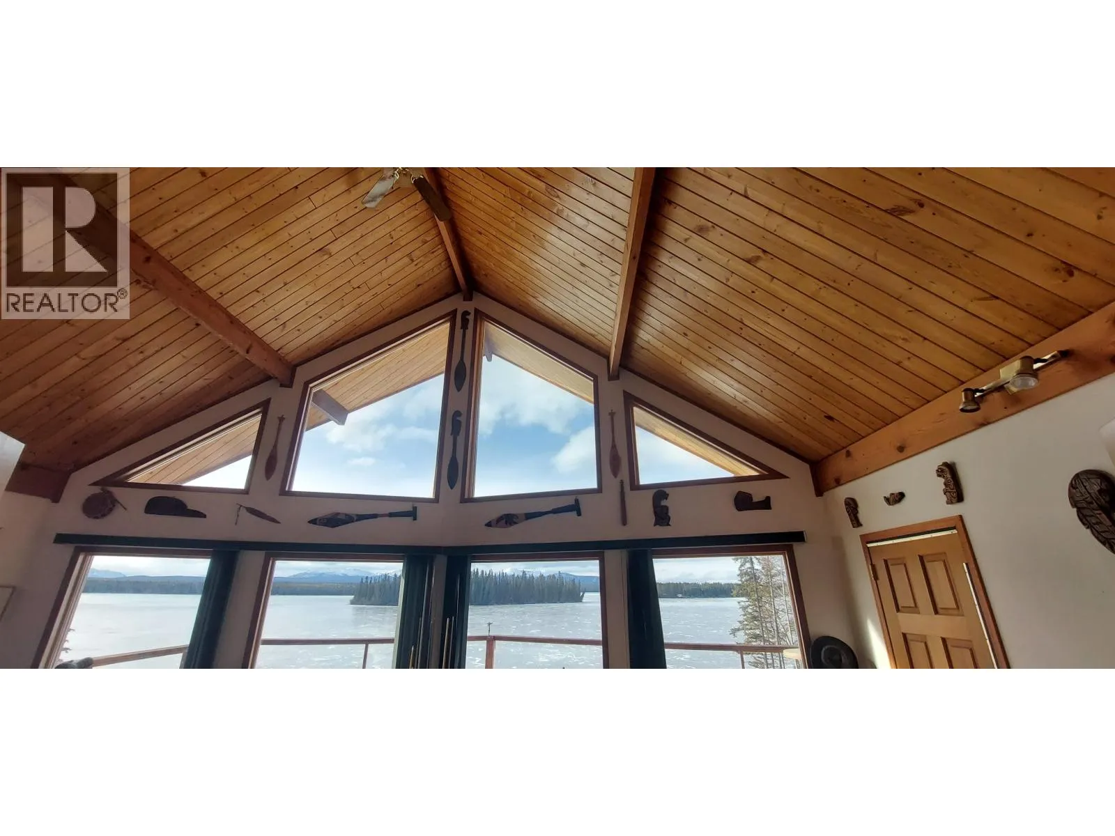 Experience luxury rural living at its finest in this stunning 2-bedroom, 2-bathroom retreat overlooking Nimpo Lake and the majestic coastal mountains. The soaring vaulted ceiling with expansive windows floods the home with natural light and frames breathtaking panoramic views. The master bedroom features unique windows that open to the living area below, creating an airy loft-like ambiance while capturing the full spectacle of lake and mountain vistas. Pamper yourself in the ensuite's generous soaker tub after a day of adventure. The well-appointed kitchen also showcases those remarkable views, making meal preparation a pleasure. Enjoy fuss-free electric heat complemented by a cozy woodstove for guaranteed warmth and ambiance. Year-round recreation awaitsâboating, fishing, swimming, skating, snowmachining, and unforgettable sunsets. Located on leased land with 25 years remaining on a 30-year lease, this property offers an exceptional lifestyle opportunity. (id:27476)