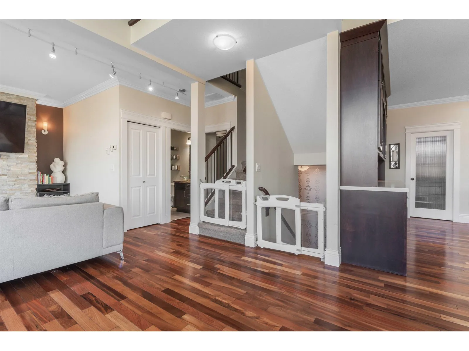 BEAUTIFUL 2553 sq ft 1/2 duplex style townhome w/ RIVER VIEWS in popular Retriever Ridge! This END UNIT is kept in 10/10 condition, this property is sure to impress. UPGRADES such as A/C, ENGINEERED HARDWOOD in main living area & kitchen, modern light fixtures, EXTENDED rear patio, b.i. vac, security system, & designer PAINT. Relax in your great room by the rock fireplace, or head out onto your COVERED PATIO & enjoy the river views. Spacious kitchen w/ large eating bar, undercab lighting, stainless steel appliances, walk in pantry, and GRANITE counters. Master on the main floor w/ 4 piece ensuite & walk in closet. Loft area above w/ private balcony facing river. OVERSIZED double garage (fits a FULL SIZED TRUCK) w/ bonus storage room. VERY well ran strata "â CALL TODAY! (id:27476)