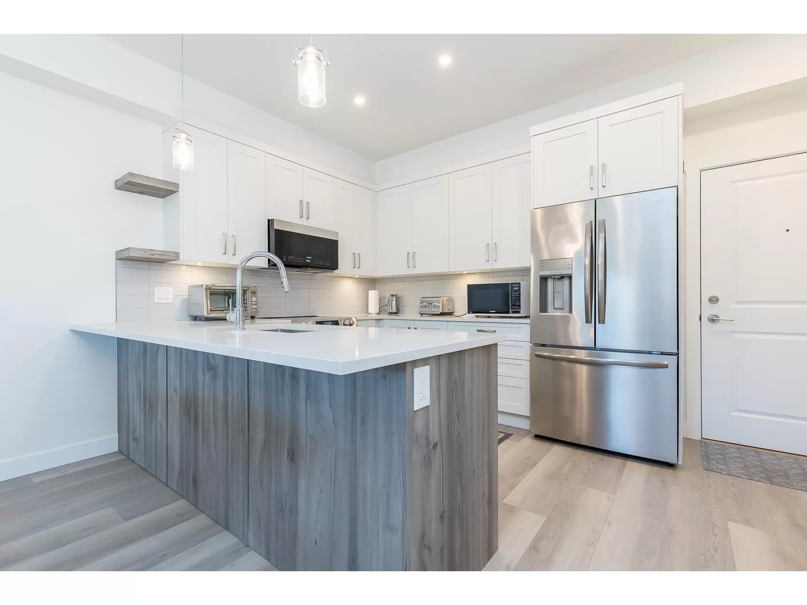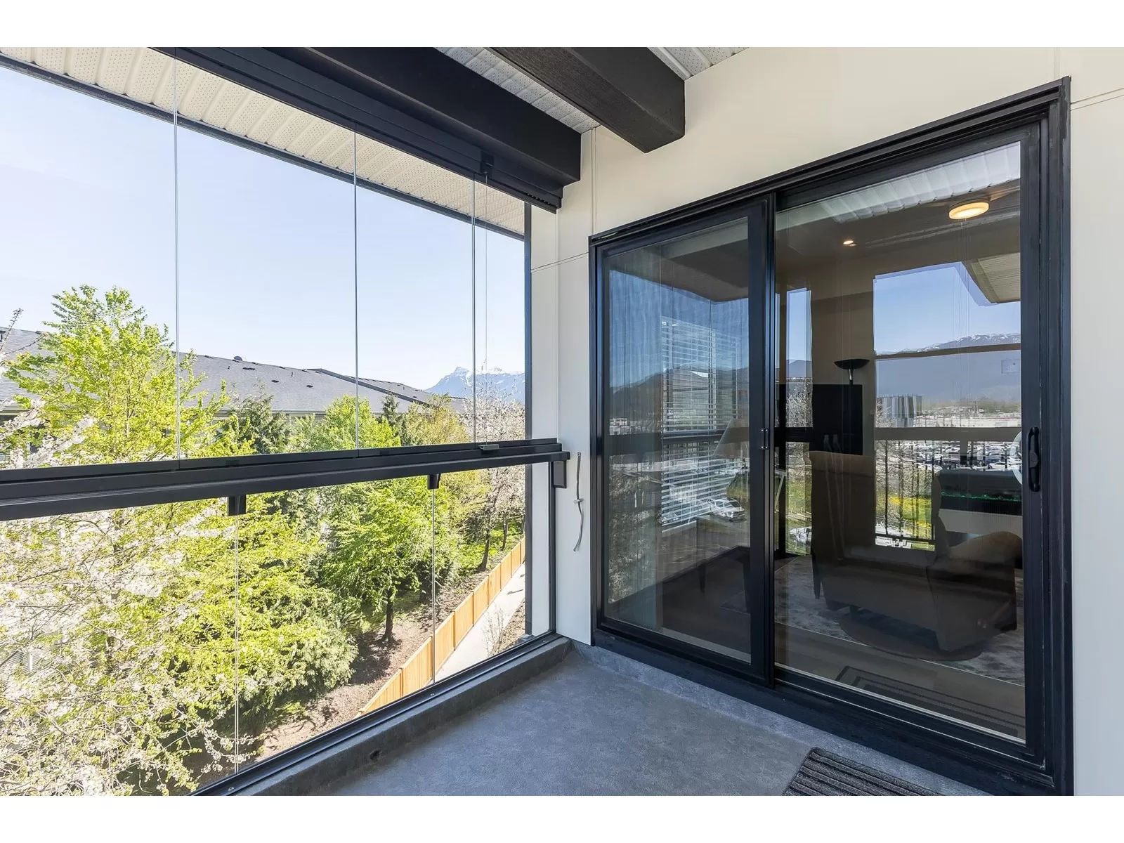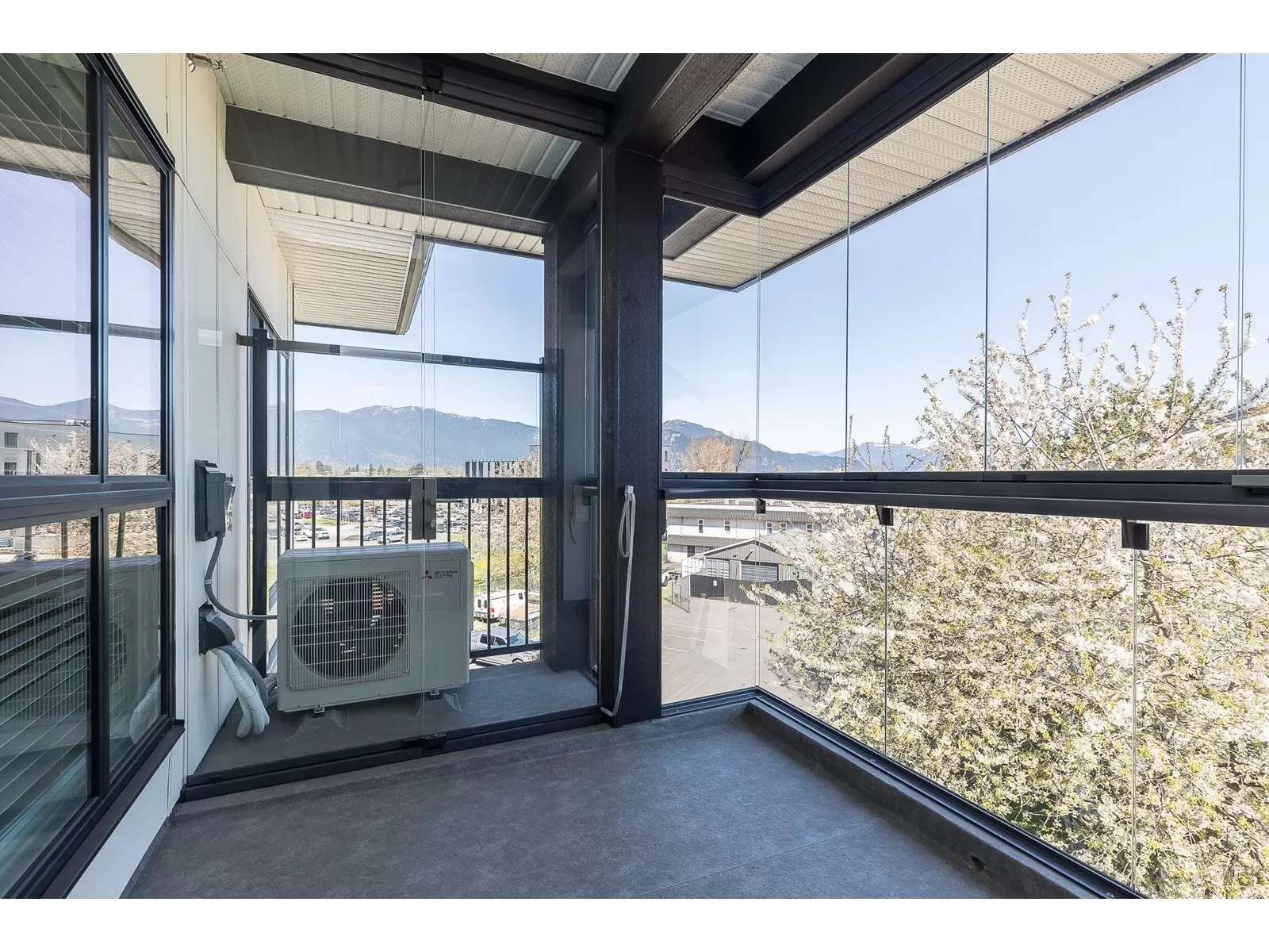 The popular Mountainview Lane complex. Vacant. No GST. With easy access to Hwy #1 and set back off Young road for a quiet and safe setting. This top floor corner suite has plenty of natural light and views of many surrounding mountains. Quartz counter tops, stainless appliances and vinyl plank flooring. At only 11 months old this unit is like new. Enjoy the spacious deck enclosures that allow for year round enjoyment. Larger closet in the master bedroom with an ensuite that contains double sinks and a walk in shower. Air conditioning/heat pump for added comfort. No age restriction and a building and suite to be proud of. Move right in. (id:27476)