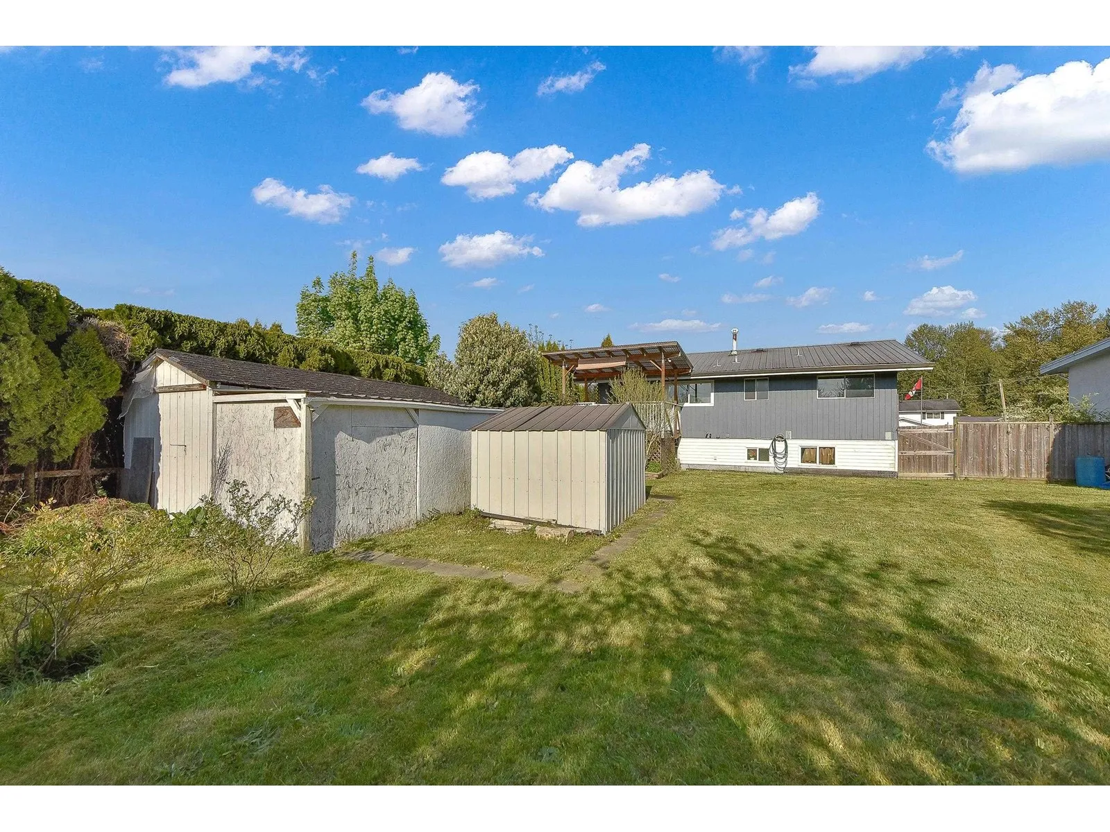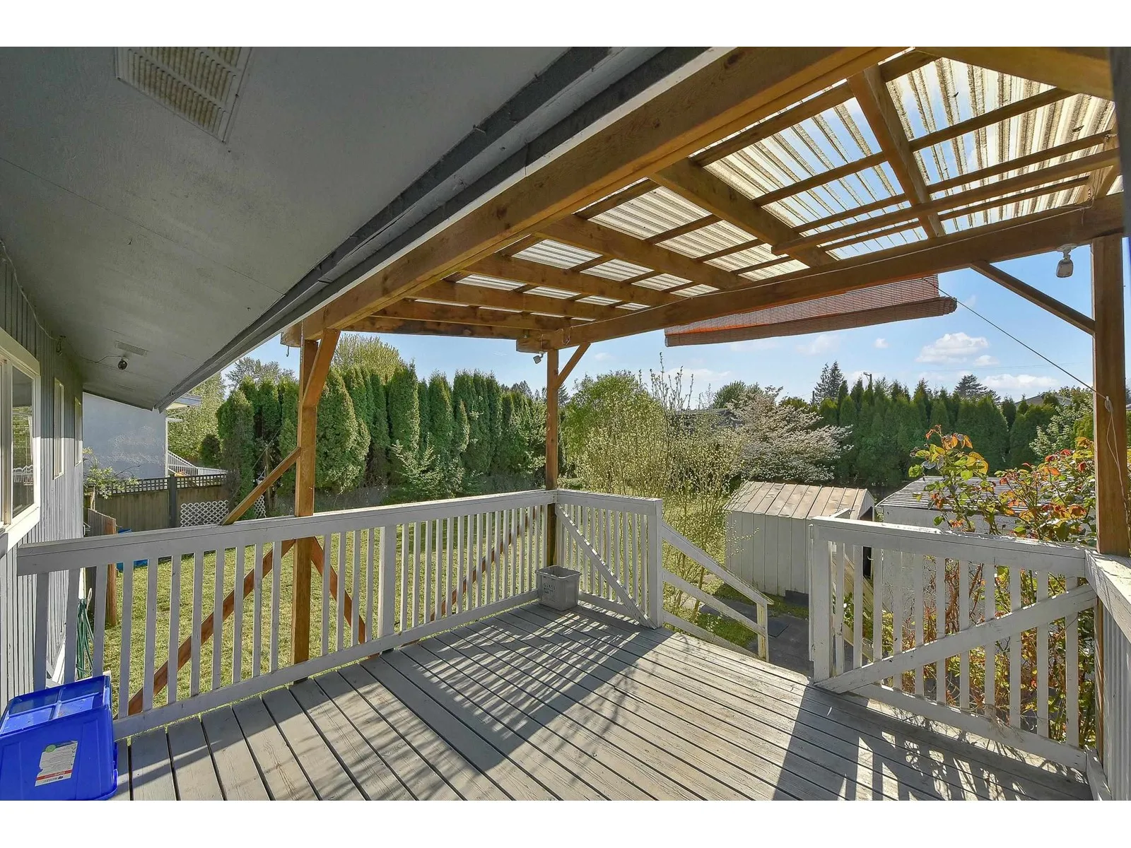 Welcome to this Beautiful home with a beautiful view of the mountains perfectly situated on a spacious 9148 sqft lot in a most desirable neighbourhood of Chilliwack. This nicely maintained 3-bedroom, 2-bath home offers a stylish tile backsplash in the kitchen and rich faux hardwood laminate flooring throughout the upper level. The fully finished basement adds great flexibility, featuring a second kitchen, a full bathroom, and a massive recr room and a Bedroom can be used as a mortgage helper. Step outside to enjoy a large, private backyard complete with a sundeck, perfect for family fun or hosting friends and there's even a bonus of 3 storage sheds in the backyard. Conveniently located within walking distance to parks and an elementary school. Don't miss your chance to make it yours. (id:27476)