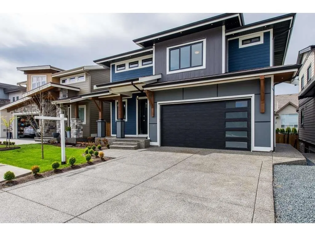 WOW! ELEGANT HOME IN HIGGINSON ESTATES BY KINKORA GOLF COURSE! This impressive 5 bedroom 4 bathroom 2-storey basement home with 2-bedroom legal suite, provides many options for living. This grand kitchen and island is open plan to dining and great rooms with over-height ceiling and access to deck and gas BBQ making it an ideal space for entertaining. Soothing color scheme provides bright and relaxing environments throughout. Opulent primary suite with walk-in closet, 5 piece en-suite and Jack-Jill en-suite for the kid's bedrooms. The basement has a spacious 2-bedroom Legal Suite with stainless appliance package, separate laundry and private covered patio, with proven Air BnB income or convert to your preferred use! Central location for UFV, river walks, pubs, schools, shopping, commuting and more. Have your realtor book a showing before it's gone! (id:27476)