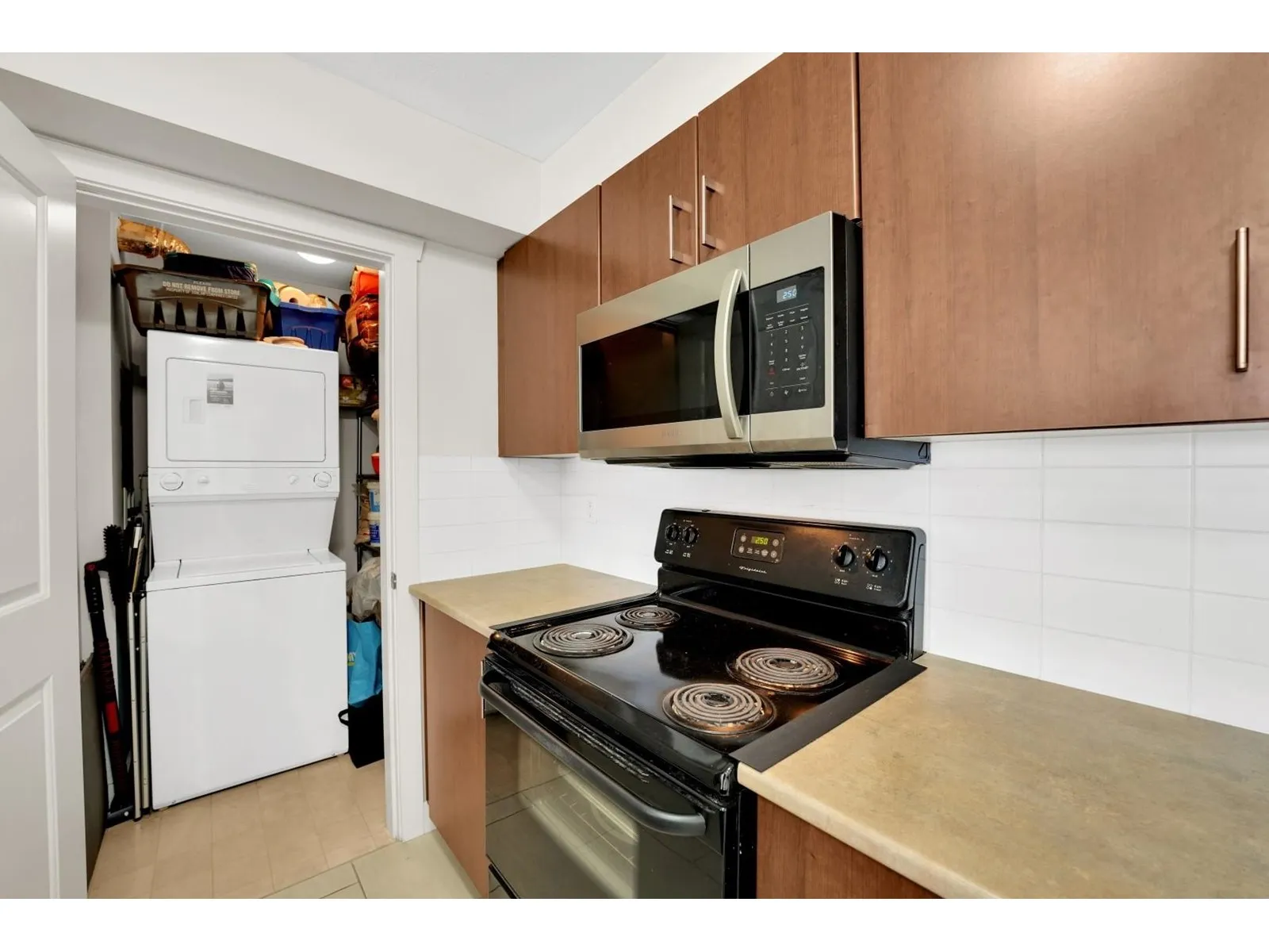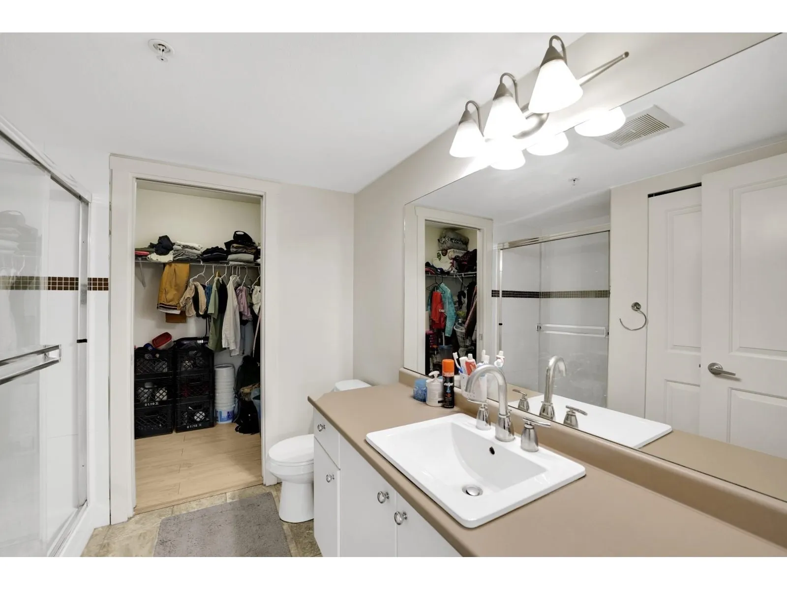 Welcome to your spacious 2-bedroom apartment on the 3rd floor. This home features 2 full bathrooms, a walk-in closet, and in-unit laundry. With laminate flooring and paint done in 2022, this apartment is centrally located with easy access to malls, restaurants, public transit, and the freeway. The bright, south-facing unit offers 852 square feet of living space with an open-concept kitchen and living area, along with 2 secure underground parking spots. (id:27476)