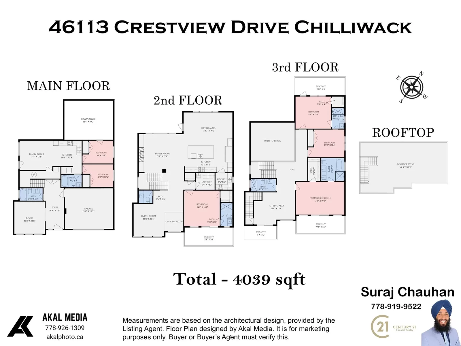 This beautiful custom built home boasts 6 bedrooms 7 bathrooms with a rooftop balcony with stunning panoramic views of Mountain Ranges, Cultus Lake, and the city of Chilliwack! The mix of outdoor space to indoor space offers the best of both worlds from beautiful open ceiling family room beside a large kitchen with a bonus spice kitchen and large dining area to the multiple covered and uncovered outdoor sitting areas for all seasons of the year! Great rental potential! Lower floor contains a separate entry 2 bedroom legal suite with laundry. This luxury home fills the needs of all families, Call and book a private viewing today! (id:27476)