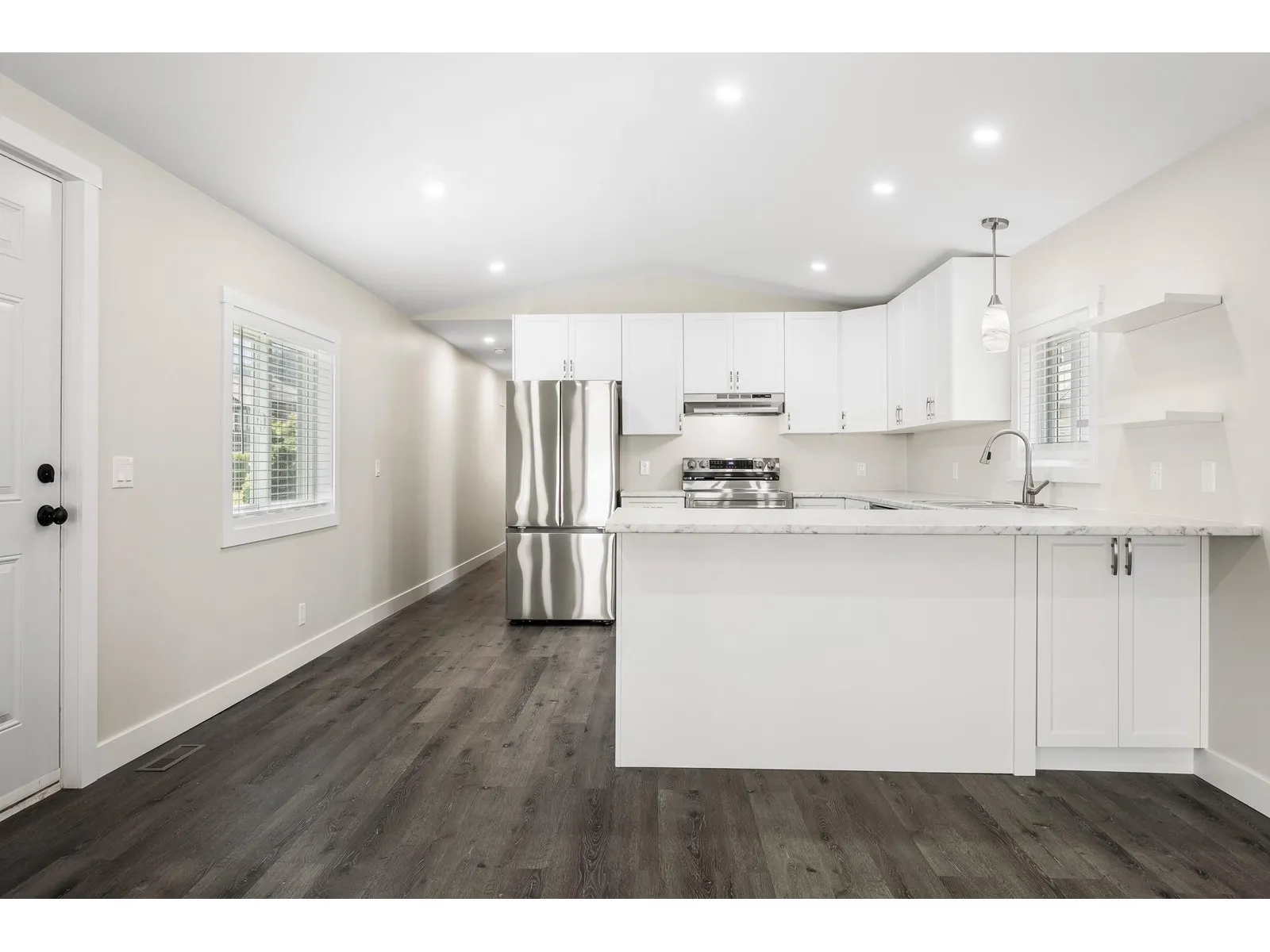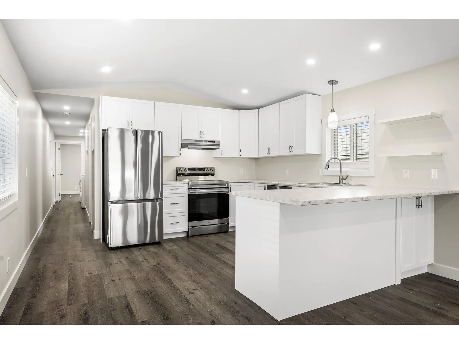 Welcome to Mountainview Park! This beautifully renovated 2-bedroom, 1-bathroom manufactured home is located in a desirable, family and pet-friendly community in Sardis! Step inside to discover a bright, open layout featuring new vinyl plank flooring throughout. The updated kitchen offers stainless steel appliances, ample cabinetry, and a clean, modern feel. Both bedrooms are generously sized, and the full bathroom is fresh and functional. Whether you're a first-time buyer, downsizer, or simply seeking an affordable, move-in ready home in a great location, this property is a must-see! * PREC - Personal Real Estate Corporation (id:27476)