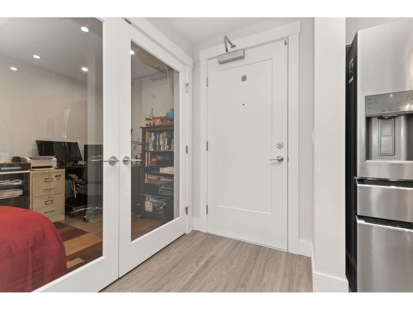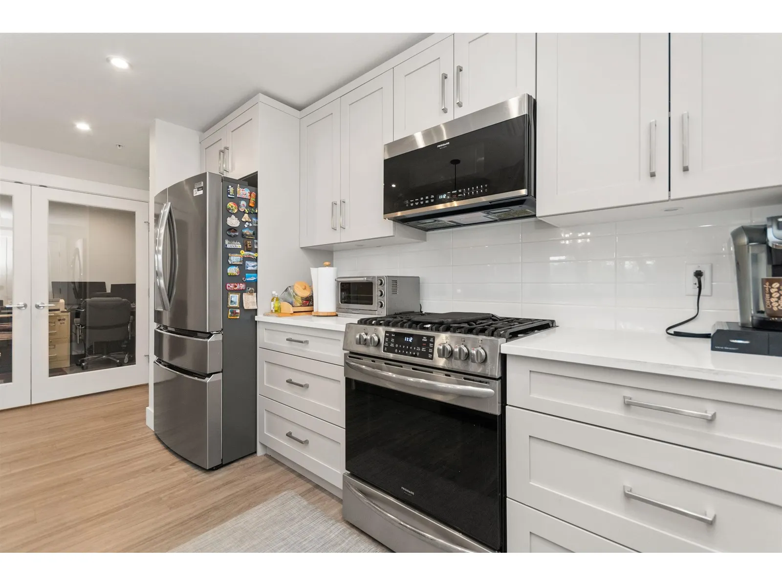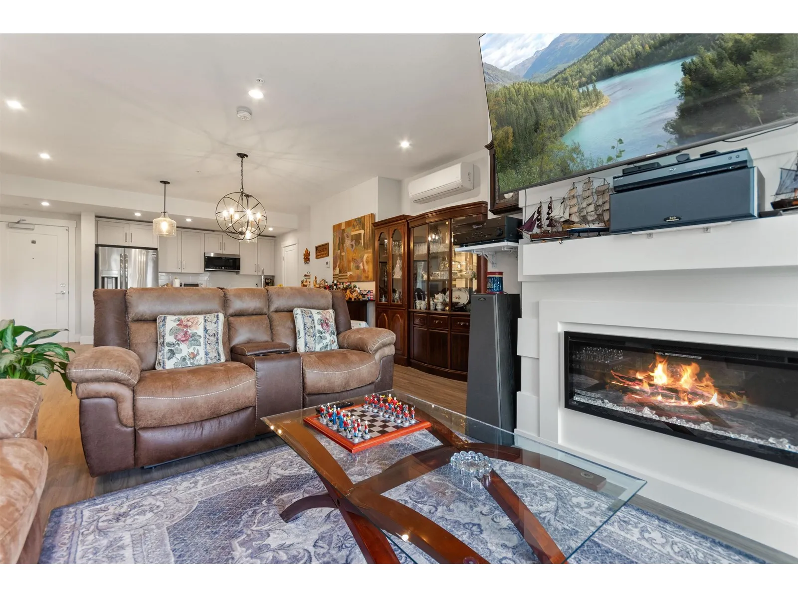 Just like new and no GST! Welcome to luxury adult living (45+) in SKYNEST 2. This immaculate 2 bedroom, 2 bathroom & den features 9 foot ceilings, a bright open floor plan with spacious kitchen and room to entertain. This unit was fully upgraded with wide plank vinyl flooring, Silestone quartz counter tops with soft close drawers, elegant lighting, quality white cabinetry, air condtioning, modern electric fireplace, and high end appliance package with a gas range. Enjoy your morning coffee on the oversized deck complete with BBQ gas hook up. This pet friendly complex has many amenities including guest suites, a clubhouse with roof top patio, fire tables and outdoor kitche, parking stall, and storage locker. Conveniently located within walking distance to banks, shopping, and recreation. (id:27476)
