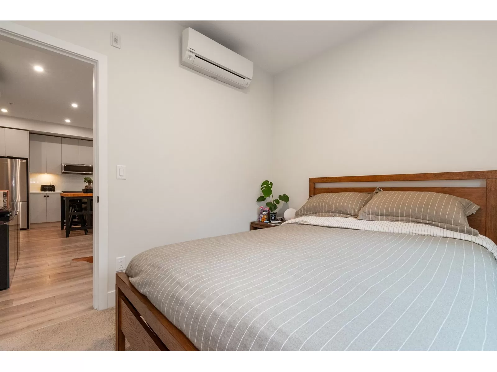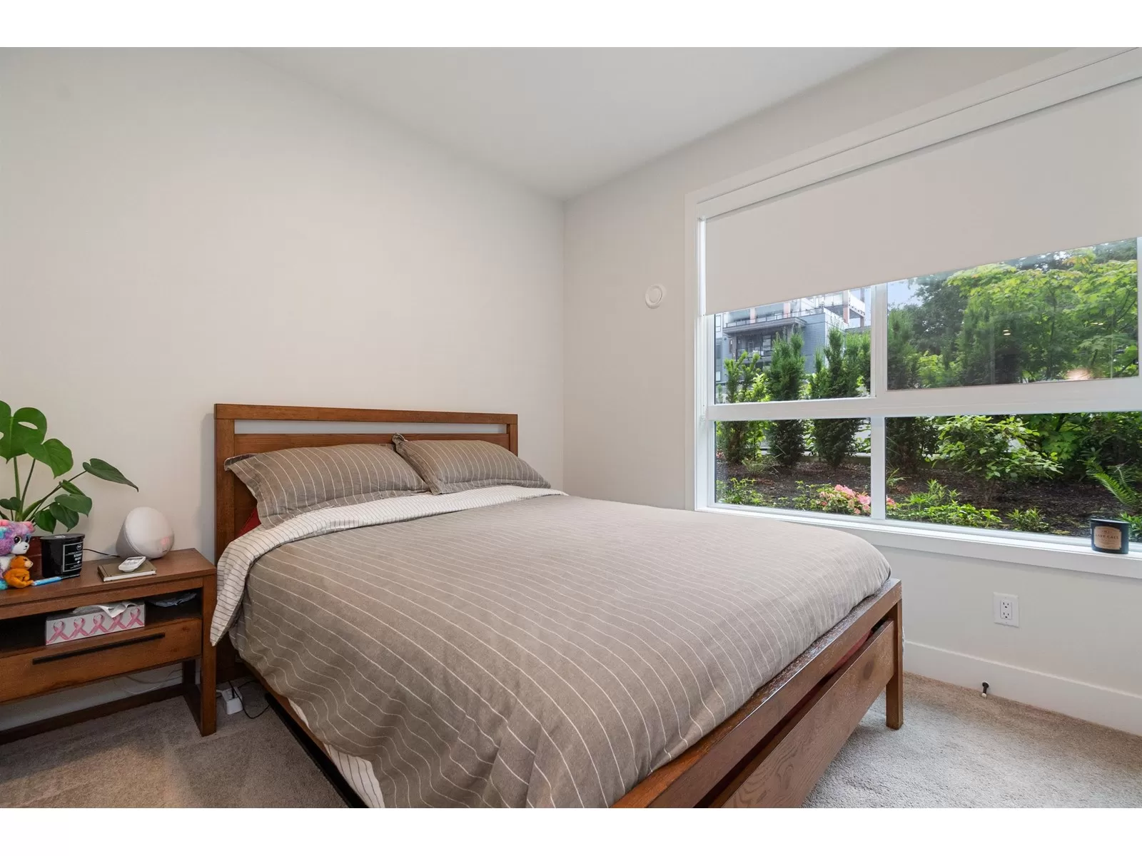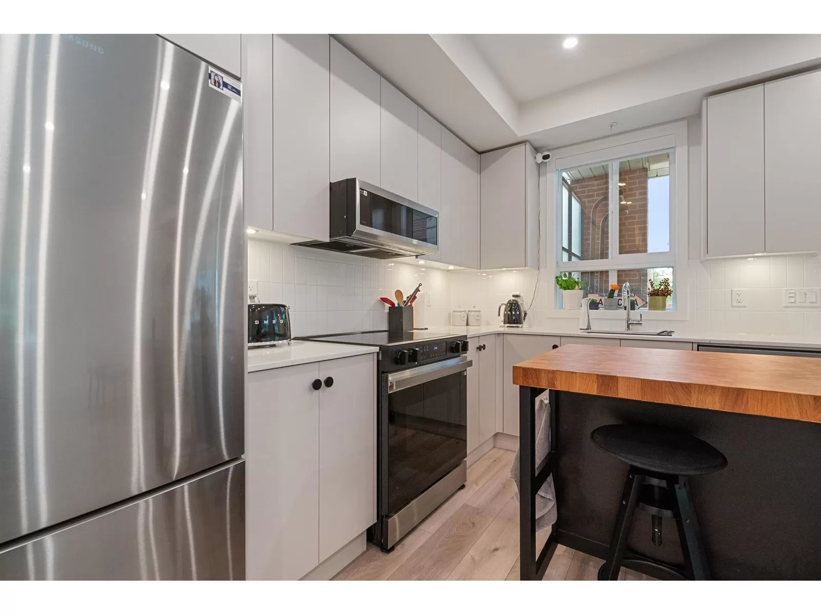 Welcome to the York in Garrison! This spacious, one-year-old, 717 sqft, ground floor 2-bedroom, 1-bath corner unit condo offers modern living in a prime location. As a former show home, it features designer finishes, upgraded fixtures, and a bright, open layout. Enjoy a sleek kitchen with stainless steel appliances, generous bedrooms, in-suite laundry, and easy ground-floor access. Step outside to your own private patio! Located close to shopping, dining, transit, and parks"-this move-in-ready home blends comfort, style, and convenience. Comes with 2 parking stalls & 1 storage locker. (id:27476)