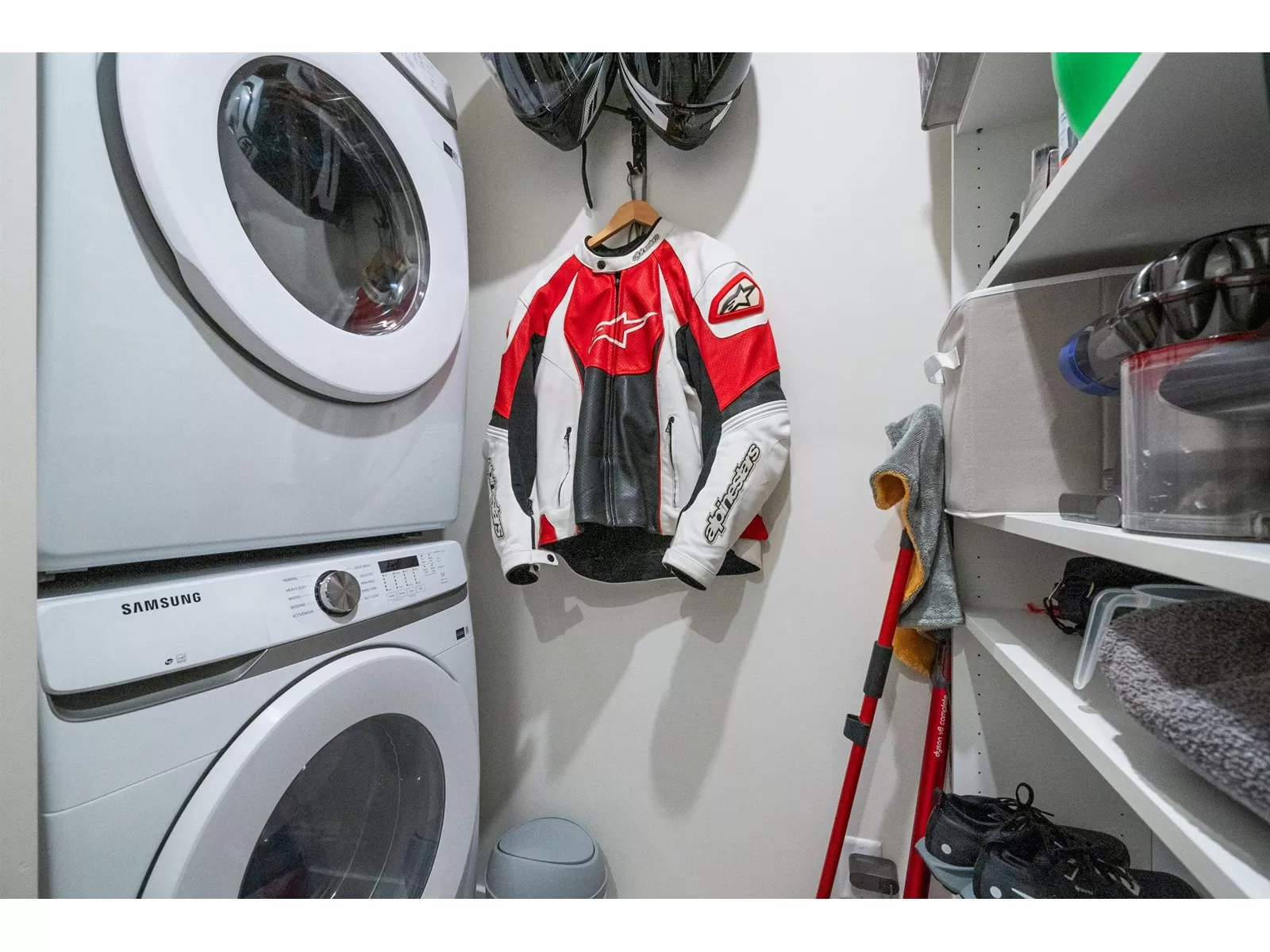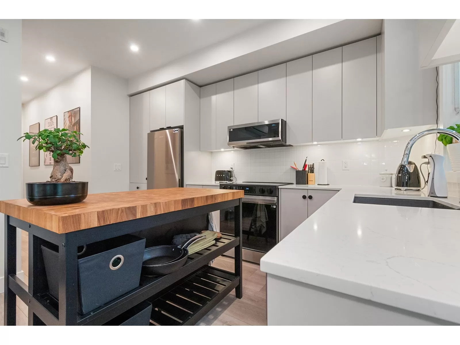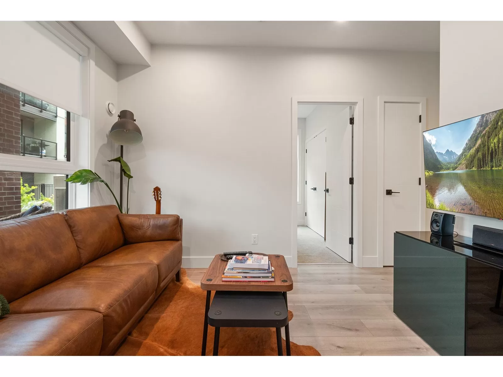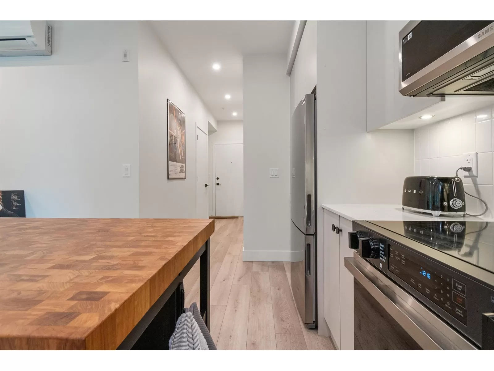 Welcome to the York in Garrison! This spacious, one-year-old, 717 sqft, ground floor 2-bedroom, 1-bath corner unit condo offers modern living in a prime location. As a former show home, it features designer finishes, upgraded fixtures, and a bright, open layout. Enjoy a sleek kitchen with stainless steel appliances, generous bedrooms, in-suite laundry, and easy ground-floor access. Step outside to your own private patio! Located close to shopping, dining, transit, and parks"-this move-in-ready home blends comfort, style, and convenience. Comes with 2 parking stalls & 1 storage locker. (id:27476)