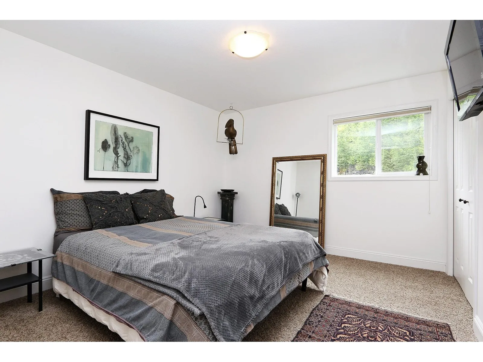 This beautiful home is nestled into it's private setting at the top of a private CDS in a very desirable neighborhood of East Chilliwack. Close to Unity Christian & Rosedale Trad. schools, amidst biking and hiking trails, and golf nearby. Offering a fabulous open plan concept with large kitchen and great room on the main floor, settle into the "drawing room" privacy for a quiet evening read or nightcap. Upstairs the 3 large bedrooms include a romantic primary with spa-like ensuite. The lower level features a massive recreation room with full bathroom and 2 separate entries (think mortgage helper or office). The flex room is currently used as an active Artist Studio but could be the 4th bedroom, and the laundry/utility room provides extra storage. This home exudes a peaceful calm you'll love to call home. (id:27476)