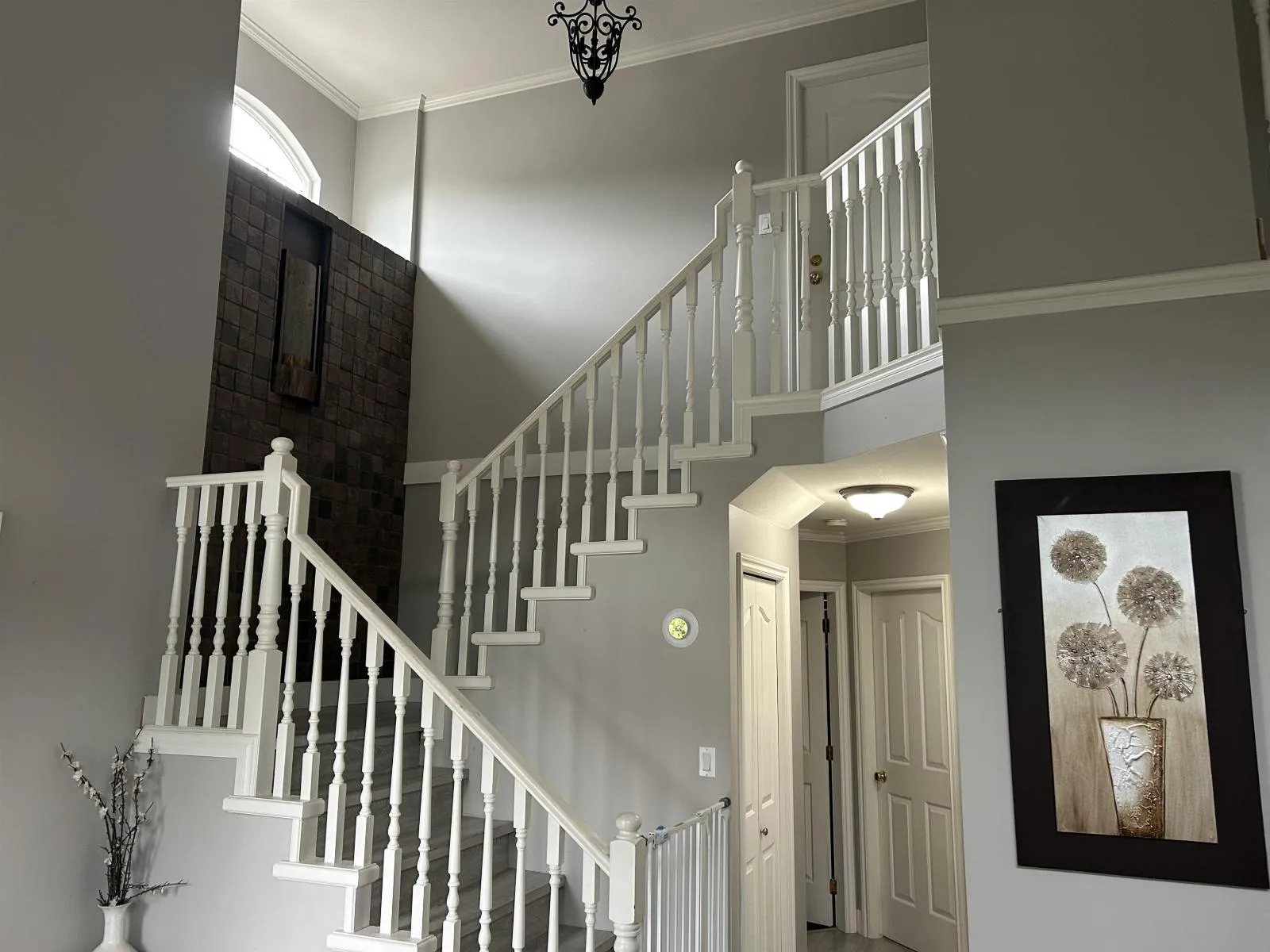 This spacious 2-storey corner-lot family home is nestled in a quiet, sought-after neighborhood"-just steps from elementary school, parks, and scenic hiking trails. Enjoy the convenience of being within walking distance to a shopping plaza, close to all amenities, easy freeway access. This home features a bright and generous kitchen with ample cabinetry and an eating area that opens into a cozy family room & gas fireplace, 3 beds and 2.5 baths. You'll love the formal dining room and the great room's soaring ceilings, which let in plenty of natural light. A unique stone feature wall with a built-in water fountain leads you upstairs to the spacious primary bedroom with ensuite, plus two additional bedrooms and a main bath. The main floor also includes a powder room, laundry & crown moulding. * PREC - Personal Real Estate Corporation (id:27476)