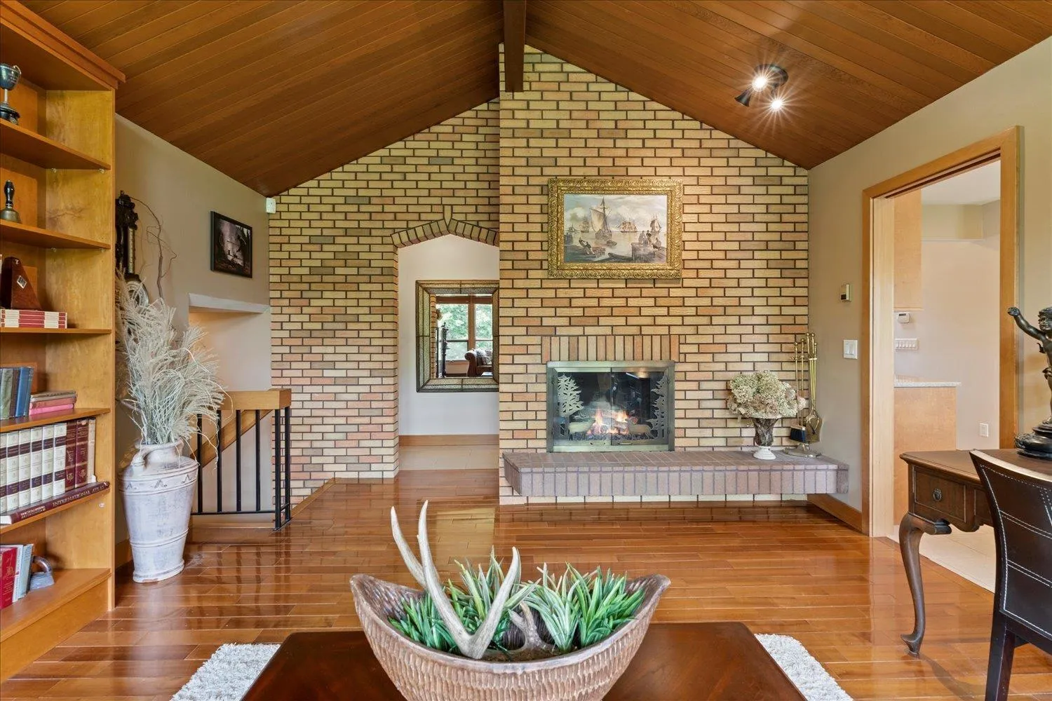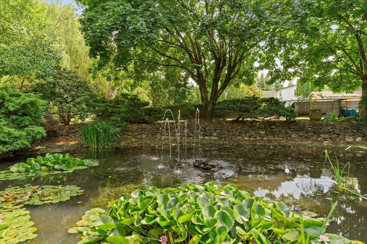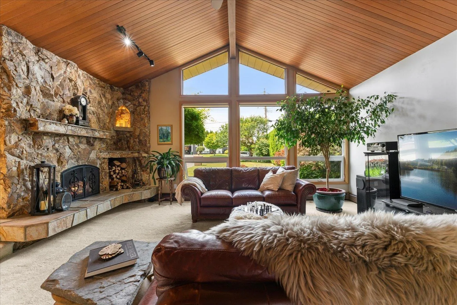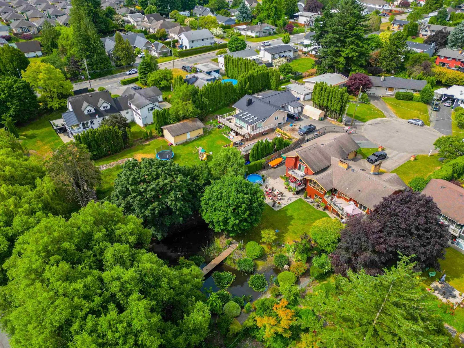 A rare gem! This custom mid-century modern home stands out with its distinctive character and high-quality finishes. From the moment you enter, you'll be greeted by a stunning rock wall water feature, vaulted cedar ceilings, and beautiful views of the meticulously landscaped garden. A truly unique property that blends timeless design with natural elegance. As you explore this spacious 4 level home, you'll discover rich teak hardwood floors, a custom kitchen, heated tile flooring, and a primary ensuite featuring a slate walk-in shower. Multiple decks and patios invite you to enjoy the serene gardens, complete with a picturesque creek and pond. Centrally located in a family friendly cul-de-sac, with easy access to shopping, schools, parks, trails, golf and the highway. (id:27476)
