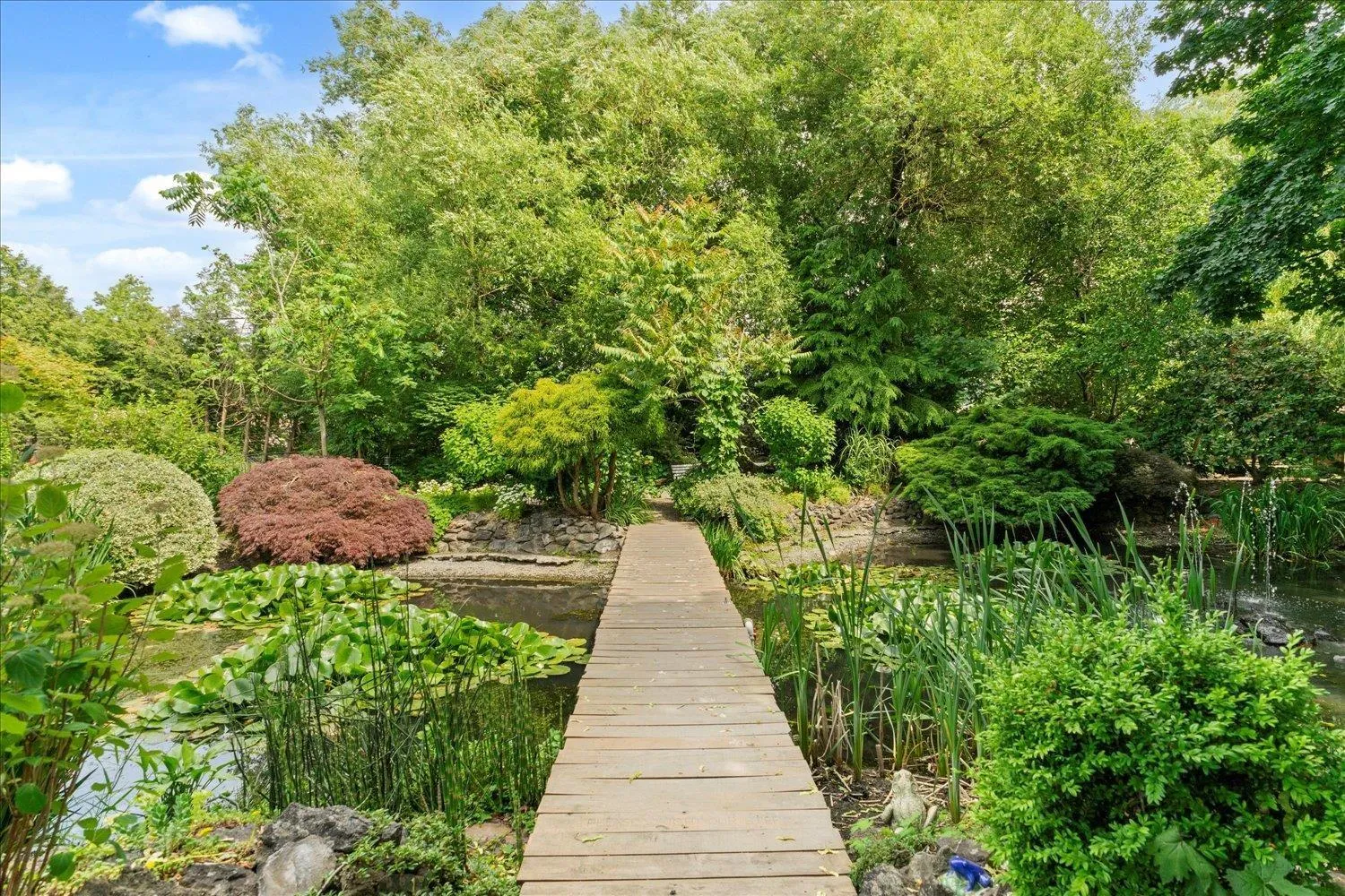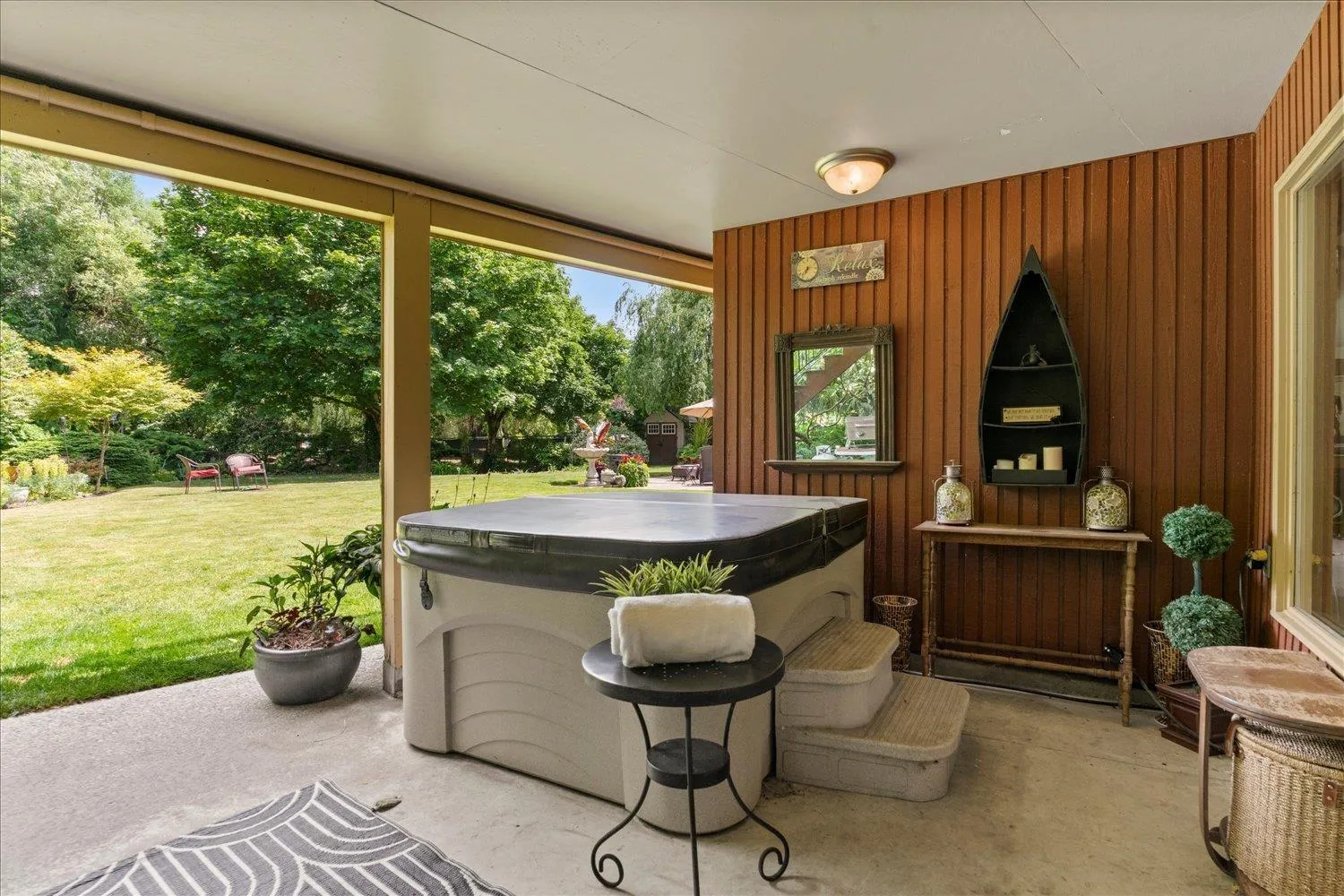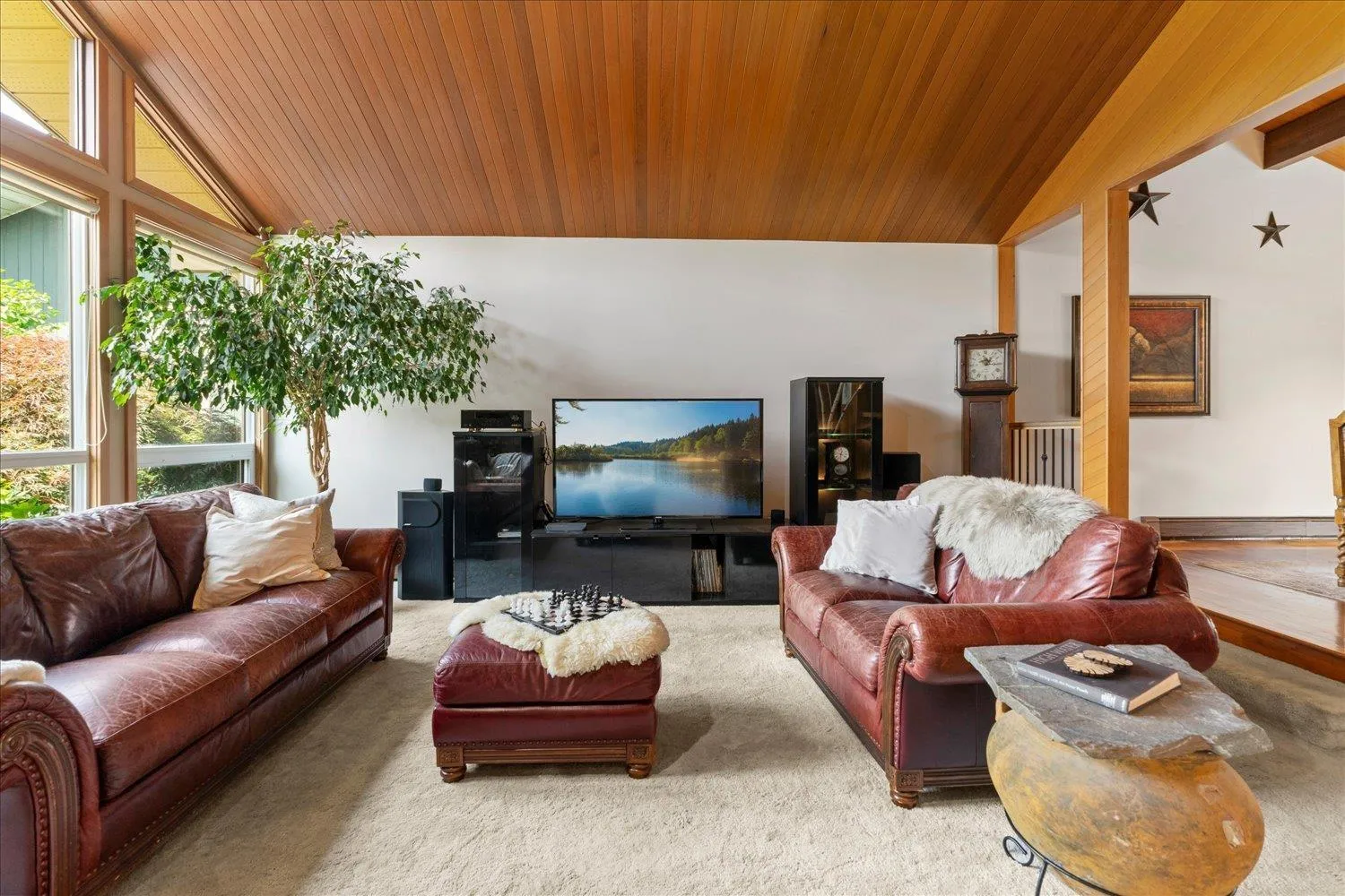 A rare gem! This custom mid-century modern home stands out with its distinctive character and high-quality finishes. From the moment you enter, you'll be greeted by a stunning rock wall water feature, vaulted cedar ceilings, and beautiful views of the meticulously landscaped garden. A truly unique property that blends timeless design with natural elegance. As you explore this spacious 4 level home, you'll discover rich teak hardwood floors, a custom kitchen, heated tile flooring, and a primary ensuite featuring a slate walk-in shower. Multiple decks and patios invite you to enjoy the serene gardens, complete with a picturesque creek and pond. Centrally located in a family friendly cul-de-sac, with easy access to shopping, schools, parks, trails, golf and the highway. (id:27476)
